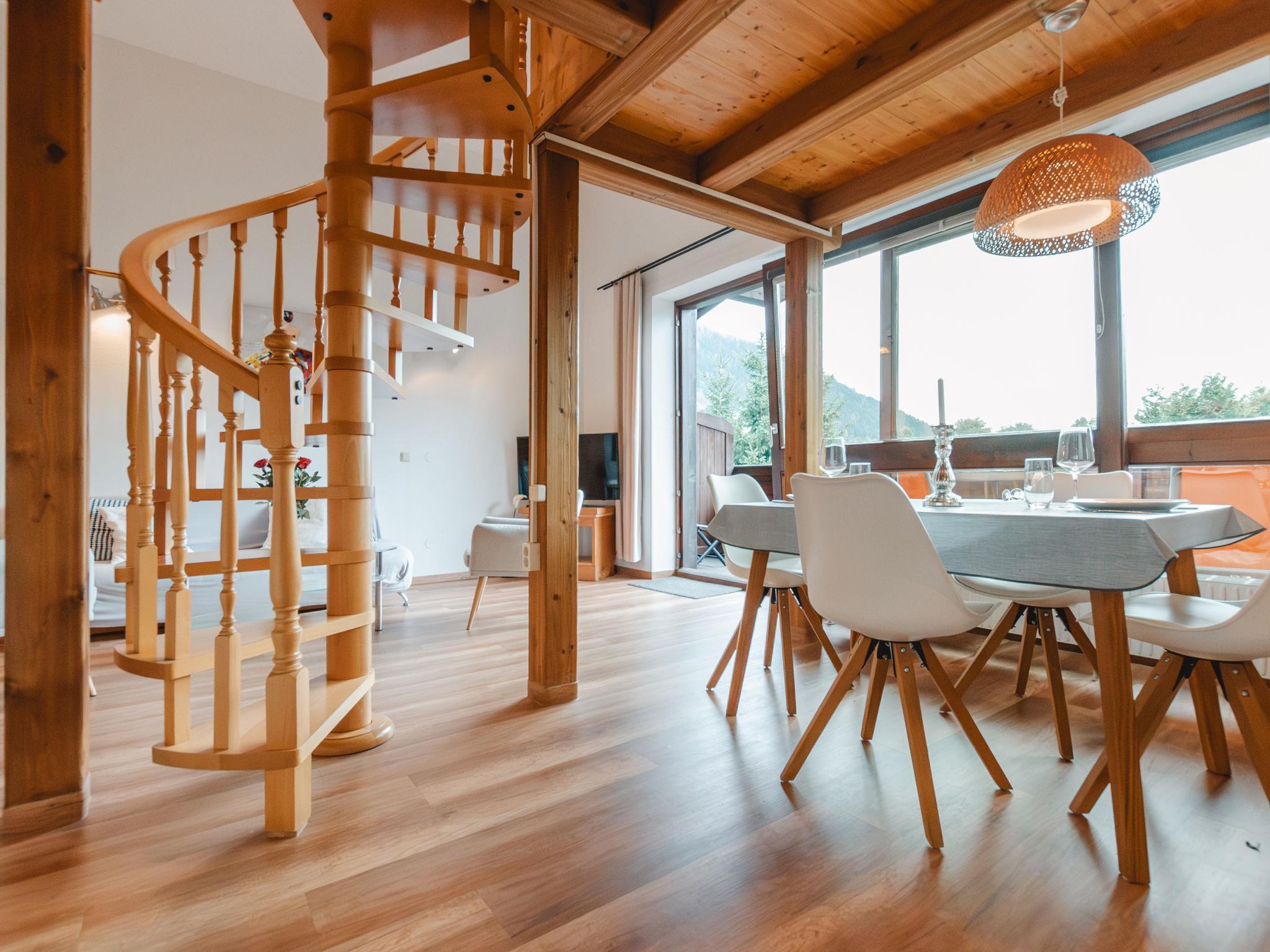 "Anna-Katharina", 1-room apartment 53 m2 on 2nd floor. Object suitable for 2 adults + 2 children. Spacious and bright, very modern and cosy furnishings: entrance hall. Open gallery 17 m2 with 1 double bed. Living/dining room 36 m2 with panoramic window with 1 double sofabed, dining table and cable TV (flat screen). Exit to the balcony. Open kitchen (oven, dishwasher, 4 ceramic glass hob hotplates, toaster, kettle, microwave, electric coffee machine). Shower, sep. WC. Wooden floors. Balcony 10 m2. Balcony furniture. Very beautiful panoramic view of the mountains. Facilities: hair dryer. Internet (WiFi, free). Parking space n 7. Please note: suitable for families. Non-smokers only. Smoke alarm, no lift. The electric coffee machine is a Cafissimo. Instead of an enclosed bedroom, some sleeping areas are located in an open-plan area (gallery, alcove, etc.). 50402-000674-2020