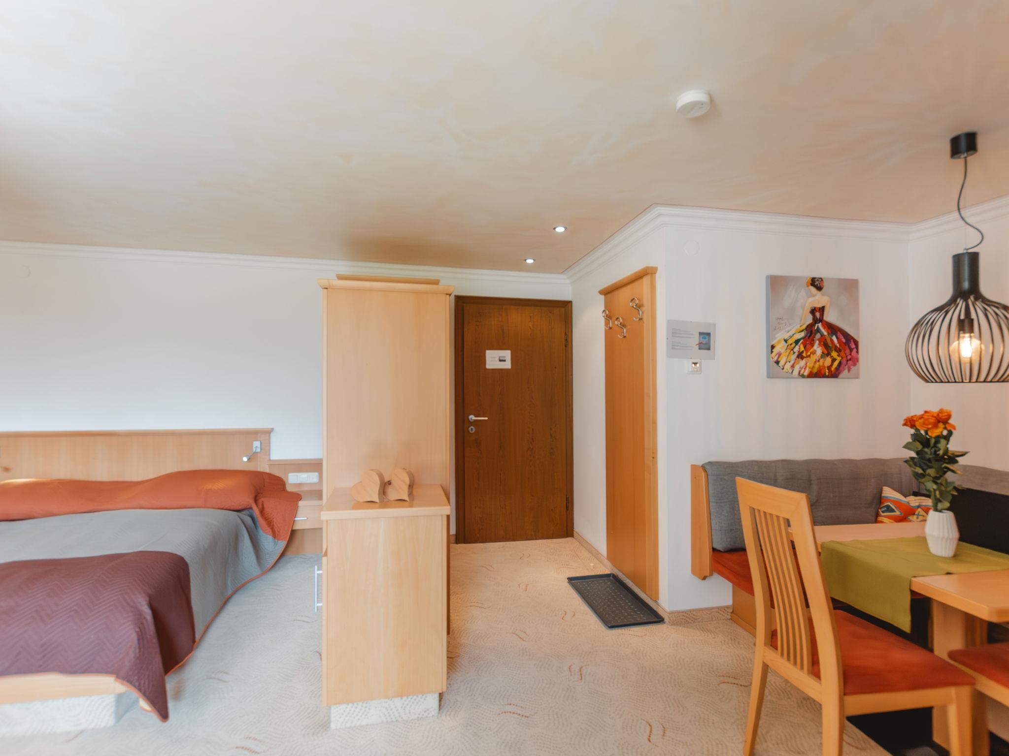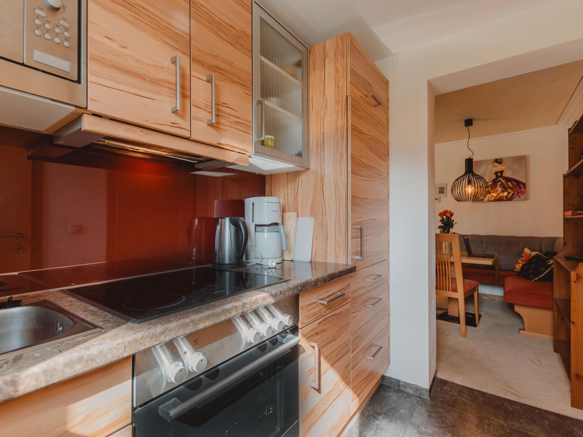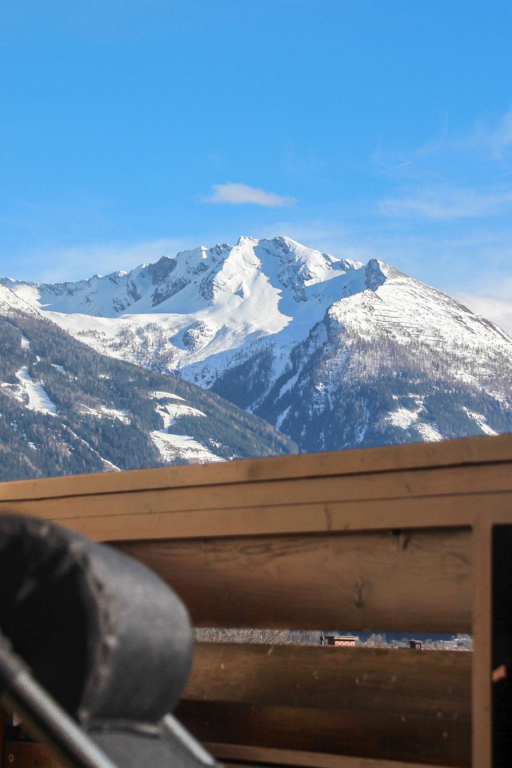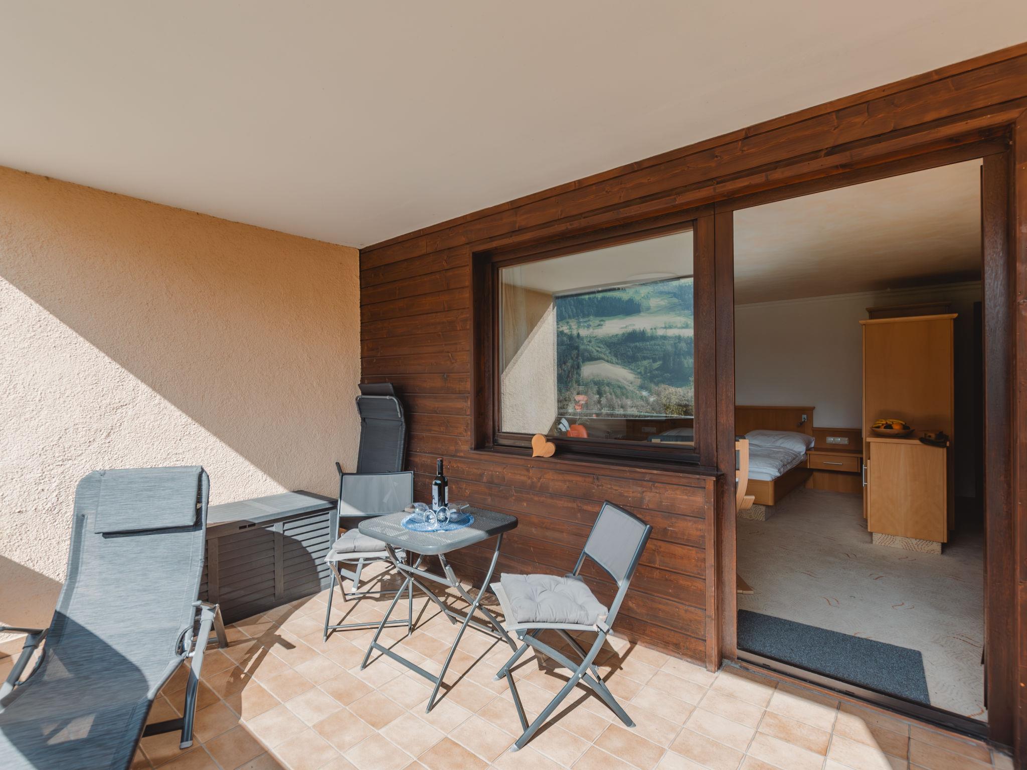 "Rose", 1-room apartment 35 m2 on 3rd floor. Bright, very comfortable and modern furnishings: living/sleeping room with 1 sofabed, 1 double bed, dining nook and cable TV (flat screen). Exit to the balcony. Open kitchen (oven, 4 ceramic glass hob hotplates, toaster, kettle, microwave, electric coffee machine, Capsules for coffee machine (Tschibo)). Shower, sep. WC. Electric heating. Carpet. Balcony 11 m2. Balcony furniture, deck chairs (2). Marvellous panoramic view of the mountains and the garden. Facilities: hair dryer. Internet (WiFi, free). Garage space n 300. Please note: suitable for families. Non-smokers only. Smoke alarm, fire extinguisher. 2 children up to 15 years possible on request. 50402-000675-2020
