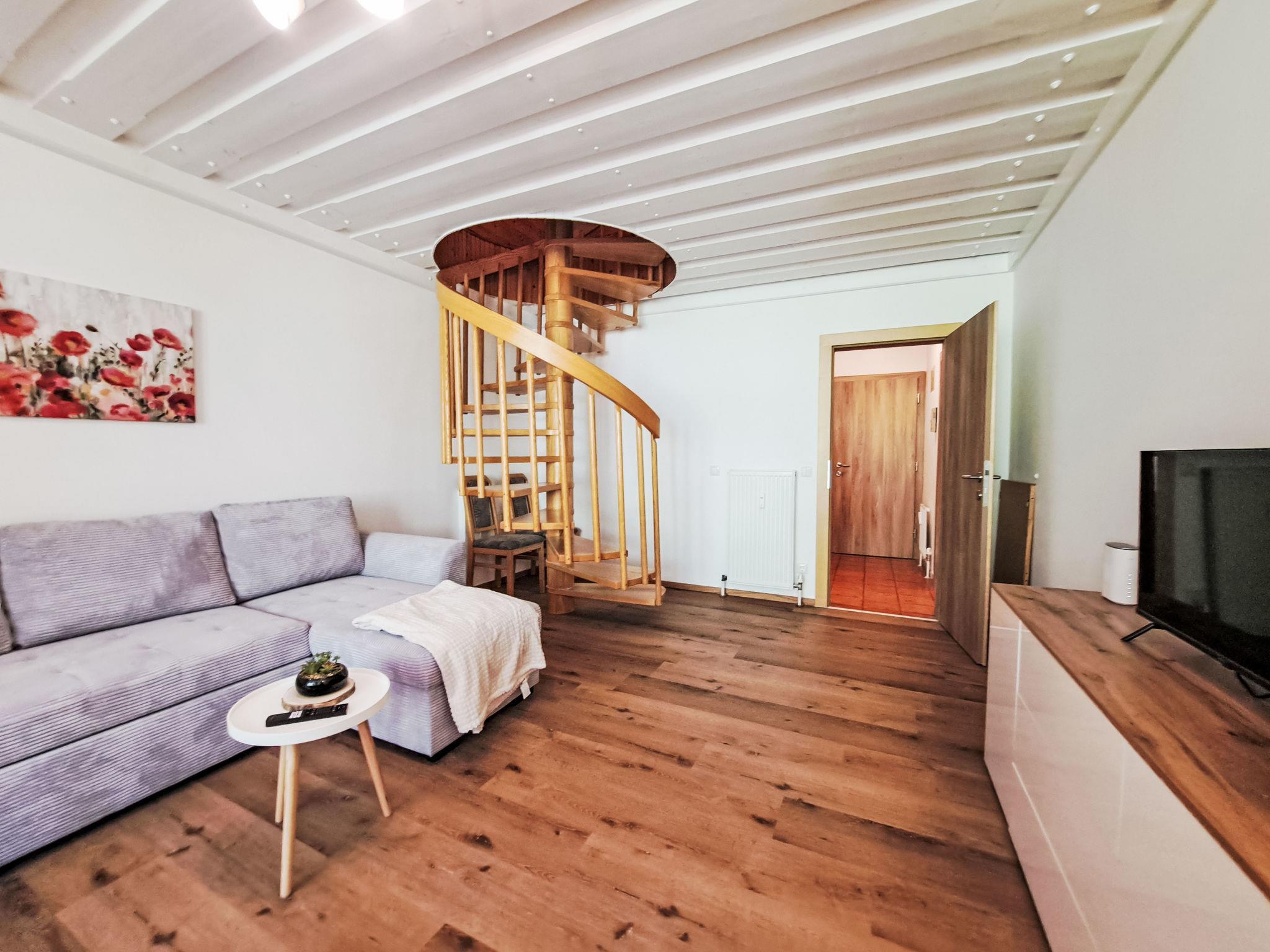"Morgensonne", 4-room maisonette 64 m2. Spacious and bright, renovated in 2025, comfortable and tasteful furnishings: entrance hall. Living/dining room with 1 sofabed. Exit to the balcony. Small kitchen (oven, dishwasher, 4 ceramic glass hob hotplates, toaster, kettle, electric coffee machine). Bath/WC. Upper floor: (spiral staircase), 3 double bedrooms with rooflight. Shower/WC. Parquet floors. Very beautiful panoramic view of the mountains. Facilities: hair dryer. Please note: suitable for families. Non-smokers only. 50402-000850-2025