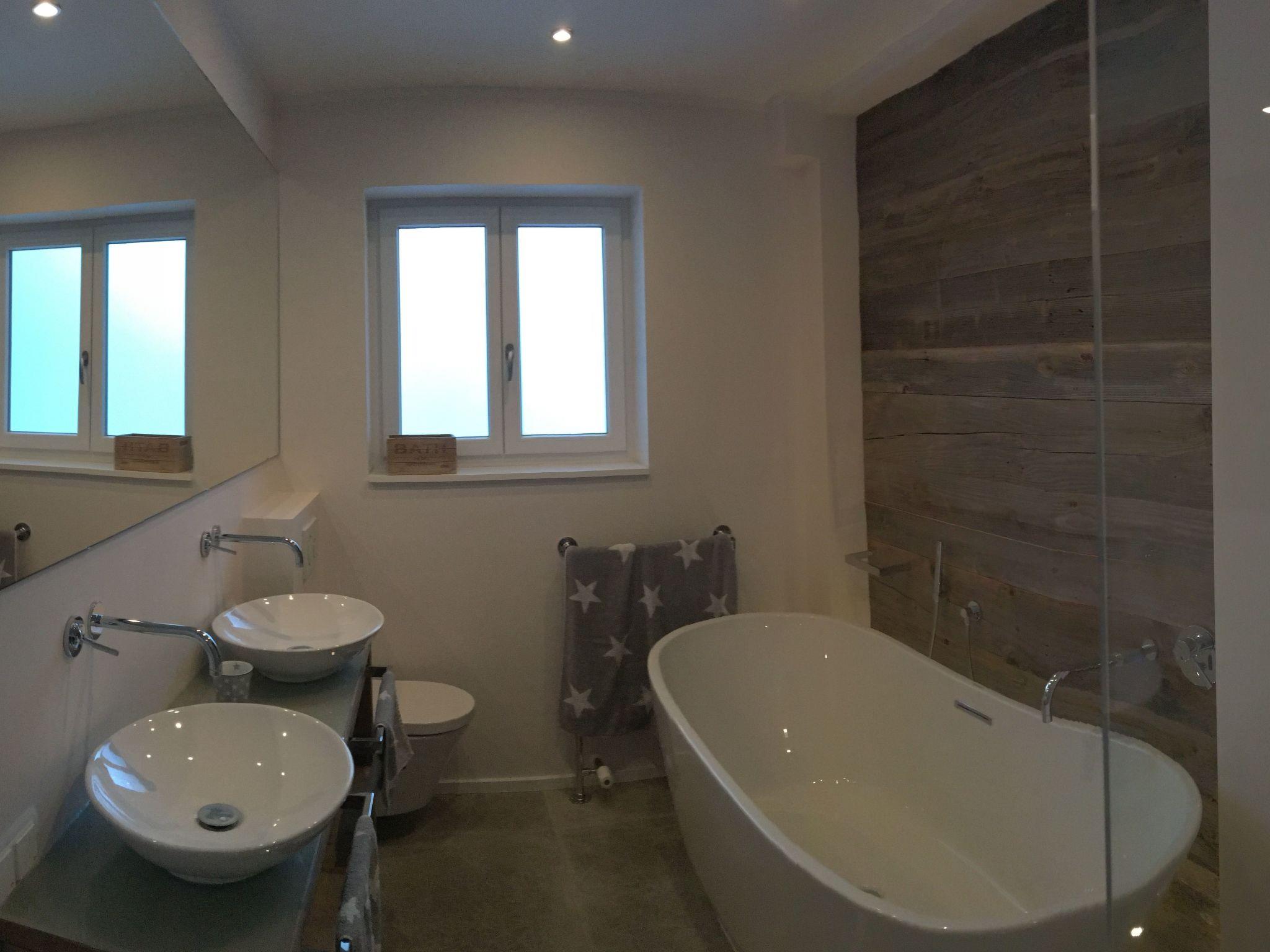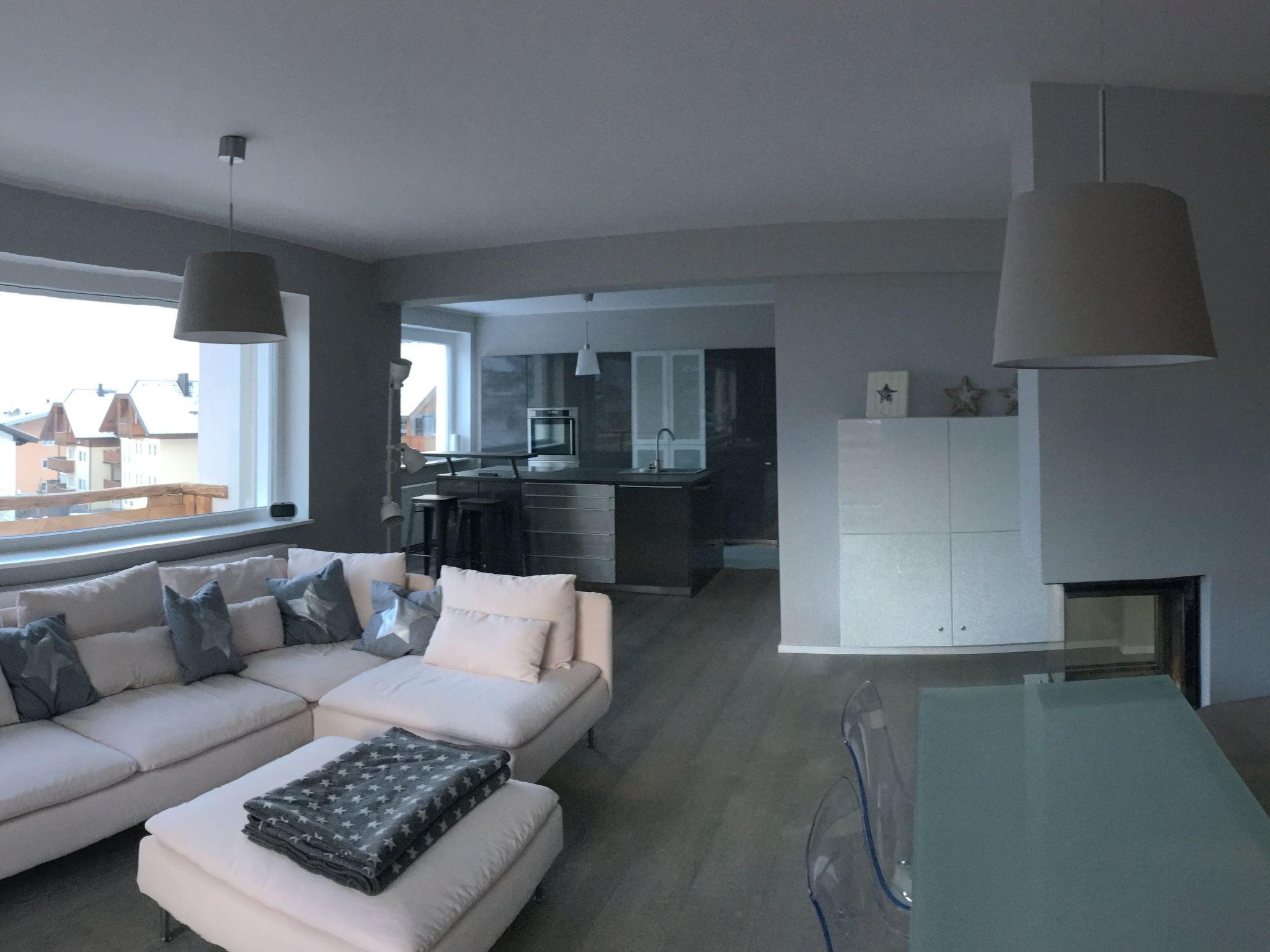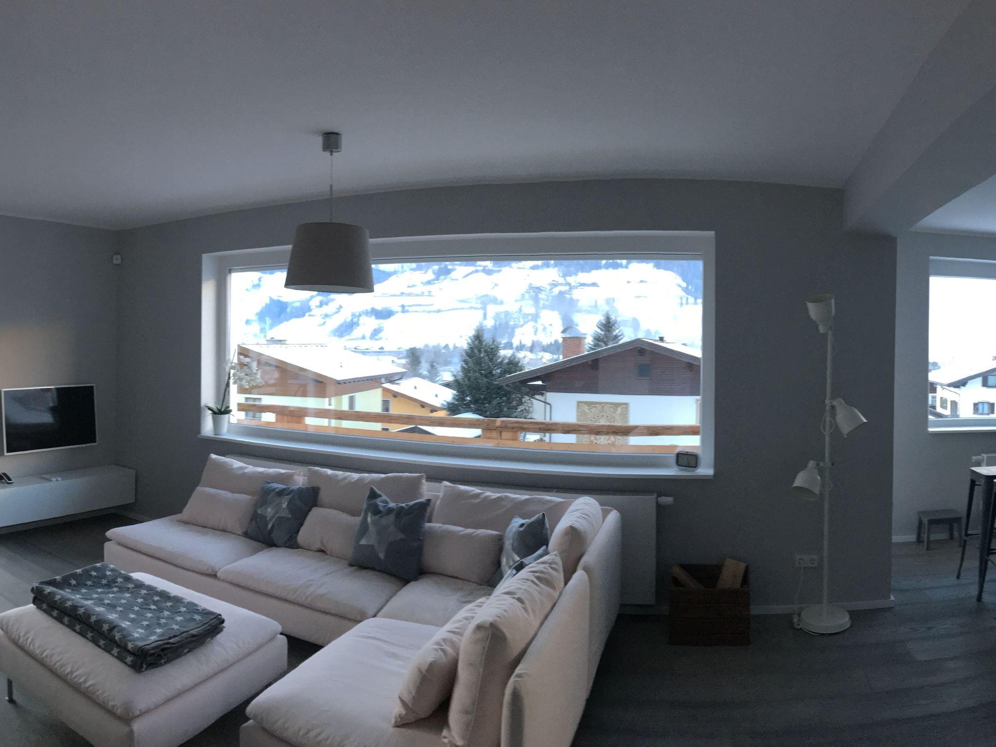 Inside you will find a modern flat of 120 m², situated on the upper and top floor in a quiet hillside location. The luxurious interior, which is characterised by wood and stone, includes a spacious living area with an open-plan kitchen and fireplace corner, from where you can marvel at the fantastic Alpine panorama. Two cosy bedrooms on the upper floor and another on the top floor offer high-quality sleeping comfort. The modern bathroom with free-standing bathtub and large rainfall shower as well as a separate WC round off the feel-good ambience. A fully equipped kitchen, HD flat-screen TV, high-speed WLAN and other comforts ensure an unrivalled living experience.