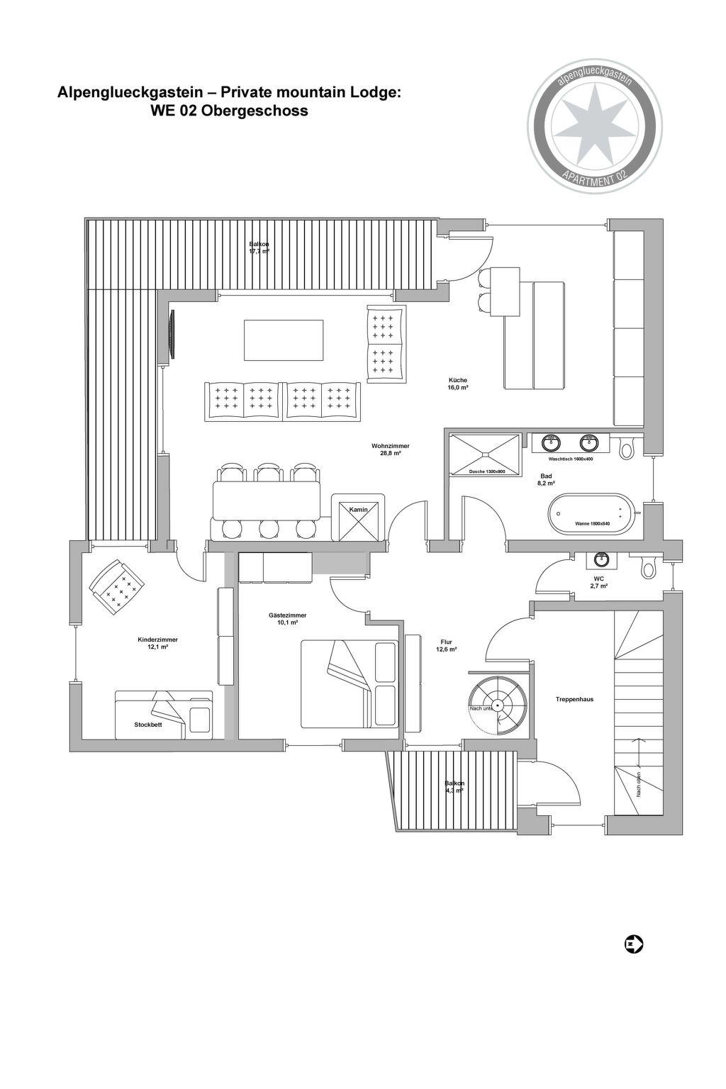 Outside, a south-west-facing balcony directly accessible from the living room and a smaller east-facing balcony for morning sun are available for you to fully enjoy the Alpine panorama. The 25 m² sun terrace in the garden with lounge area offers additional space for outdoor relaxation. The communal ski depot in the basement offers space for your ski equipment and has a ski boot dryer as well as drying facilities for ski and hiking clothing.