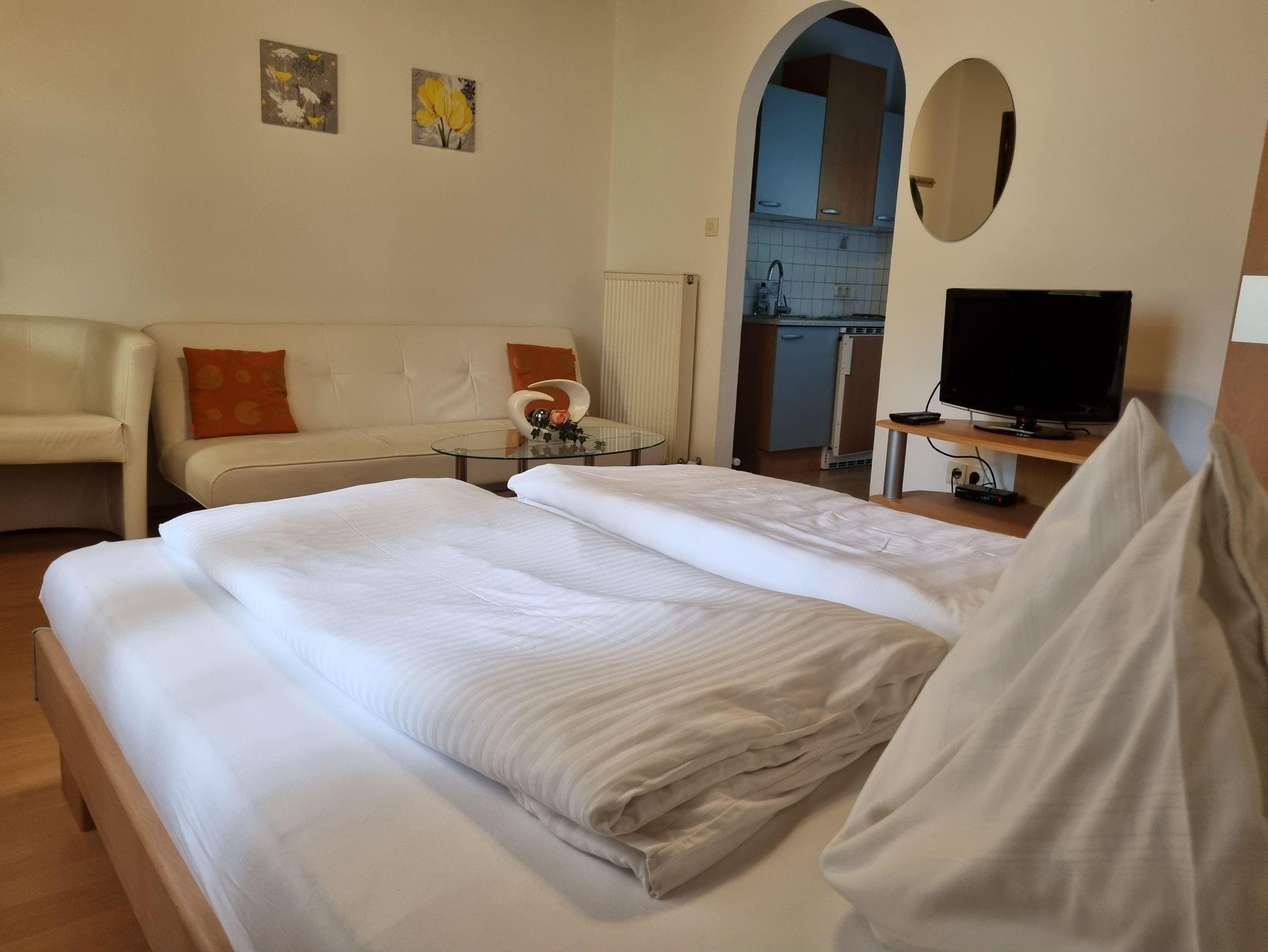 Die Appartements sind mit einem Doppelbett, teilweise einer Couch sowie einer Küche / Kochnische (E-Herd, Kühlschrank, Mikrowelle, Filter-Kaffeemaschine, Toaster, Wasserkocher, Besteck und Geschirr) und einem Badezimmer ausgestattet.