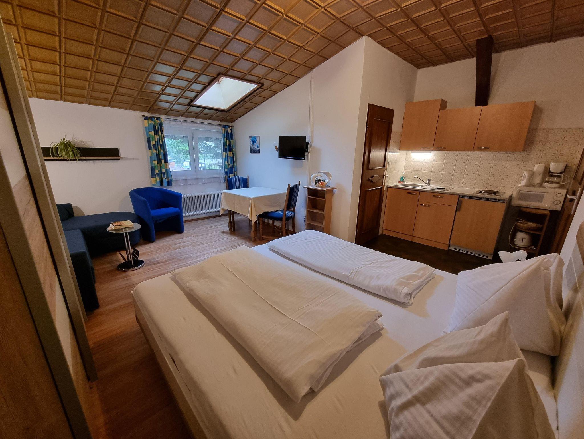 Unsere gemütlichen Studios bieten Platz für bis zu 2 Personen und haben ein Gösse von ca. 30 m2. Sie verfügen über einen Balkon im Obergeschoss oder einen Vorgarten im Erdgeschoss, die sehr dazu einladen die letzten Sonnenstrahlen des Tages zu genießen. Im Erdgeschoss haben Sie zusätzlich einen direkten Zugang zu unserem hauseigenen Garten den alle Gäste nützen können.