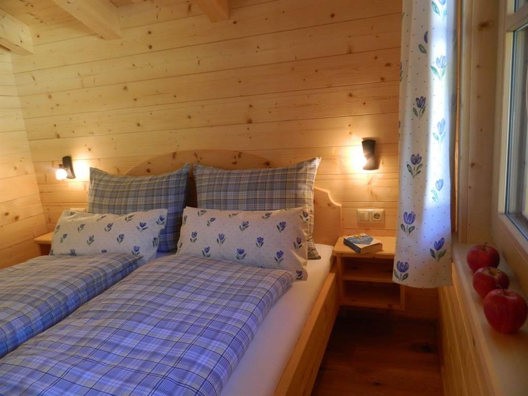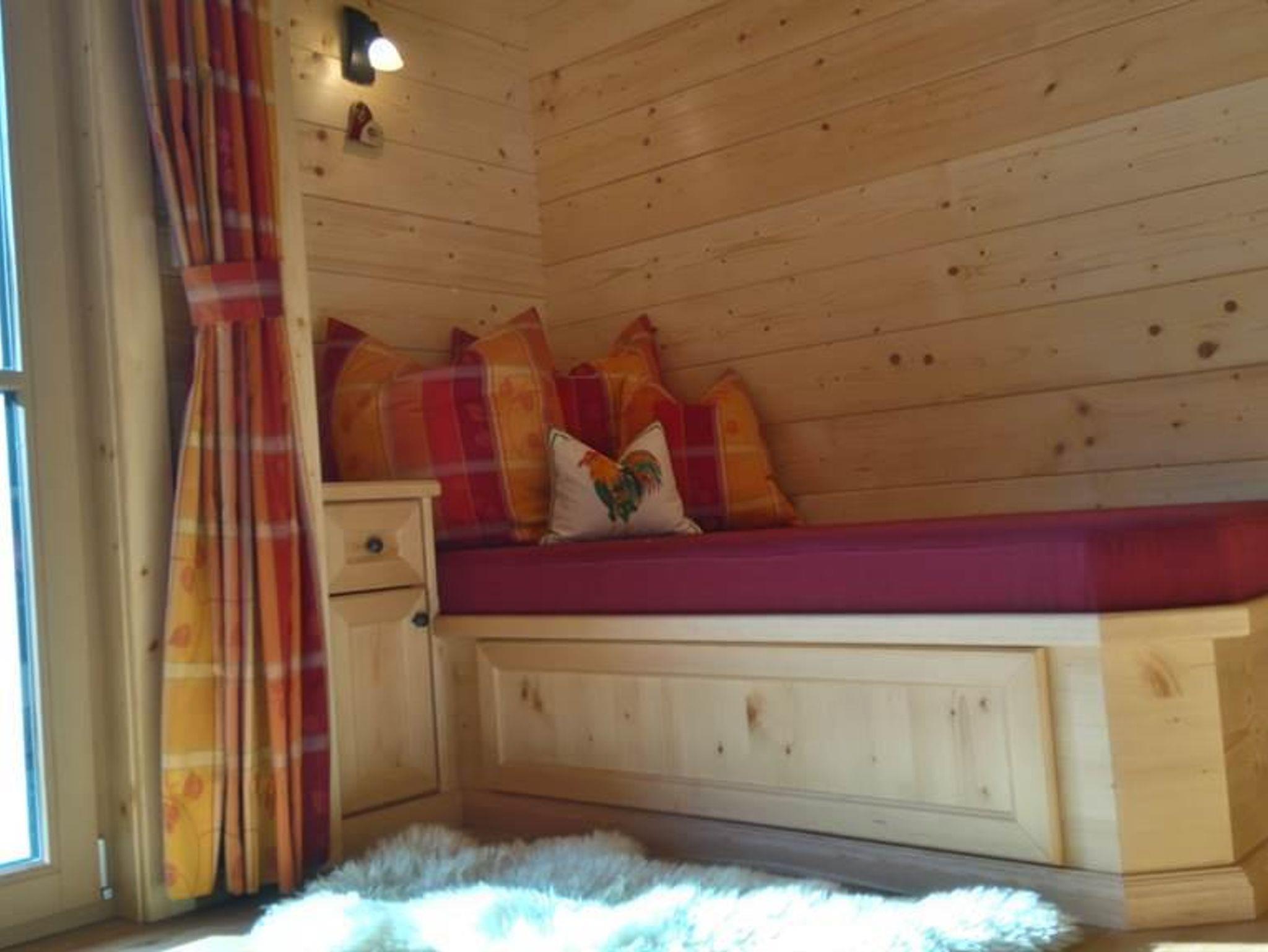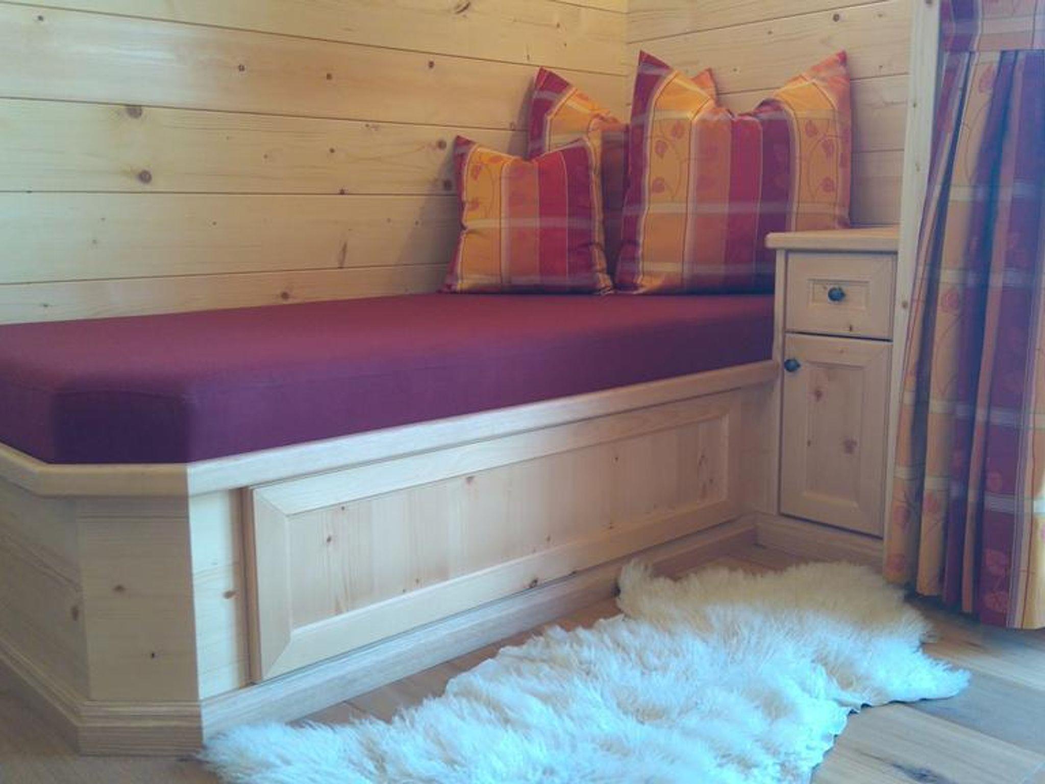 Sie schlafen herrlich im getrennten Schlafzimmer mit Betten aus ZIRBENHOLZ.