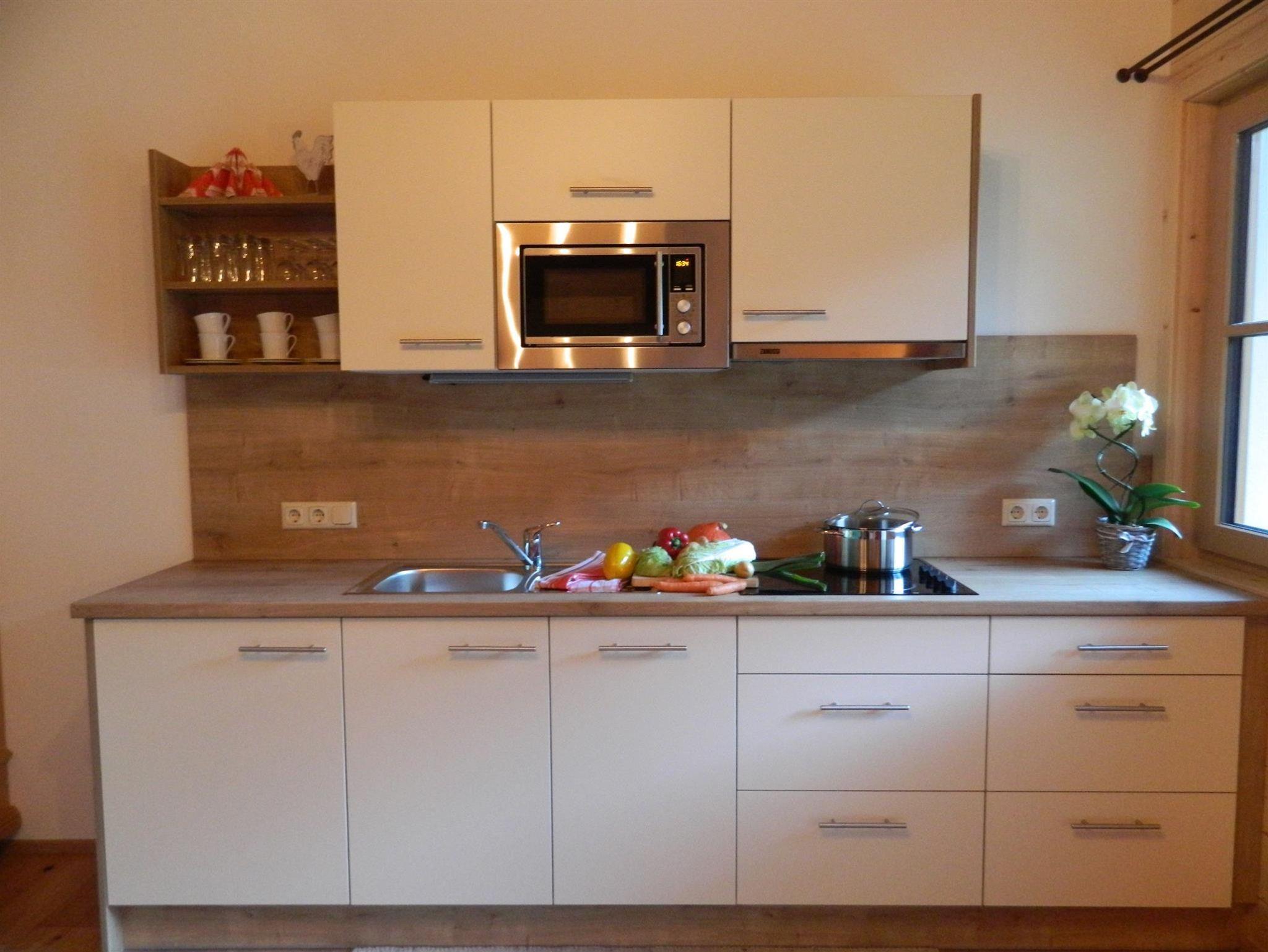 Bestehend aus einem hellen Wohnraum mit Essecke, Küchenzeile und einem Sofa (als 3. Bett).
