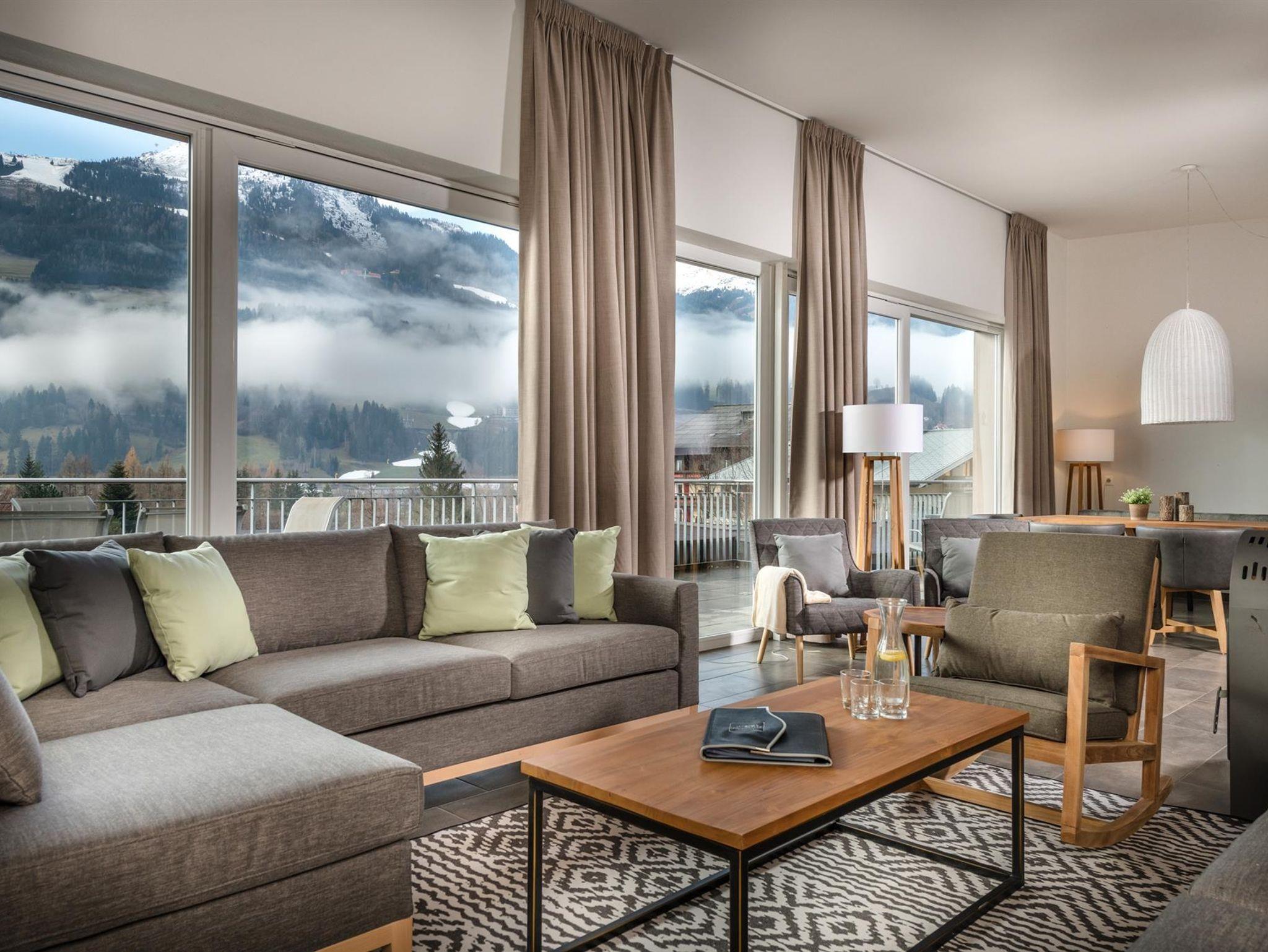 ALPINE ROYAL – mit Freunden, mit der Familie oder ganz Privat, exklusiv und einzigartig. - Wohlfühlen & Wohnen auf **** Superior-Niveau - Mindestbelegung 10 Personen - + 2 Zusatzbetten möglich (komfortable ausziehbare Schlafcouch im Wohnbereich) - Penthouse mit ca. 160 m² Wohnraum und einer 100 m² Dachterasse - 5 Schlafzimmer ( Doppelbett, Kleiderschrank) - Vorraum mit Garderobe und Abstellraum - Offener Wohn- Küche- Essbereich - LCD Fernseher - Hochwertige großzügige Einbauküche (im Wohnraum integriert) - 4 Bäder (Badewanne und Dusche) - Skiraum/Radraum außerhalb des Appartements - 1 Garagenplatz inklusive - AlpenParks Lifestyle Ausstattung
