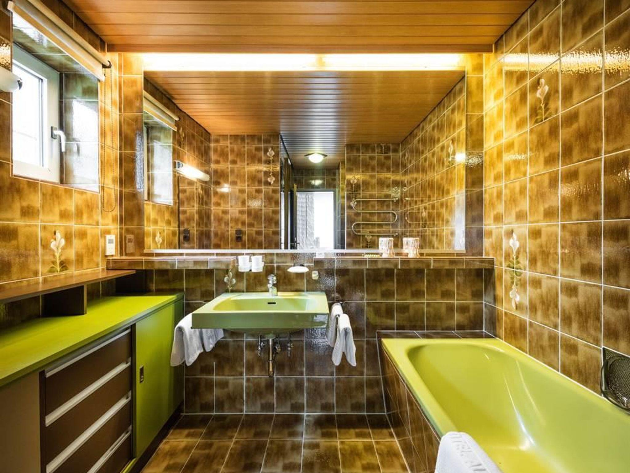 Badezimmer waren, sehr klein und Wasserhahn etwas Schmutzig (grün)