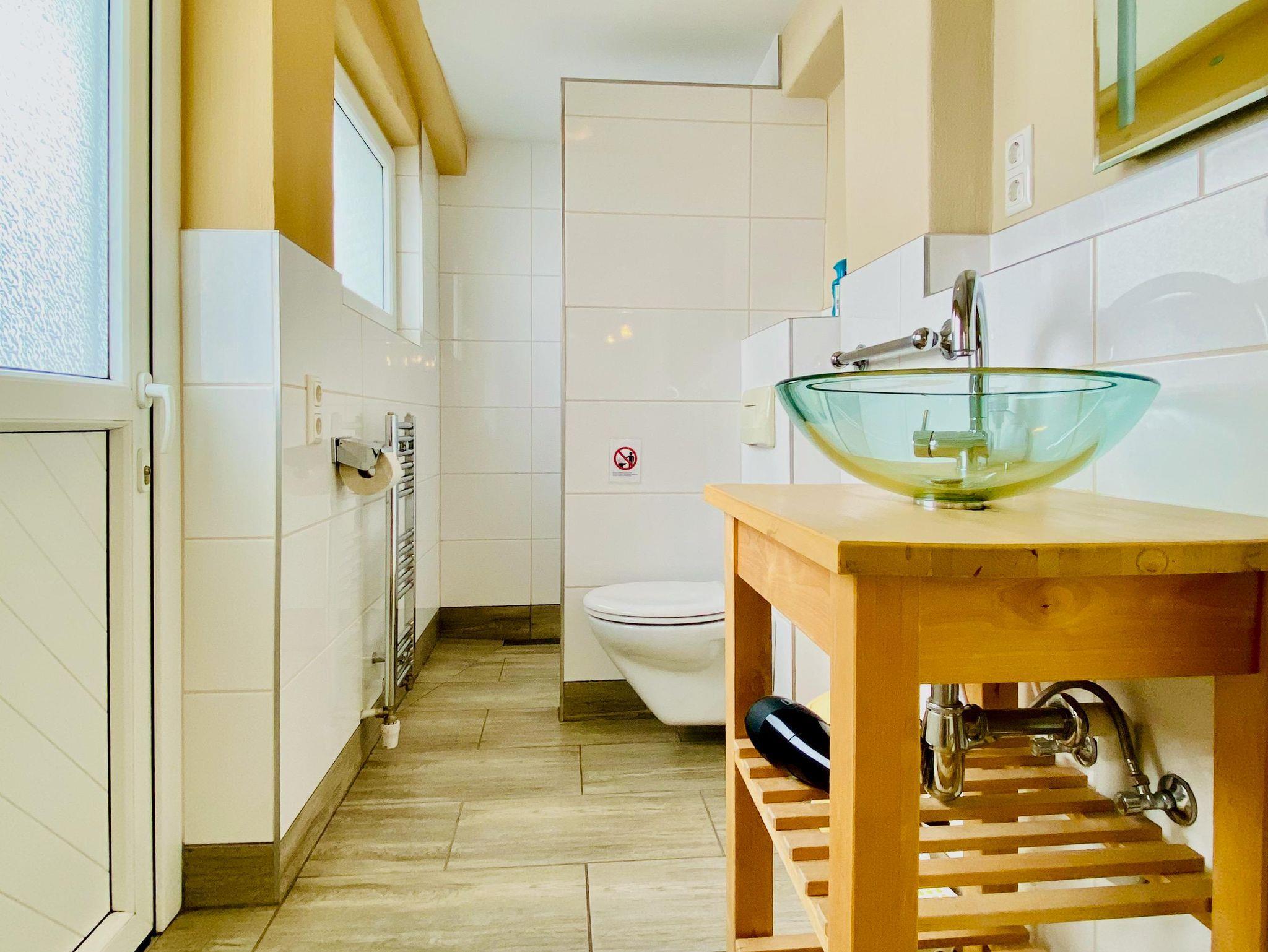 Das Bad mit Dusche und Toilette lässt keine Wünsche offen.