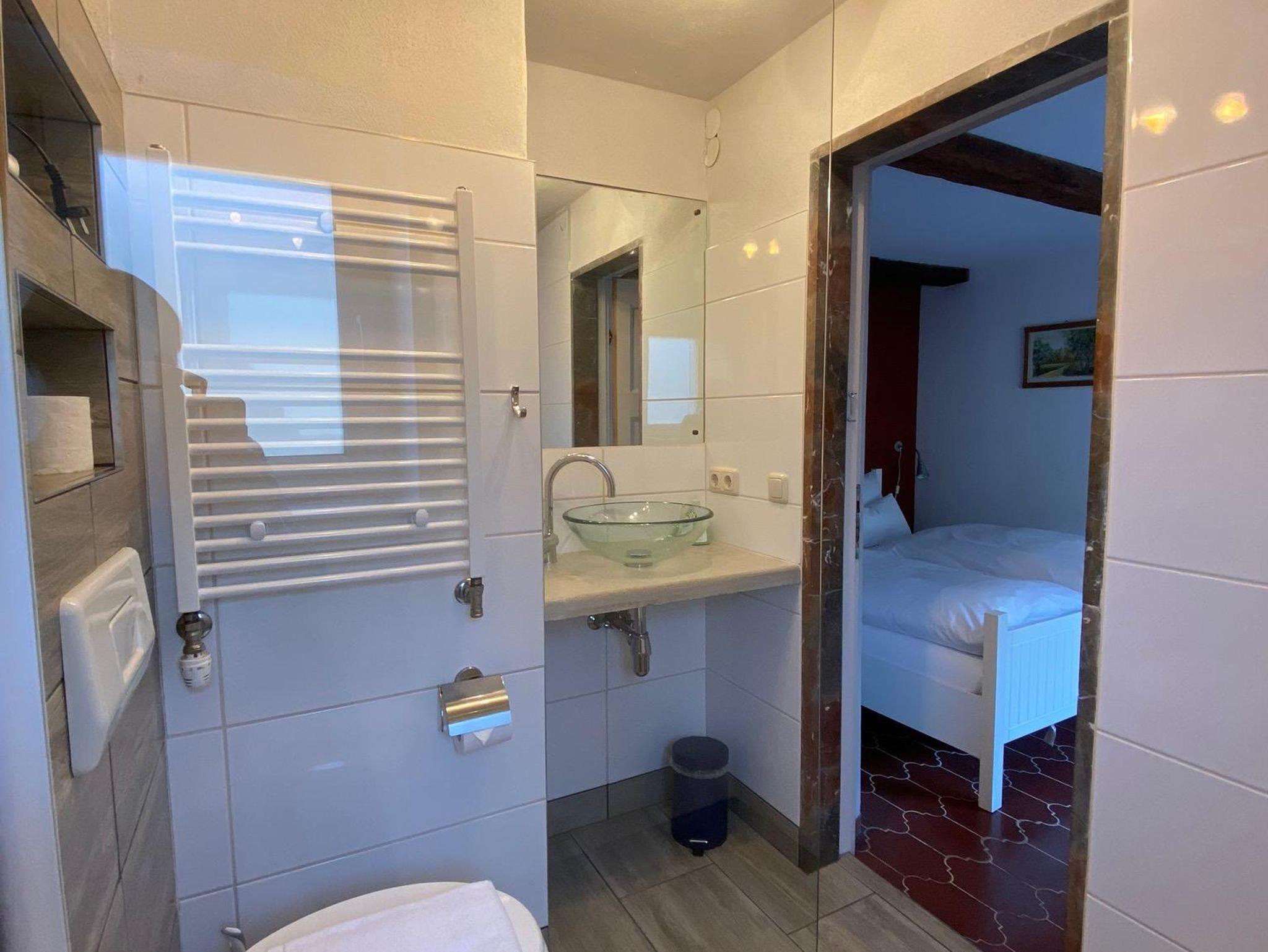 Das Bad mit Dusche und Toilette lässt keine Wünsche offen.