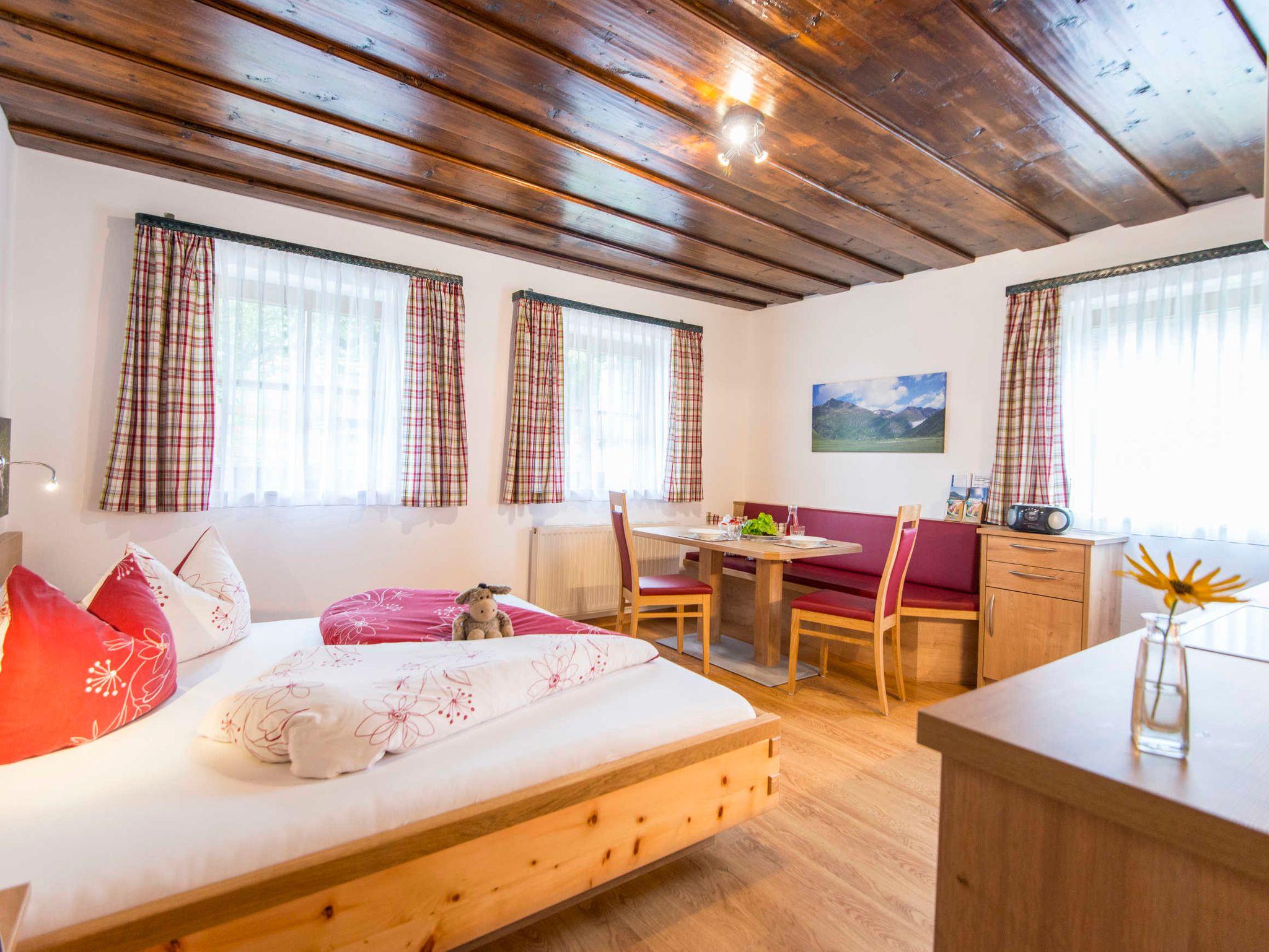 Diese Ferienwohnung für zwei Personen mit 27 m² verfügt über einen Wohn-Schlafraum mit Doppelbett, eine gemütliche Sitzecke und eine kleine Küchenzeile, einen Vorraum mit Garderobe und ein Badezimmer mit Dusche/WC. Die Küchenzeile ist mit Kühlschrank, Abwasch, E-Herd mit Backofen, Ceran-Kochfeldern, Dunstabzug, Wasserkocher, Stabmixer, etc. ausgestattet. Geschirr und Kochutensilien sind vorhanden sowie CD-Player mit Radio und USB-Anschluss. Bettwäsche, Hand- und Badetücher sind im Preis inkludiert. Gratis WLAN. Die Wohnung bietet Platz für ein Gitterbett. Frühstückskorb mit hofeigenen Produkten gegen Aufpreis möglich.