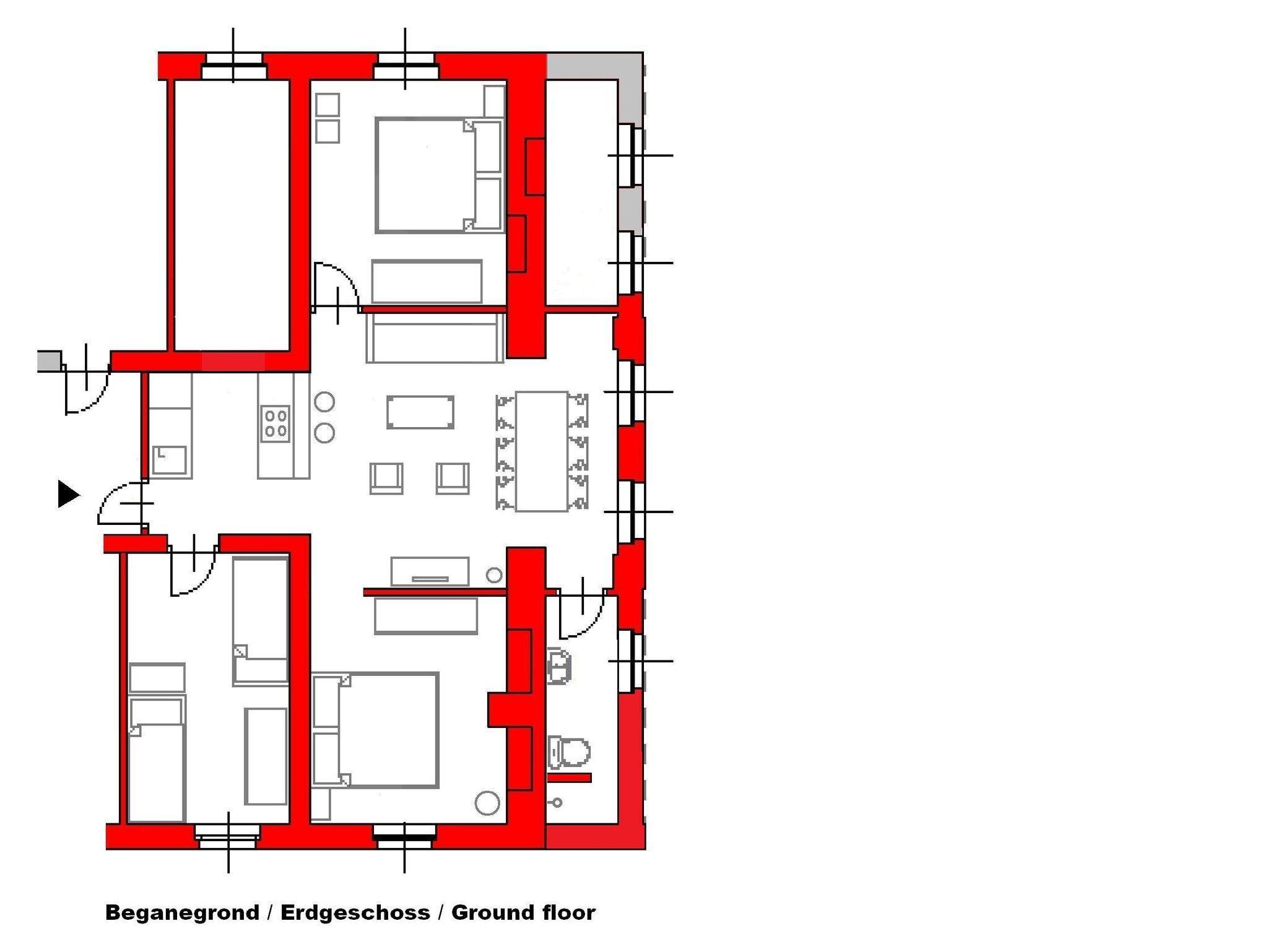Große Wohnung mit drei Schlafzimmern im Erdgeschoss.