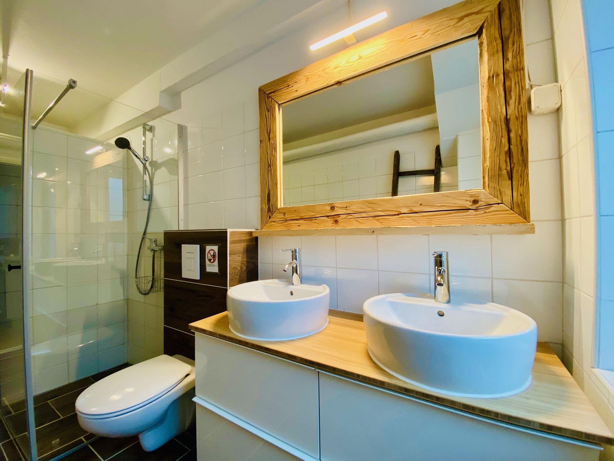 Das Bad mit Dusche und Toilette lässt keine Wünsche offen.