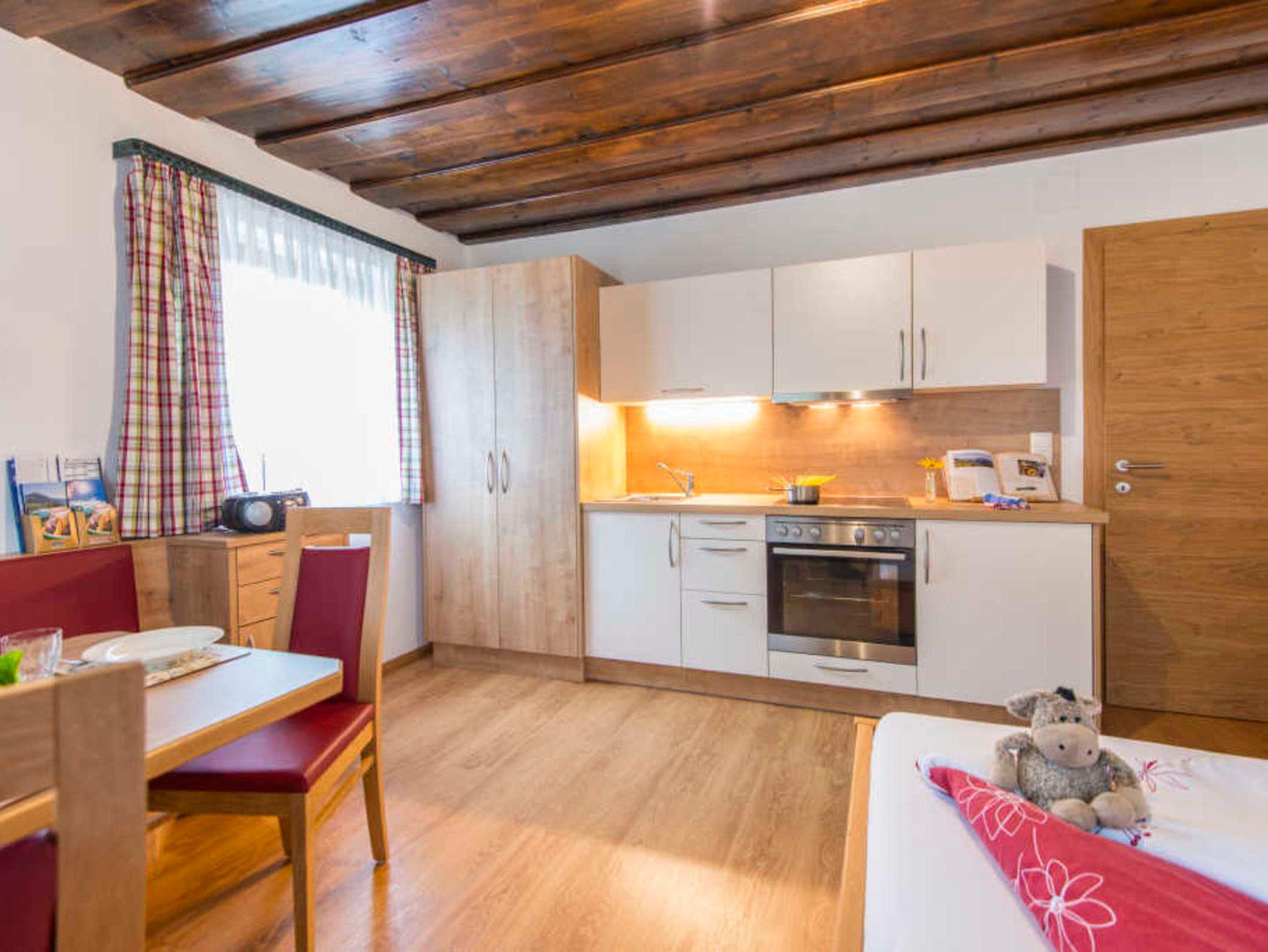 Diese Ferienwohnung für 4-6 Personen mit 55 m² verfügt über zwei Schlafzimmer mit Doppelbett, einen Vorraum mit Garderobe, einem Bad mit Dusche/WC sowie über eine gut ausgestattete Küche mit gemütlicher Sitzecke. Die Küche ist mit Geschirrspüler, Kühlschrank mit Gefrierschrank, E-Herd mit Backofen, Ceran-Kochfeldern und Dunstabzug, Kaffeemaschine, Wasserkocher, Mikrowelle, Stabmixer, etc. ausgestattet. Kochutensilien und Geschirr ist vorhanden, ebenso ein CD-Player mit Radio und USB-Anschluss. Bettwäsche, Hand- und Badetücher sind im Preis inkludiert. Gratis WLAN. Kleinkindausstattung auf Anfrage. Frühstückskorb mit hofeigenen Produkten ist gegen Aufpreis möglich.