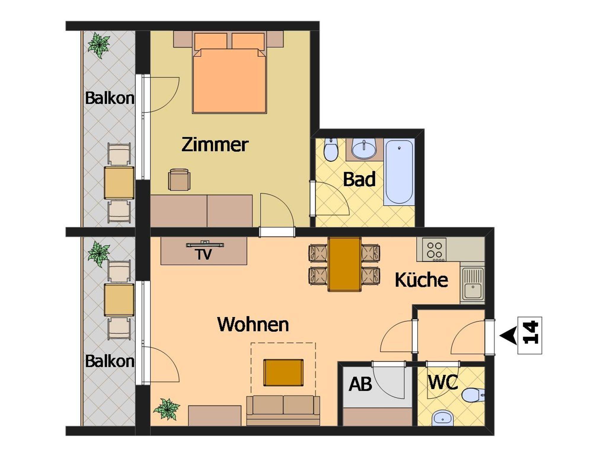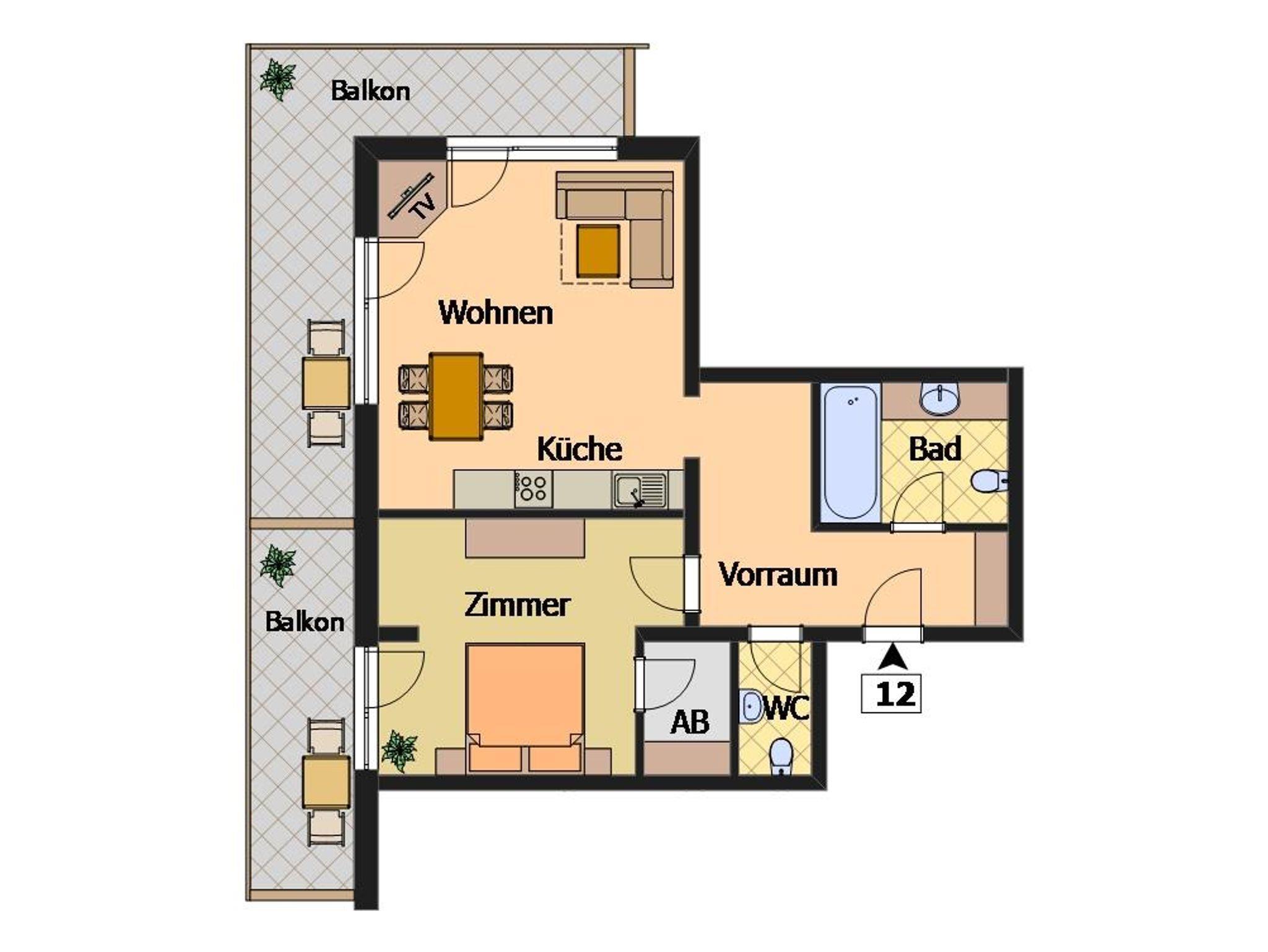 Schönes Apartment mit 50-60 Quadratmeter, separates Schlafzimmer, Wohnzimmer mit Schlafcouch, voll eingerichtete Küche, schönes Badezimmer, TV, Safe und W-Lan sowie Balkon,