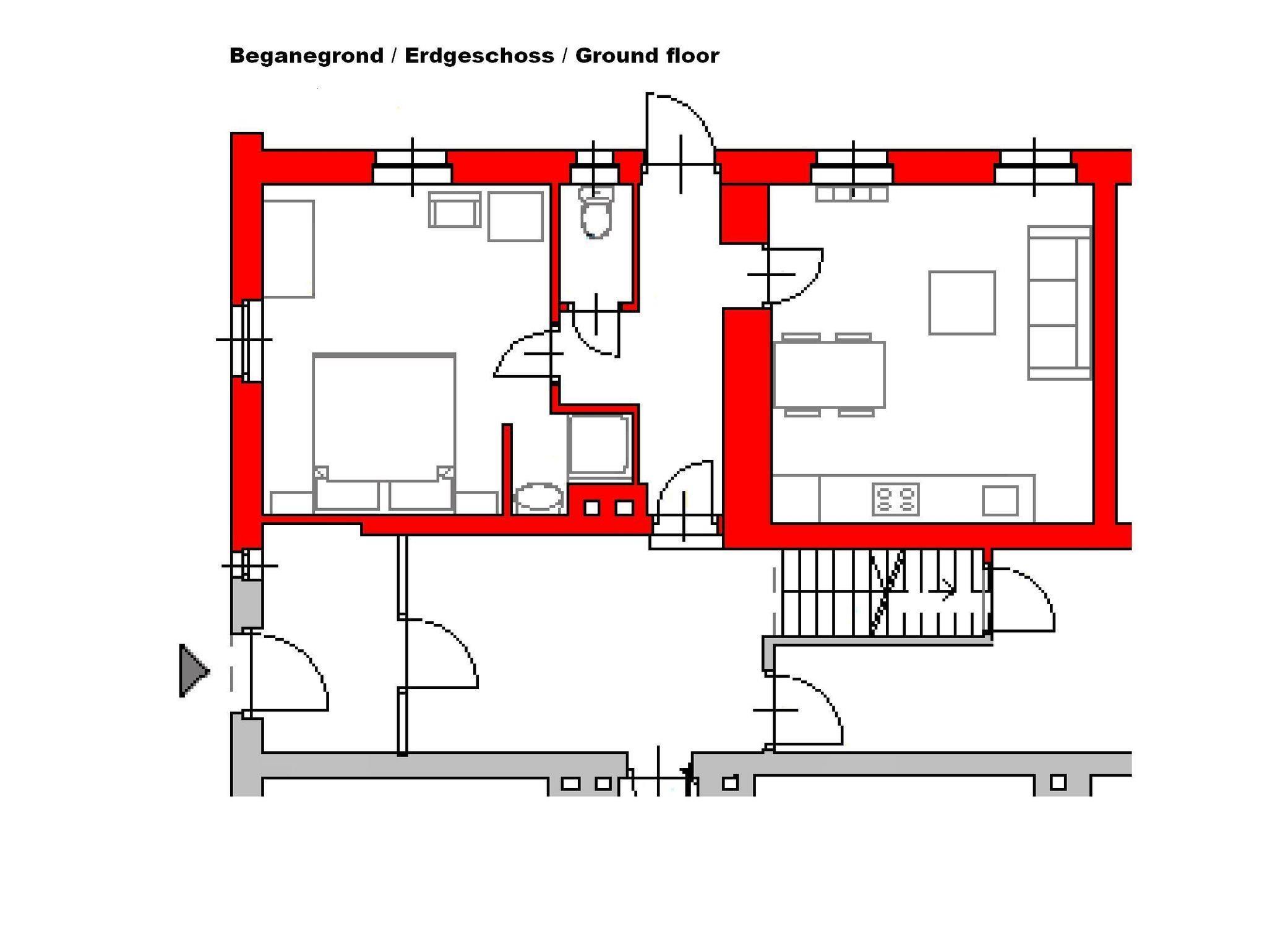 Eine Wohnung im Erdgeschoss mit zeitgemäßen eingerichteten Wohnküche.