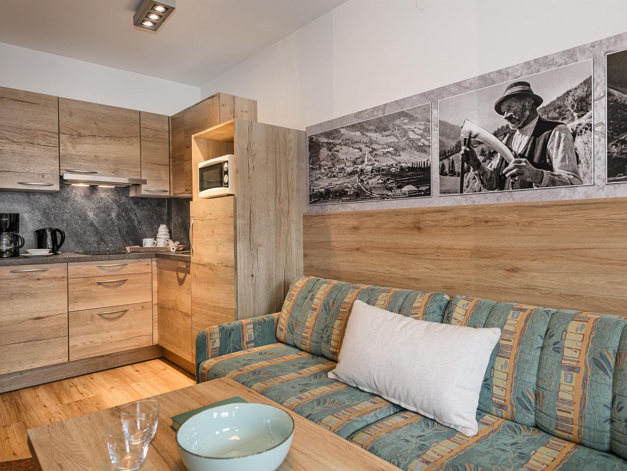Gemütliche Apartments in einem Alpenhotel mit Sauna und Spielbereich.