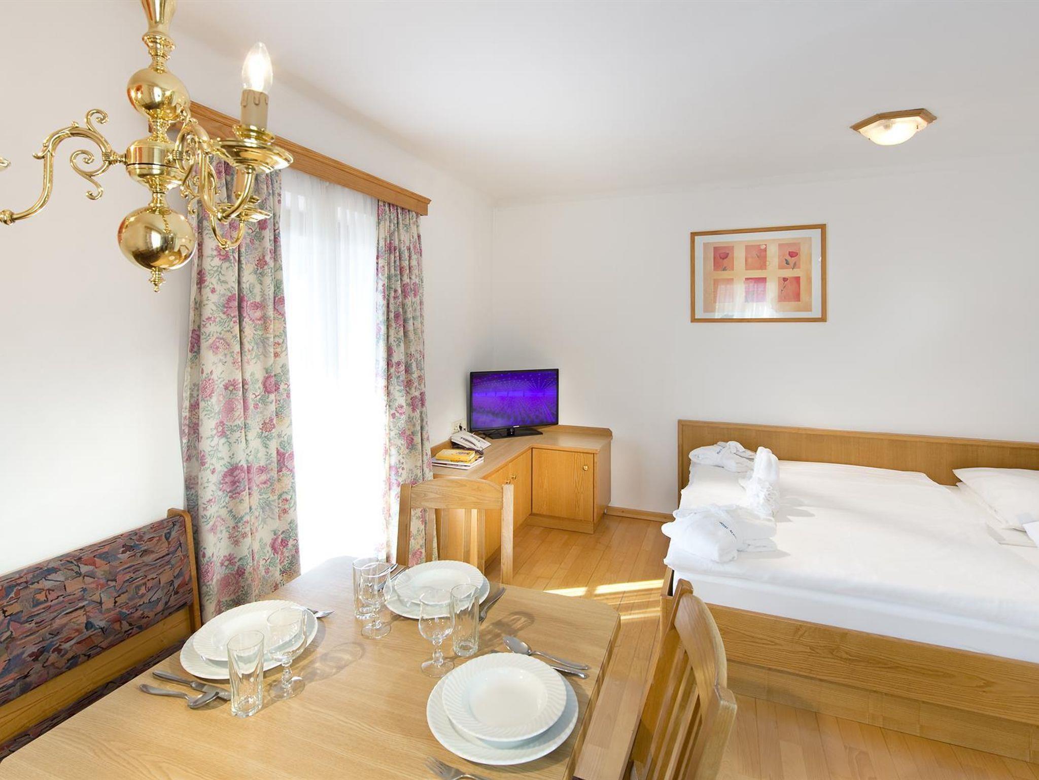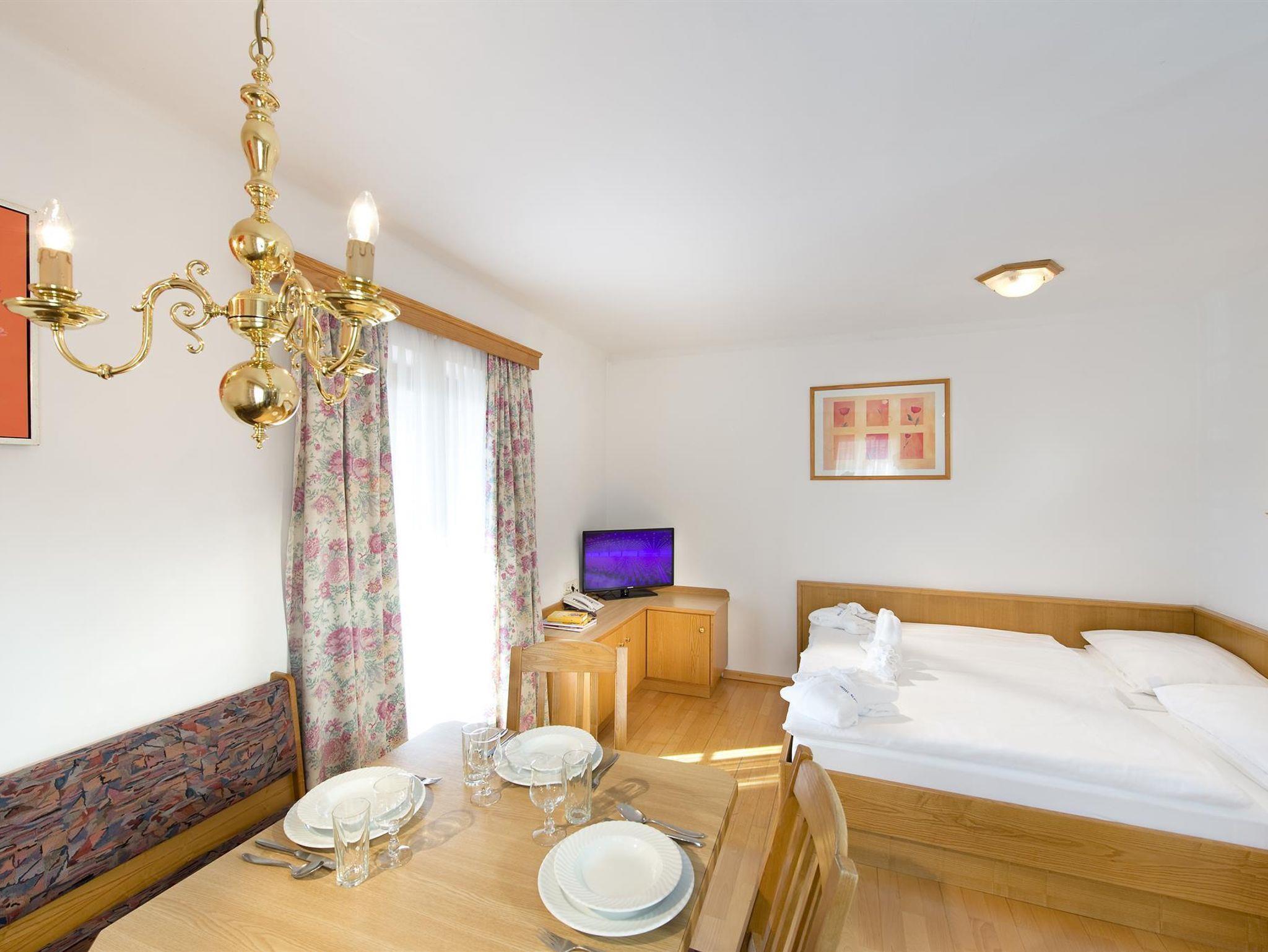 Um sich in Ihrem Urlaub rundum verwöhnen zu lassen, können Sie Ihr Frühstück und/oder Abendessen gerne im gegenüberliegenden Viersternehotel Alpina einnehmen. Auch der hauseigene Wellnessbereich kann während Ihres Aufenthaltes in Anspruch genommen werden.