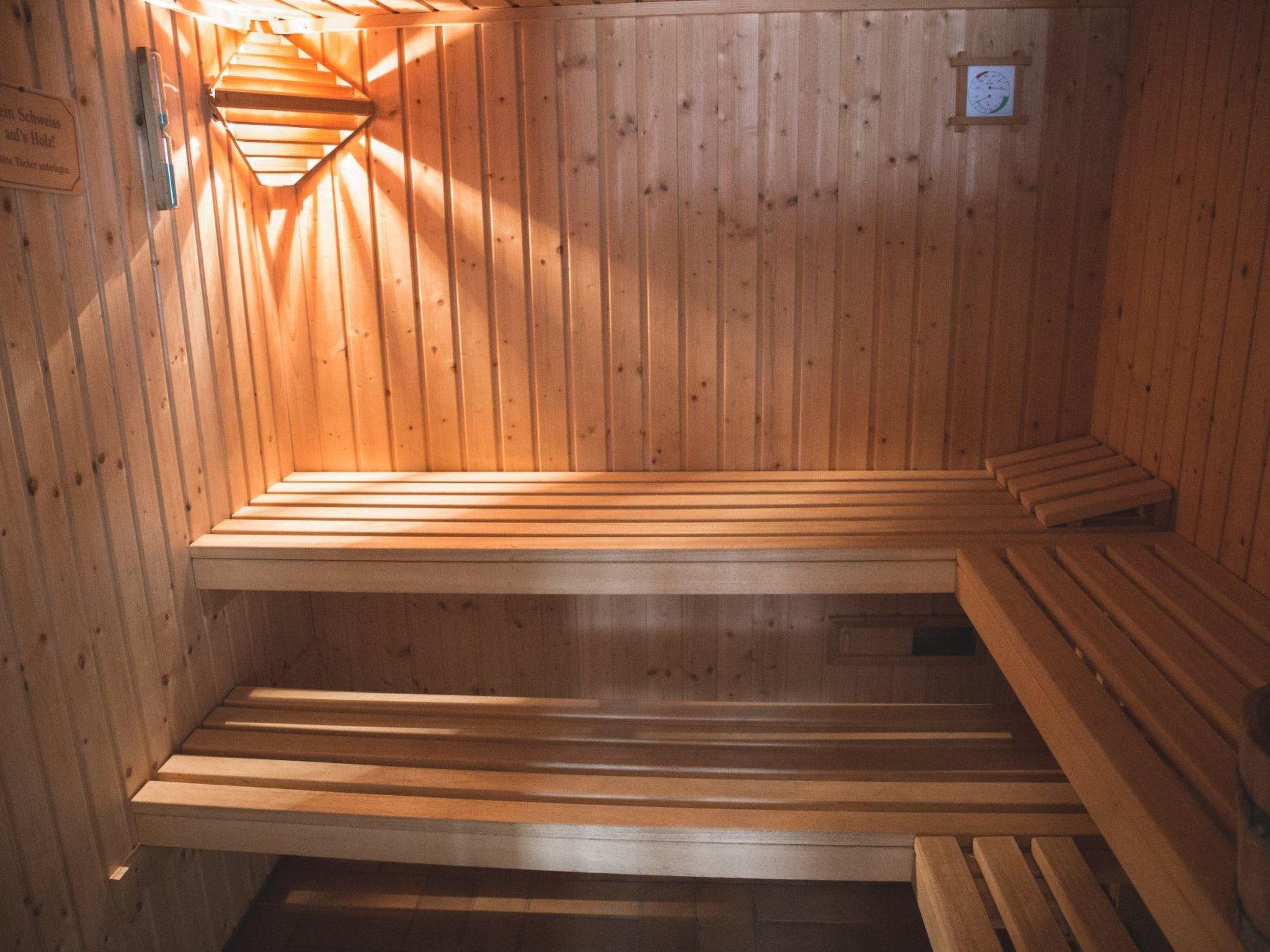 * a LIVING ROOM, which invites you to sit together in a cosy atmosphere (a large sitting area with wooden table, TV with satellite system and a self-built fireplace),* a TWO-BED ROOM (bunk bed) on the ground floor (providing a cot for the smallest guests is no problem),* a BATHROOM with shower and WC,* a further WC on the 1st floor,* a SAUNA for 6 people,* two DOUBLE ROOMS