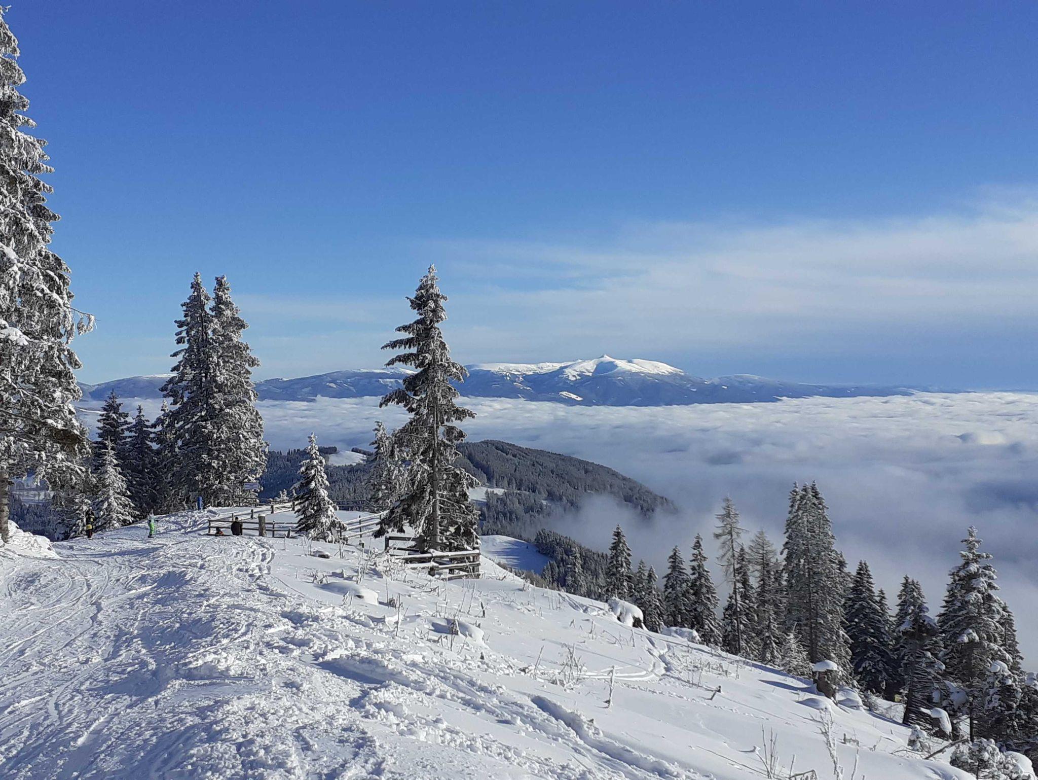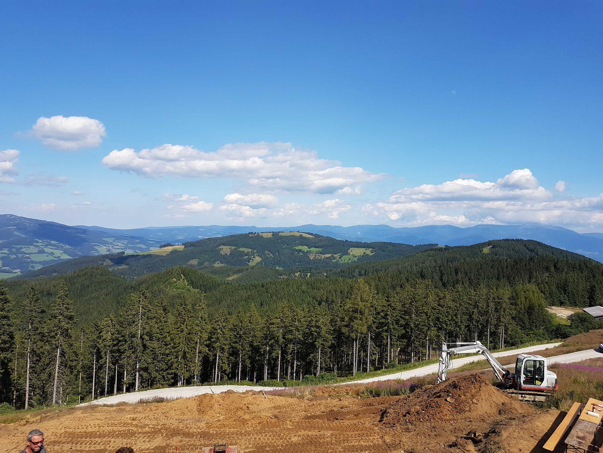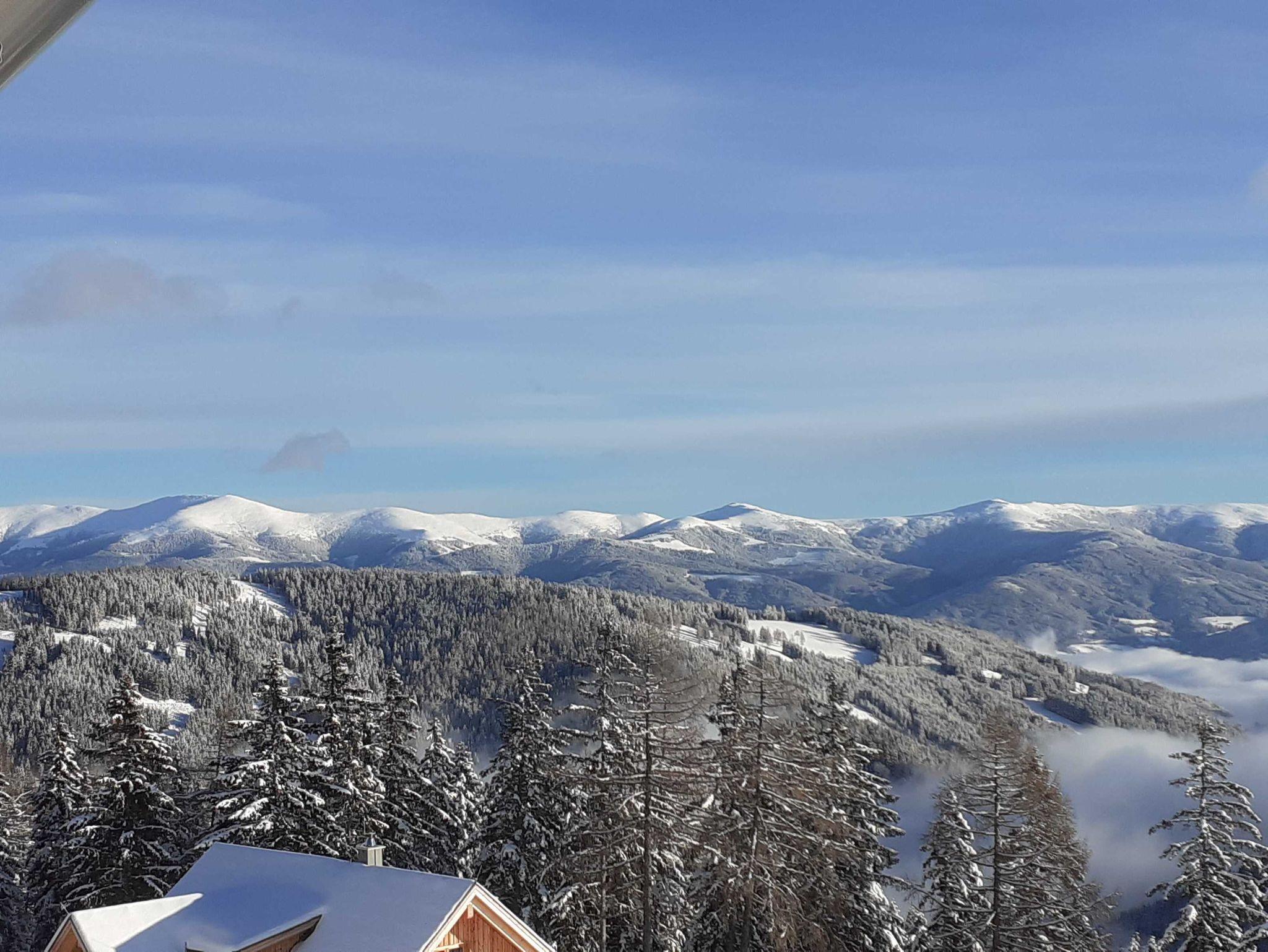 Auf 1500 m Höhe haben Sie von unserer großen Terrasse eine herrliche Aussicht auf das Lavanttal, die Packalpe, die Koralpe, die Saualpe bis zu den Karawanken.