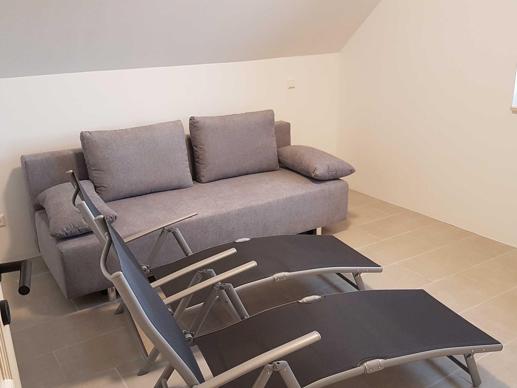 m im OG , 1 Sauna Ruheraum mit ausklappbarem Gästebett (2,00 m x 1,35