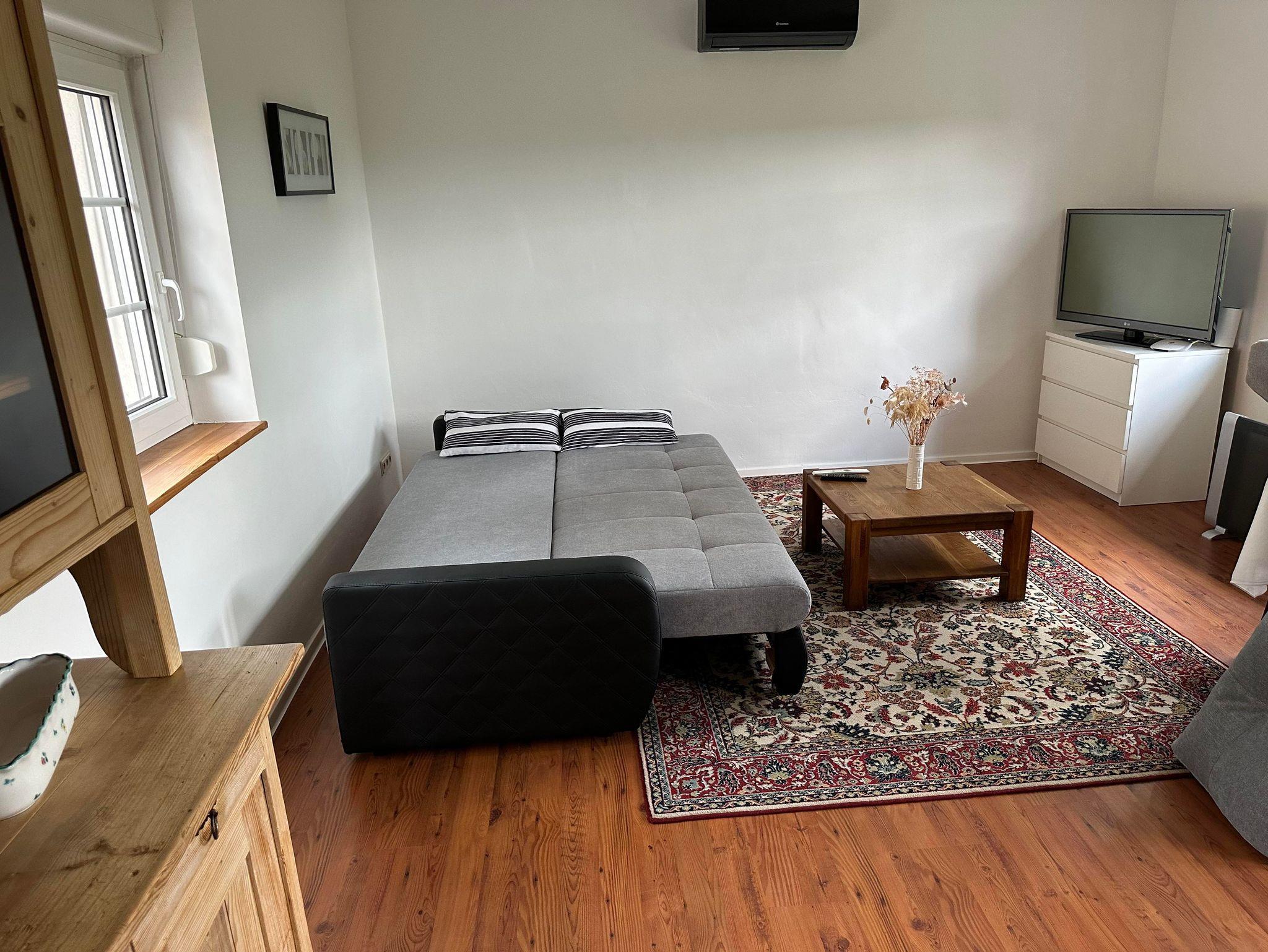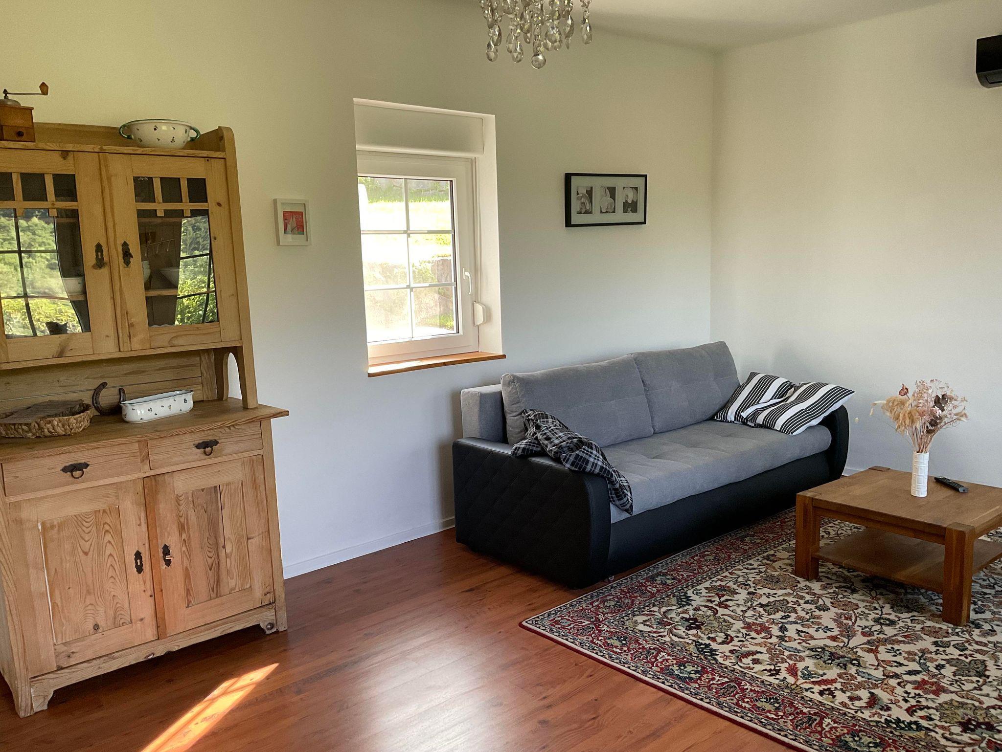 Kleines gemütliches Ferienhaus mit ca 60m²: ein Wohnzimmer mit einer ausziehbaren Coach, komplett eingerichtete Küche, ein Schlafzimmer mit großem Doppelbett, Badezimmer mit Dusche und WC. Im Vorzimmer befindet sich eine kleine Garderobe.