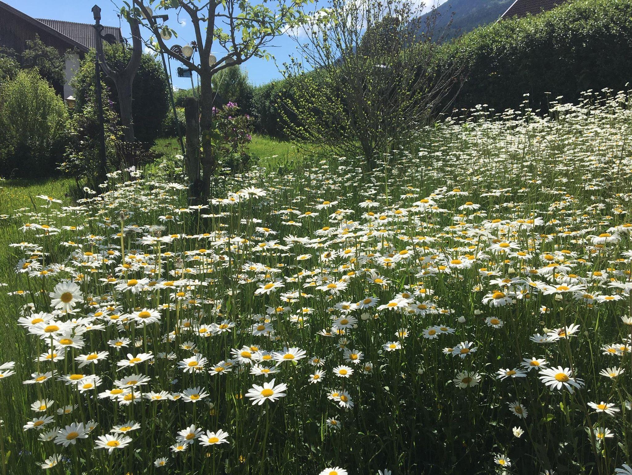 Unser Haus liegt mitten in der Natur. Umgeben vom saftigen Grün unseres Gartens, umrandet von einem kleinen Bächlein, dass direkt am Grundstück vorbei rinnt und eingebettet in die wunderbare Berglandschaft der Hohen Tauern und der Gailtaler Alpen. Unser Garten ist ein Kleinod. Wir legen viel Wert darauf, dass auch Bienen und Schmetterlinge Blüten zum Verweilen finden. Wir bauen unser Gemüse selbst an und ernten die Früchte der unzähligen Obstbäume.