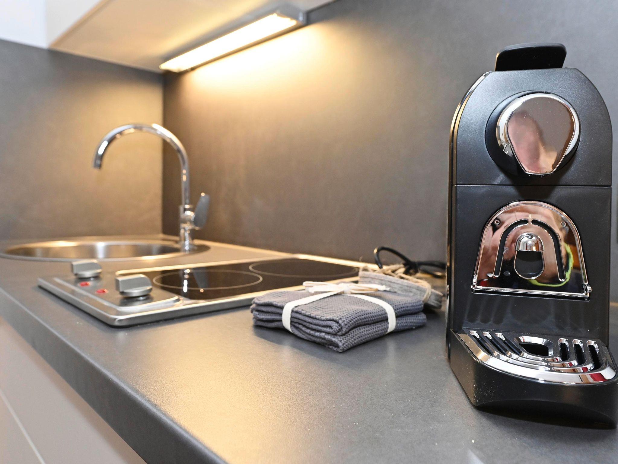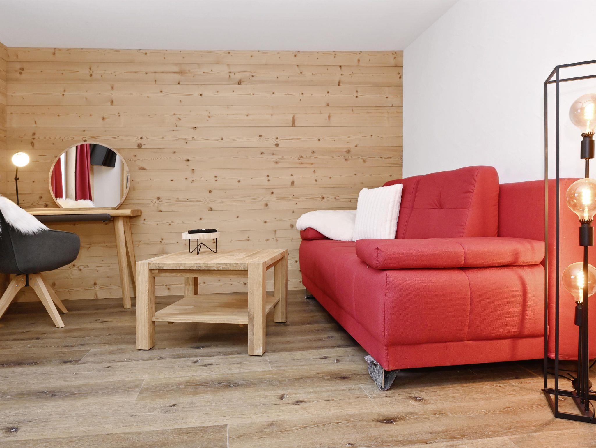 Wohnbereich: ausziehbares Sofa (Boxsprinbett), Schminkbereich, Sat TV