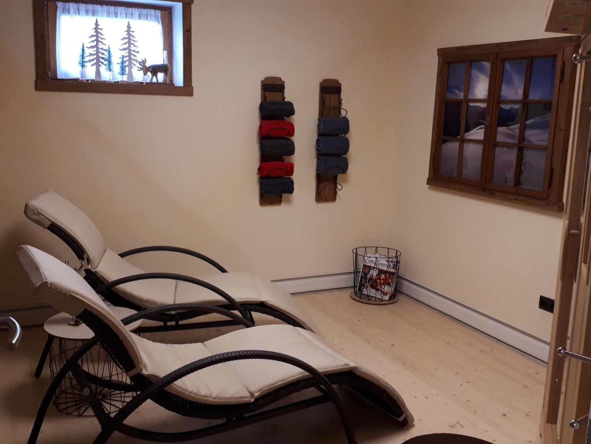 Untergeschoss: 2 Doppelbettzimmer, Badezimmer mit DU/WC, Wellnessraum mit Infrarotkabine, Wasch-bzw. Trockenraum