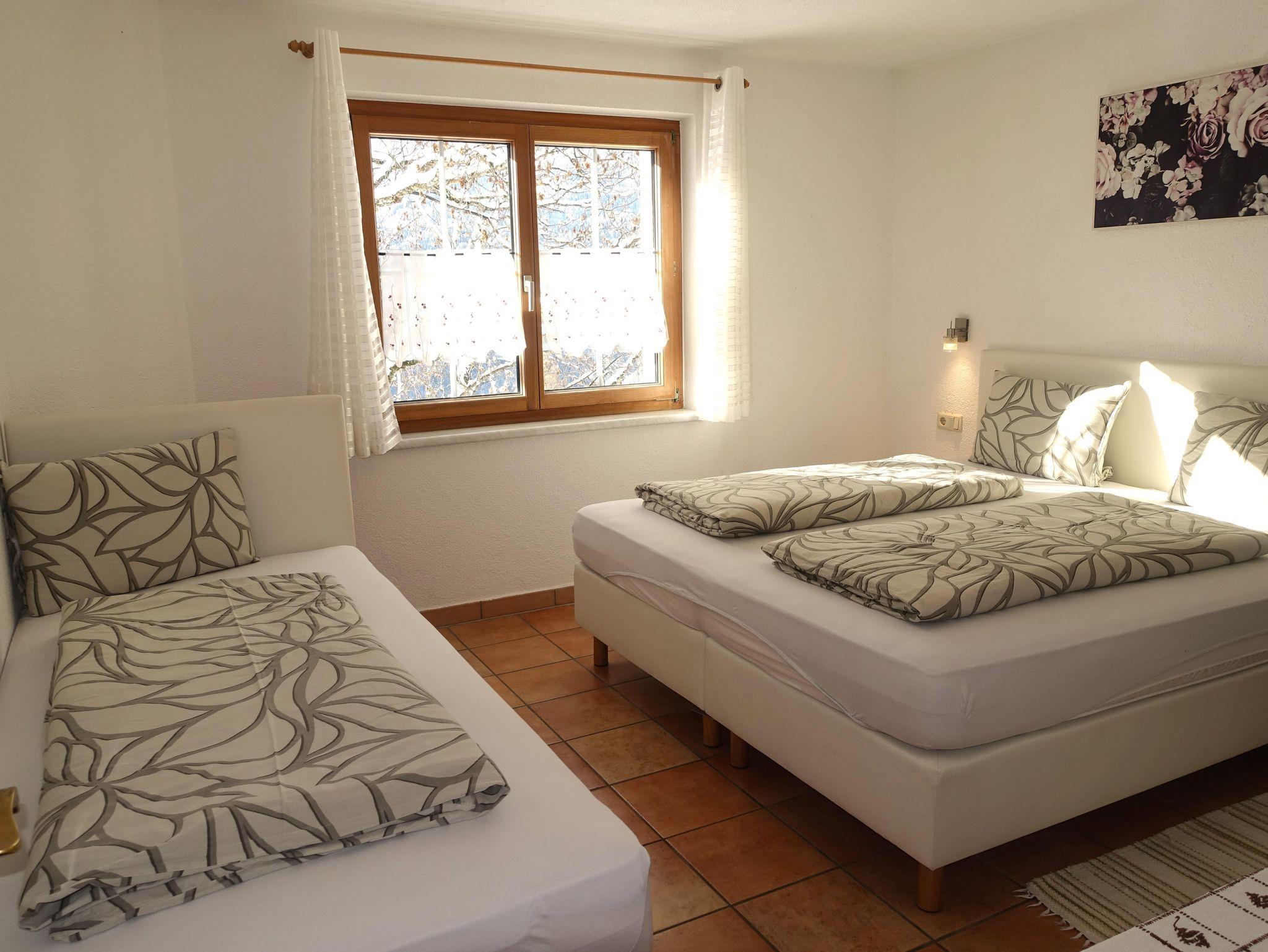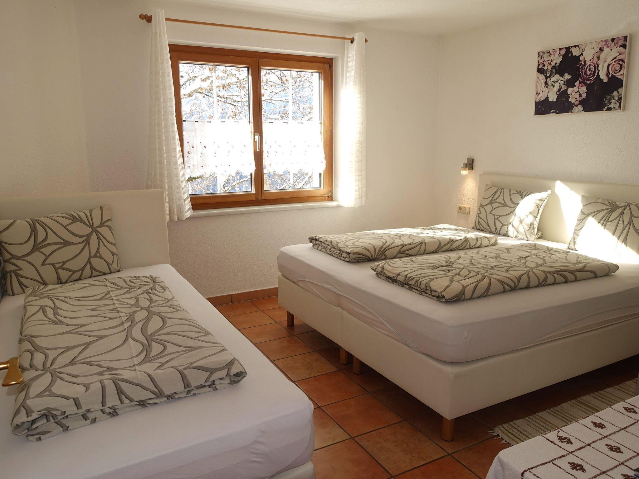 Wohnzimmer (TV (Satellit), offener Kamin), offene Küche (Backofen, Mikrowelle), 2 Schlafzimmer (Einzelbett, Doppelbett), Badezimmer (Dusche), Abstellraum. Fussbodenheizung, Terrasse, Kinderbett, Hochstuhl, Ski-Raum.