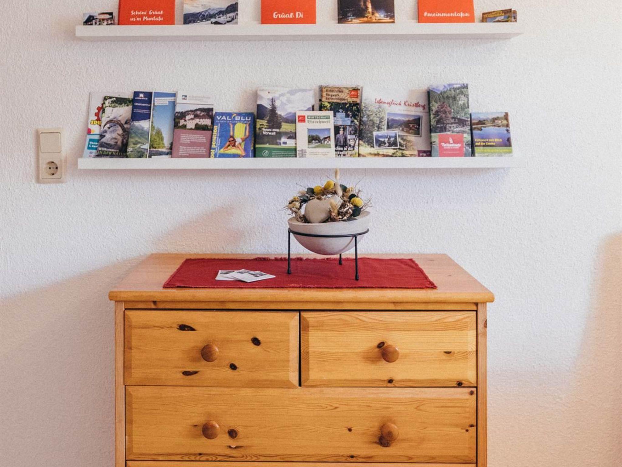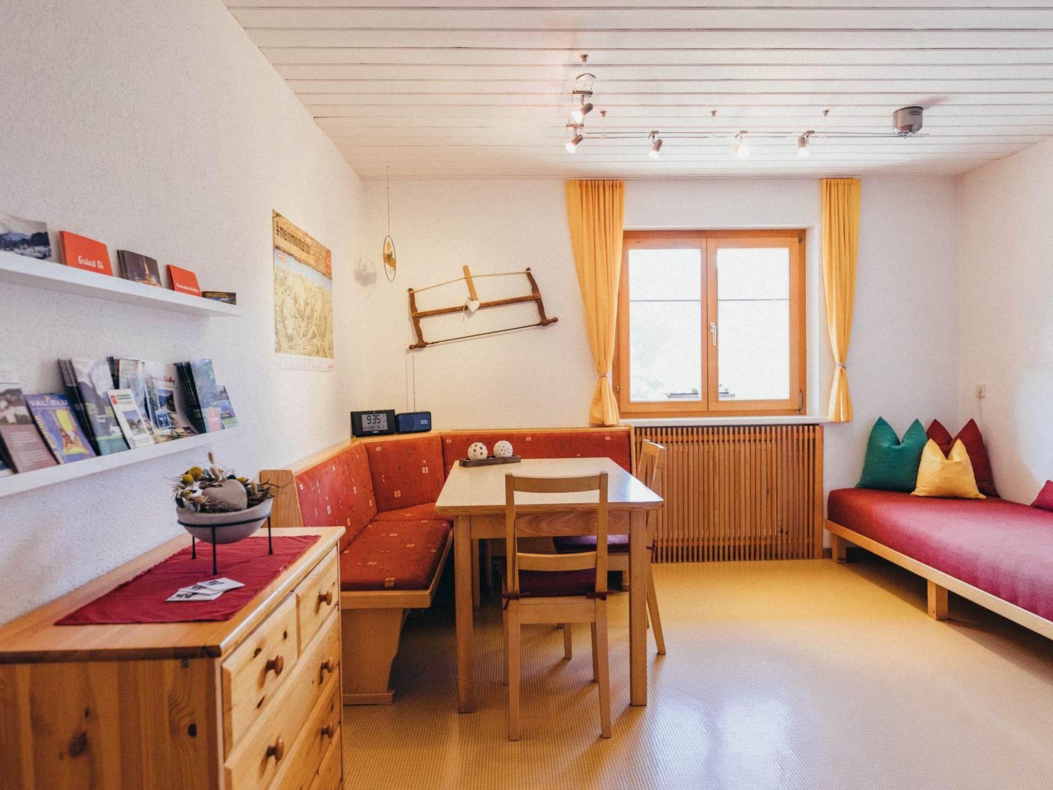 Wohn-u.Esszimmer,Küche mit Herd (Cerankochfeld),Backrohr,Geschirrspüler,Wasserkocher,Kaffeemaschine,Toaster und allen wichtigen Küchenutensilien, geräumiges Schlafzimmer mit Vollholz-Fichtendoppelbett und Kleiderkasten, Terrasse mit Bank u. Tisch sowie Liegestühlen mit herrlichem Blick übers Tal, 1 Autoabstellplatz