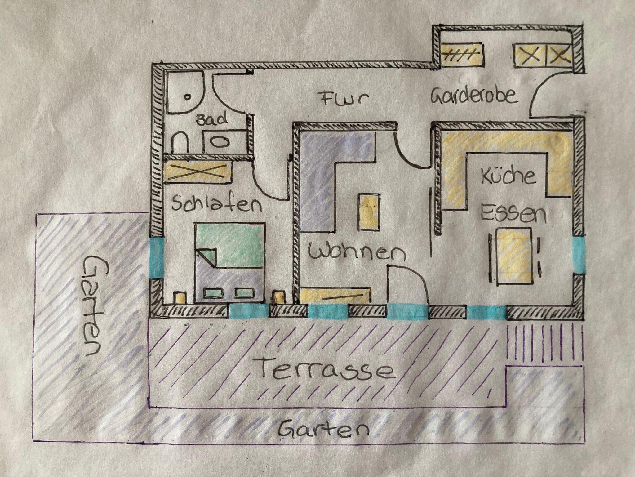 Die 65 m² große Erdgeschosswohnung mit separatem Eingang verfügt über eine großzügige helle Wohnküche mit gemütlicher Sitzgruppe, ein Wohnzimmer mit Schlafcouch und Zugang zur eigenen Sonnenterrasse, ein stilvoll eingerichtetes Schlafzimmer mit Doppelbett, ein modernes Bad mit Dusche und WC sowie einen Vorraum mit Garderobe. Kostenfreies WLAN ist ebenso vorhanden wie ein PKW-Stellplatz für Gäste.