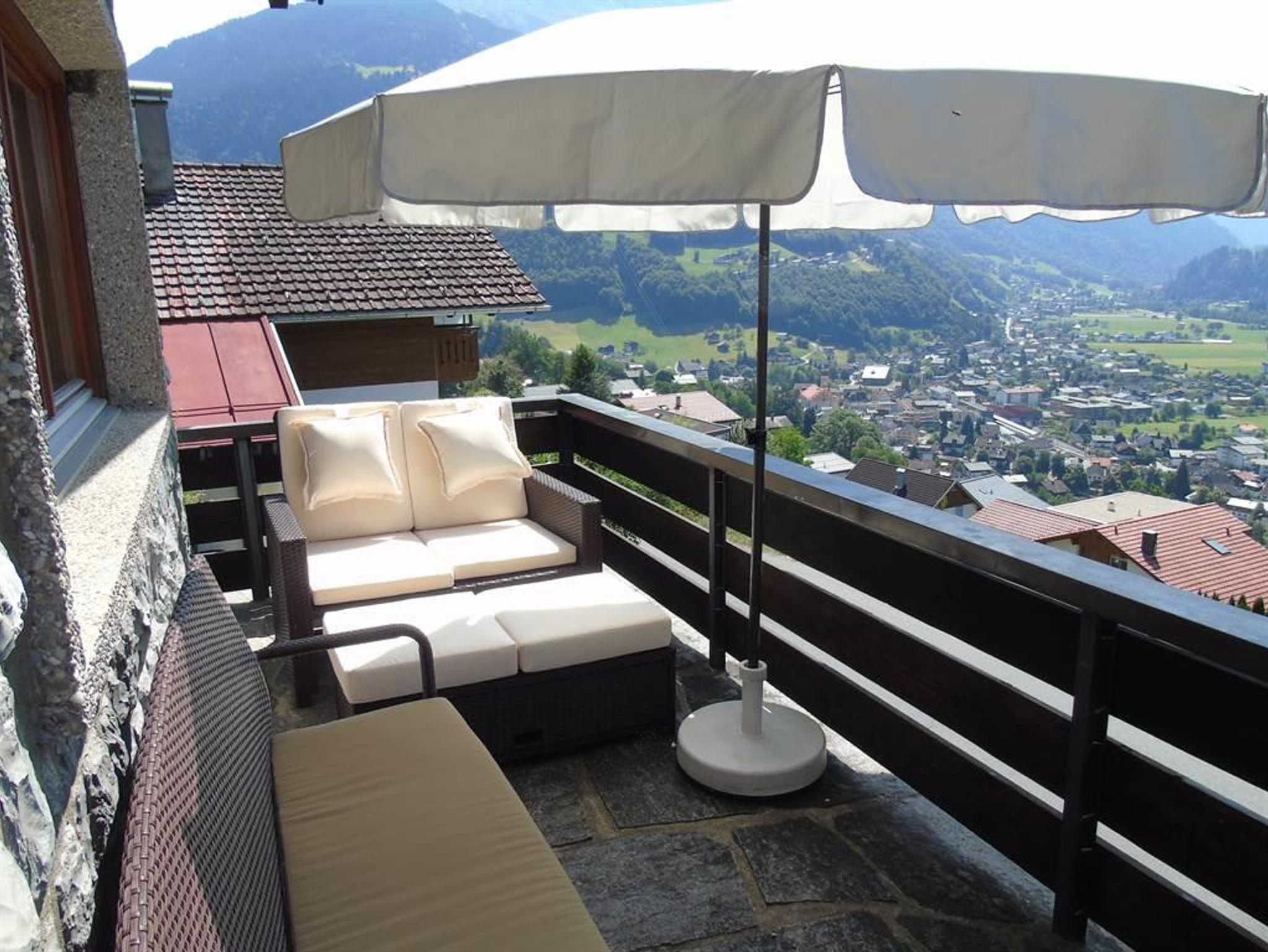 Das Haus befindet sich in Bartholomäberg auf der Sonnenterrasse vom Montafon, auf 807m Seehöhe und bietet eine atemberaubende Aussicht auf die Bergwelt über den Dächern von Schruns und ist leicht mit dem Auto oder mit dem Bus erreichbar.