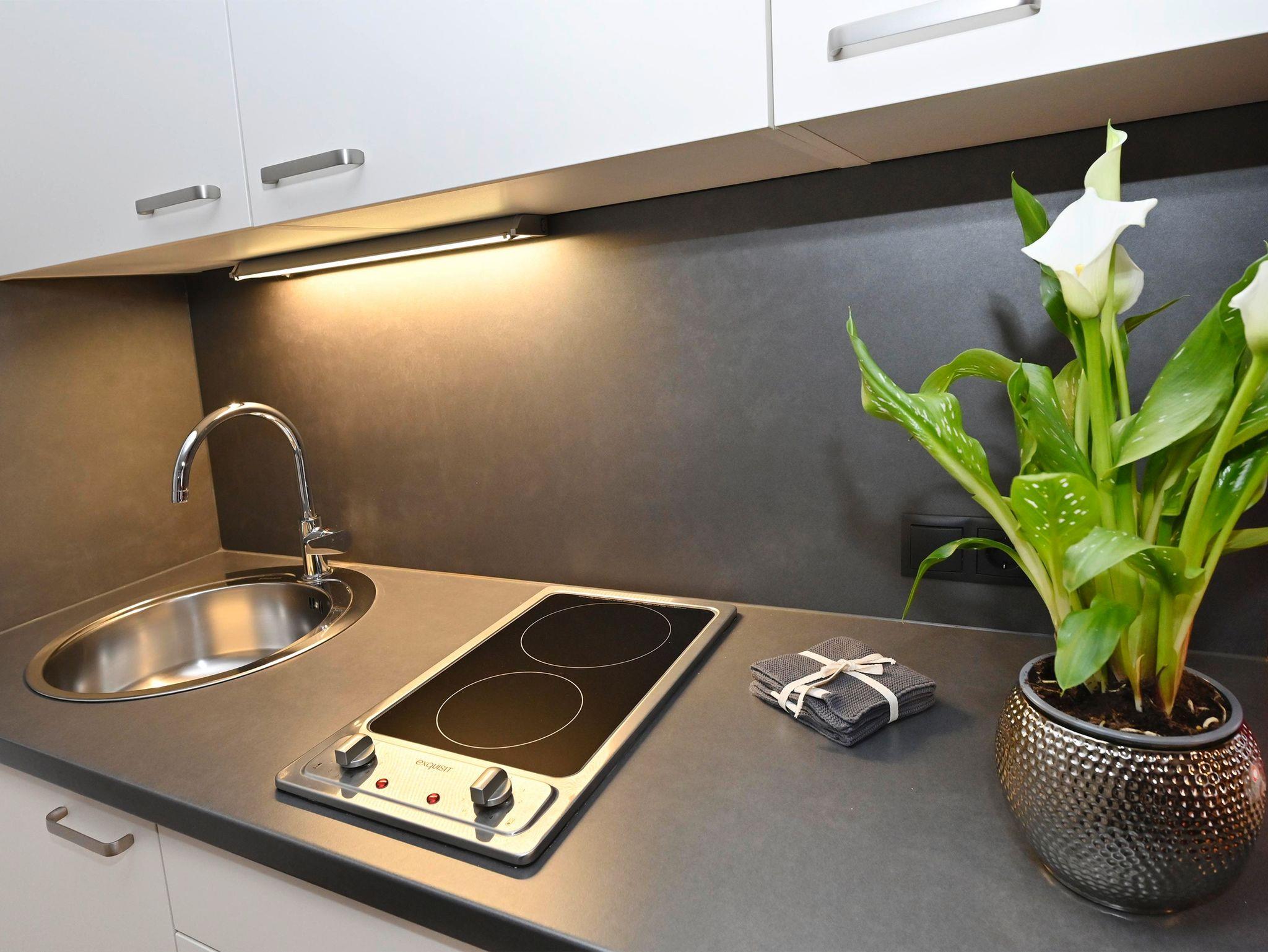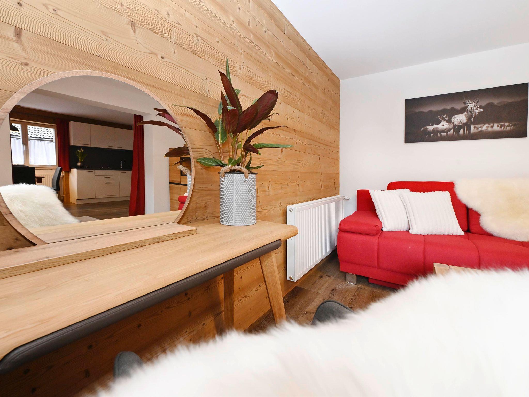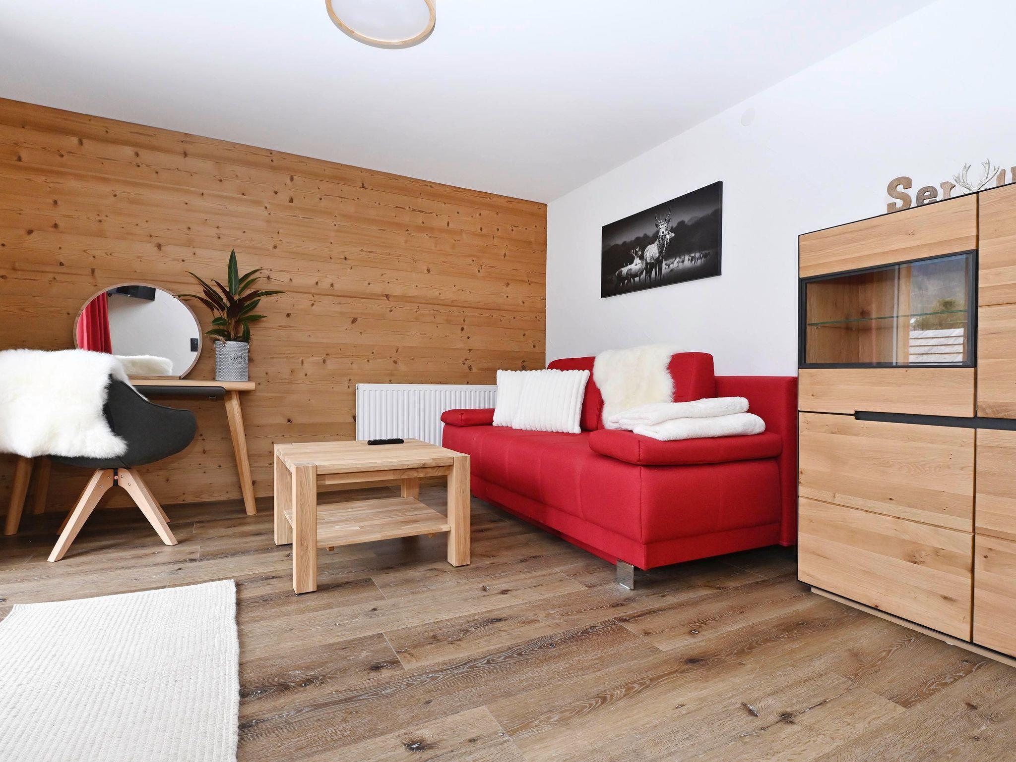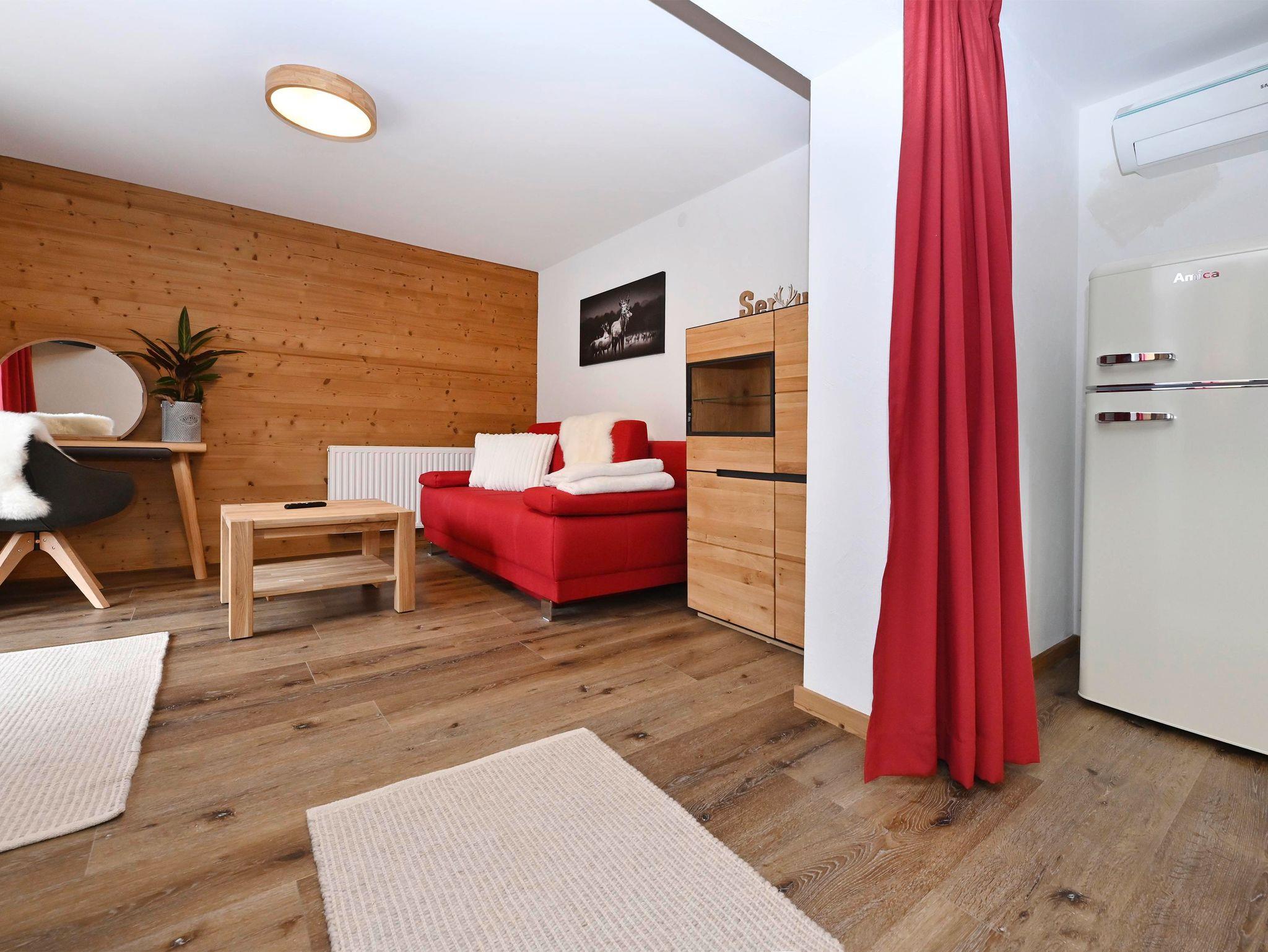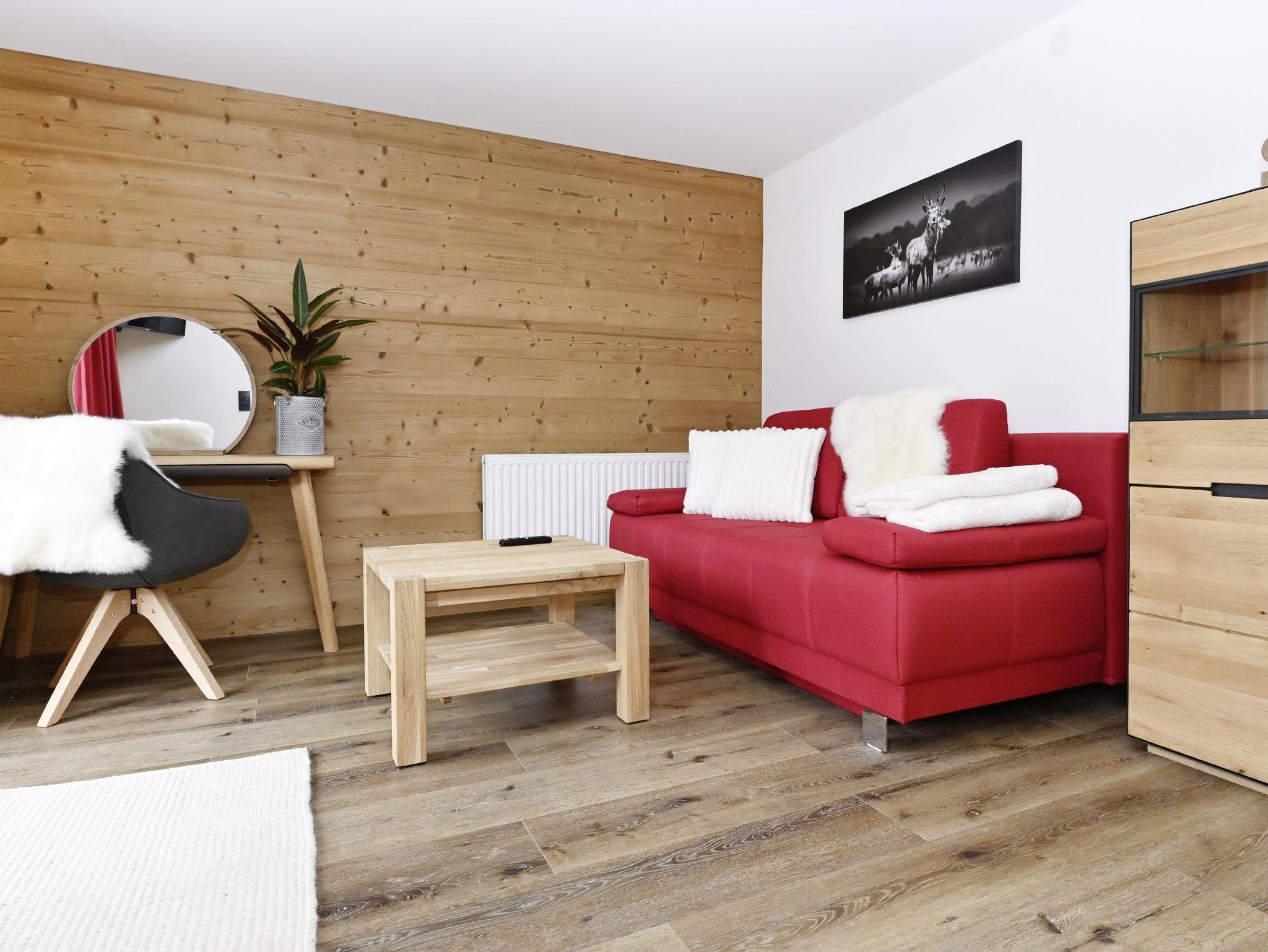 Wohnbereich: ausziehbares Sofa (Boxspring), Schminkbereich, Sat TV