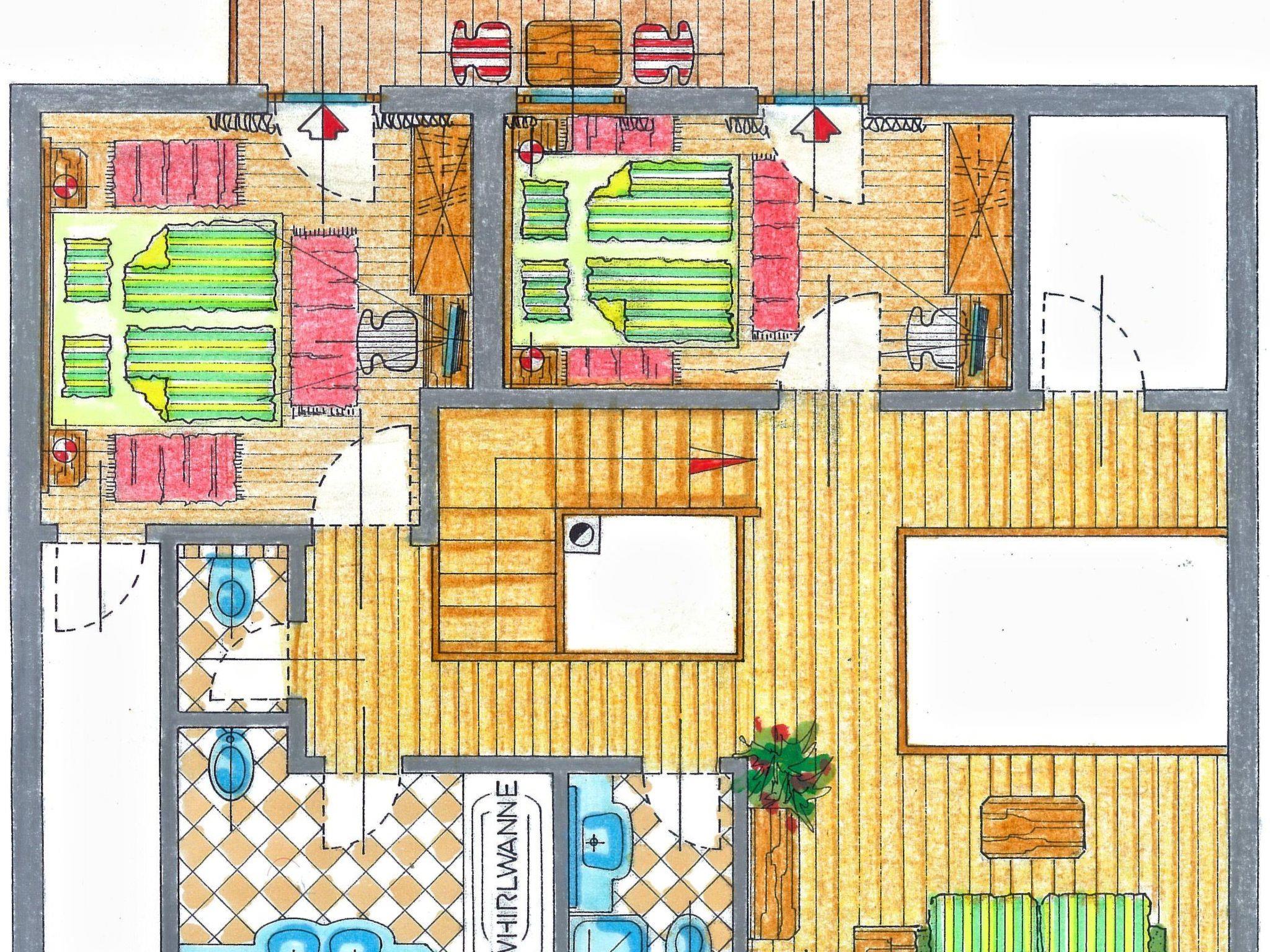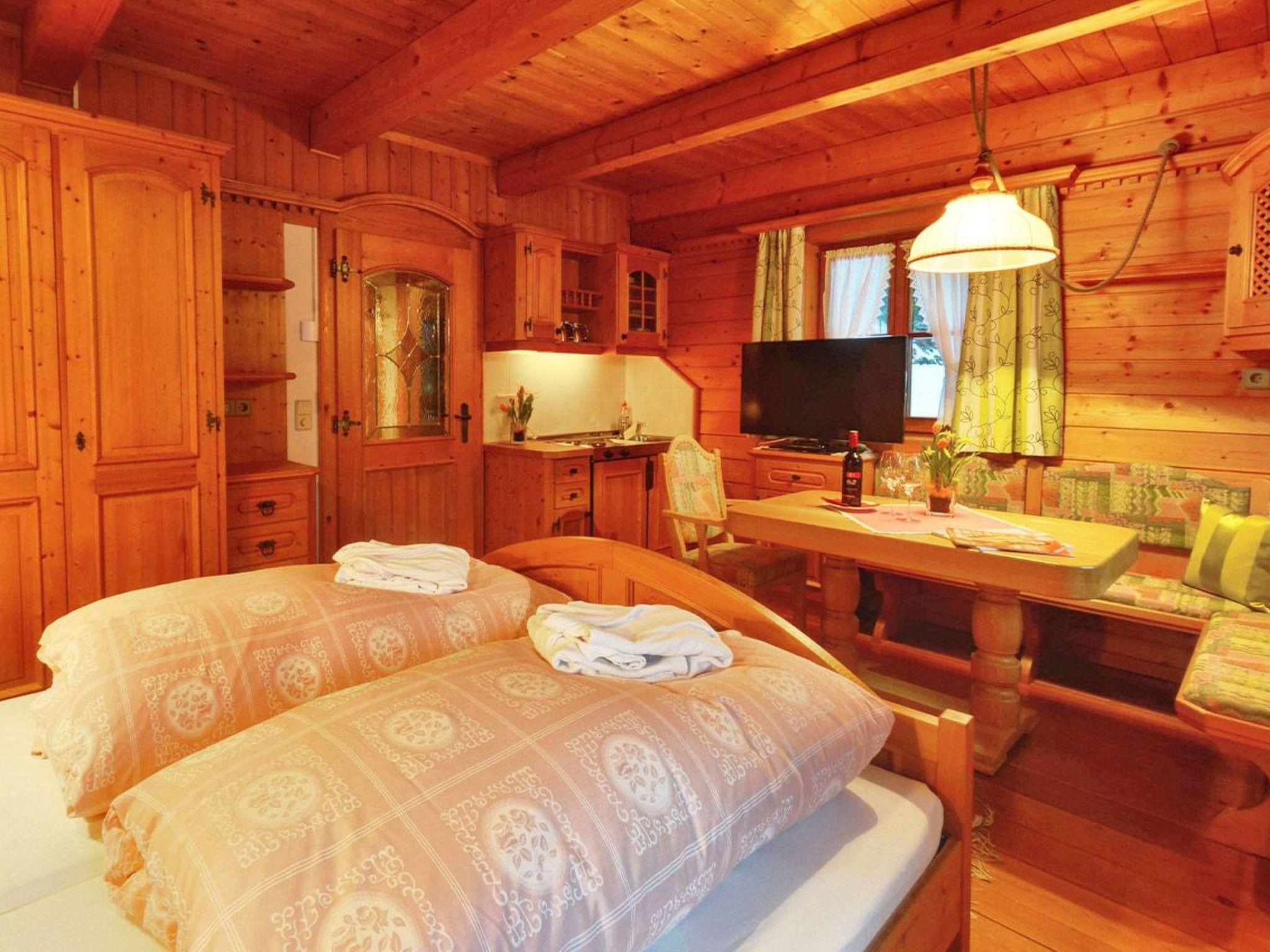 There is a cosy lounge with a fireplace, a well-equipped eat-in kitchen and TV corner on the ground floor as well as a parlour with a separate flat. On the upper floor there are two bedrooms with double beds. The bathroom has a whirlpool bath and WC and there is a separate WC. WLAN is available and you will find mineral water when you move in. The flat has a cosy wooden interior and a wood-burning stove to create a feel-good atmosphere and the modern furnishings leave nothing to be desired.