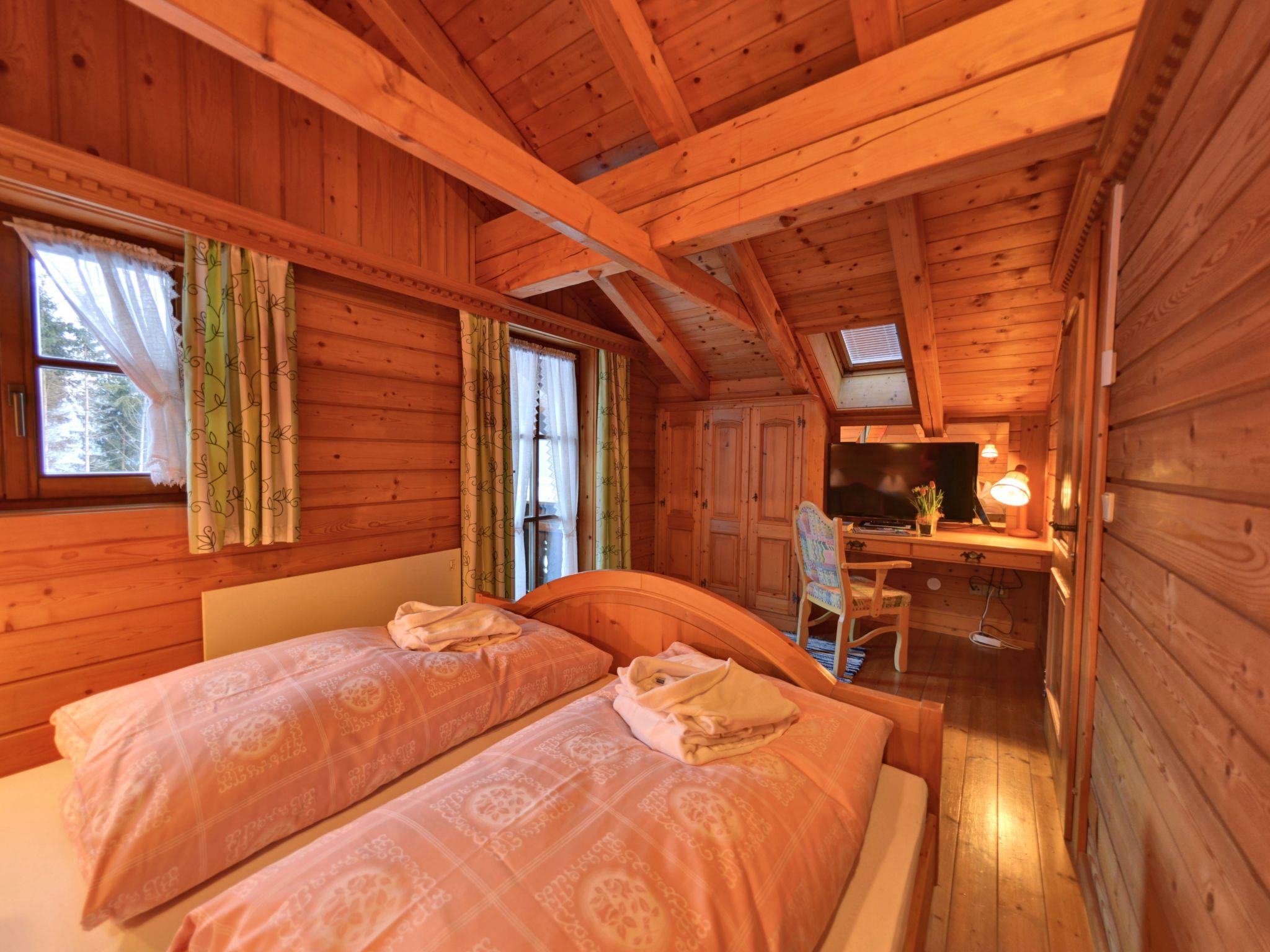 This holiday home in the Carinthian Oberdrautal, a cosy wooden log cabin in organic construction, offers plenty of comfort and enough space for 2 to 10 people. Whether you are travelling as a couple, with your family or with a group of friends, you will feel right at home here. The house is located slightly away from the Ferienhotel Glocknerhof on a quiet, sunny hill (700 m) on the edge of the forest with views across the Drau Valley to Lake Weissensee and can be booked for two to ten people.