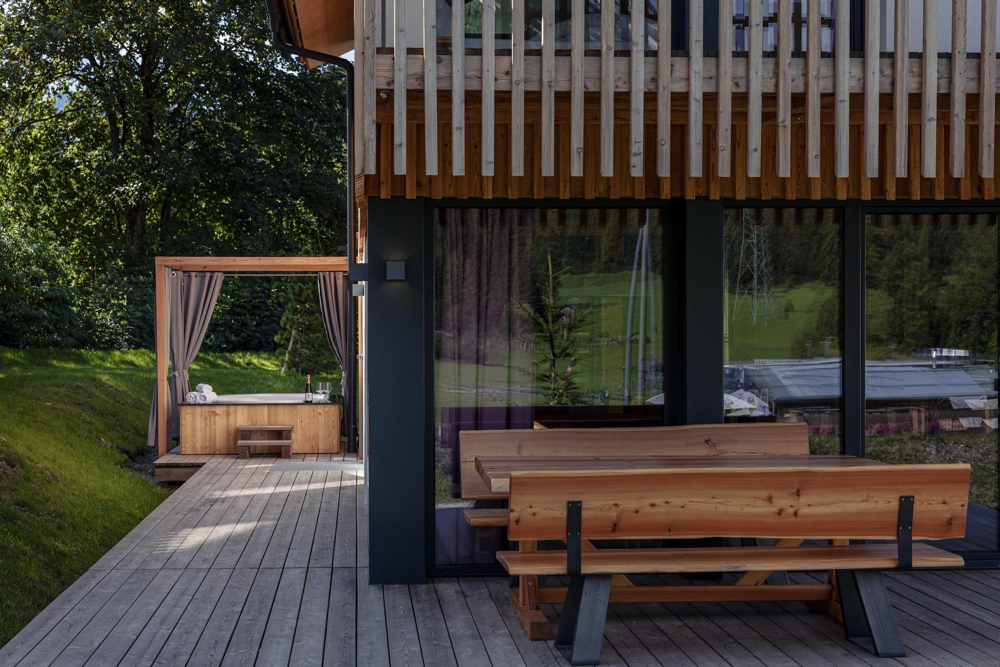 This spacious 130 m² wooden chalet comfortably accommodates up to 8 guests. It features four bedrooms with box spring double beds and three bathrooms (two of which are en suite with hairdryers). Additionally, there's a separate guest WC and a private sauna with a shower for ultimate relaxation. The expansive living and dining area on the ground floor offers a panoramic glass front, providing stunning views of the adjacent ski slope. A flat-screen TV is available for your entertainment. Pet-friendly upon request (for an additional fee), the chalet welcomes your furry friends. The chalet is located in Biberwier, Tiroler Zugspitz Arena, just steps from the Marienbergbahn valley station. Guests receive the Zugspitz Arena Bayern-Tirol Card, offering various discounts and benefits. The modern kitchen is fully equipped with cutlery, cookware, a ceramic stove, oven, microwave, fridge with freezer compartment, and a dishwasher. Also included are a toaster, kettle, and a Nespresso coffee machine. Upon arrival, you'll find a starter kit with dishwashing tabs, dish soap (20 ml), sponges, trash bags, and cleaning cloths. On the chalet's terrace, you'll find an additional seating area and an outdoor bathtub with whirlpool function, where you can unwind while enjoying the breathtaking views of the majestic Wetterstein mountain range. Free Wi-Fi is available throughout the chalet.