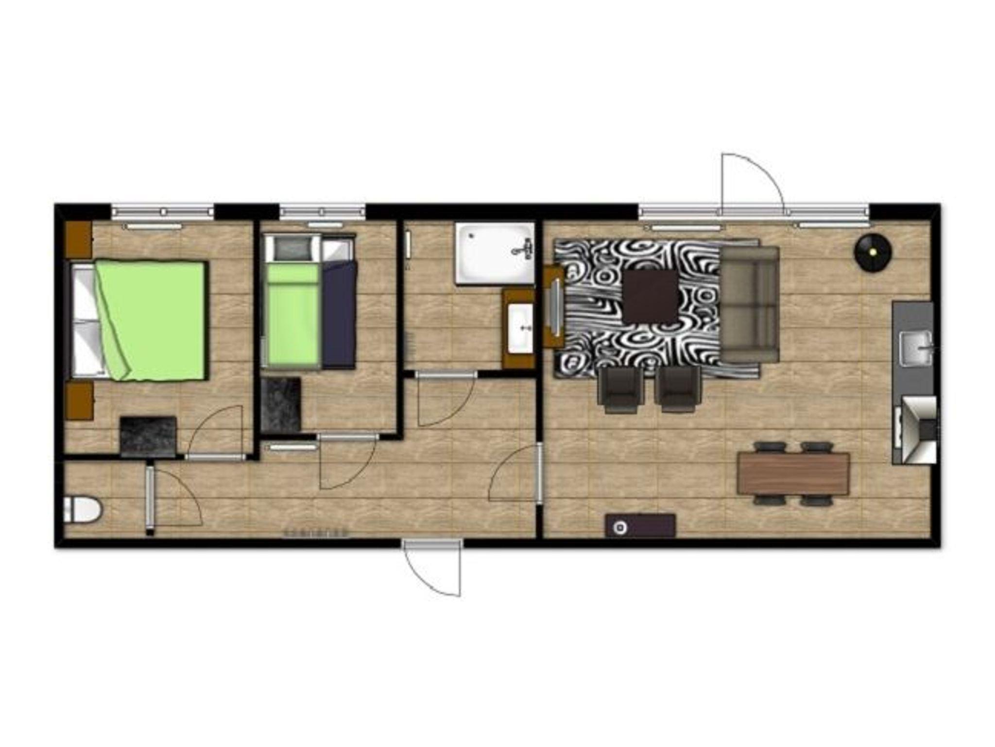 1 Schlafzimmer mit Etagenbett (das untere ist ein Doppelbett)