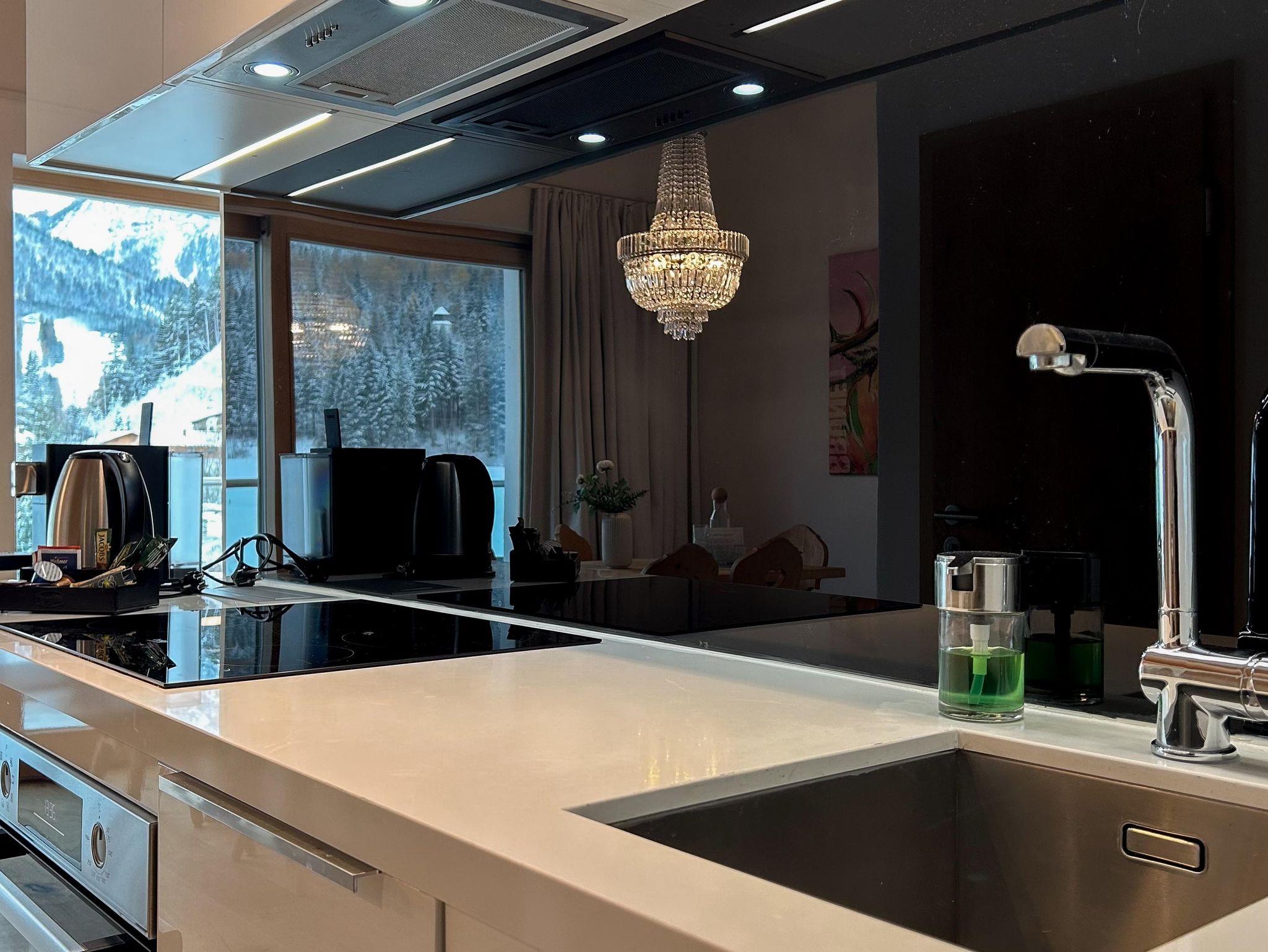 Dieses Apartment ist buchbar für bis zu 4 Personen und bietet auf 55 m² einen komfortablen Wohnbereich mit Flachbild-TV, ein Schlafzimmer mit Doppelbett, einen weiteren Schlafbereich für bis zu 2 Personen, eine voll ausgestattete Küche, ein modernes Badezimmer mit Dusche, ein separates WC sowie einen Südbalkon mit herrlichem Bergblick. Das Apartment befindet sich im 2. Stock und ist über eine Treppe zugänglich.