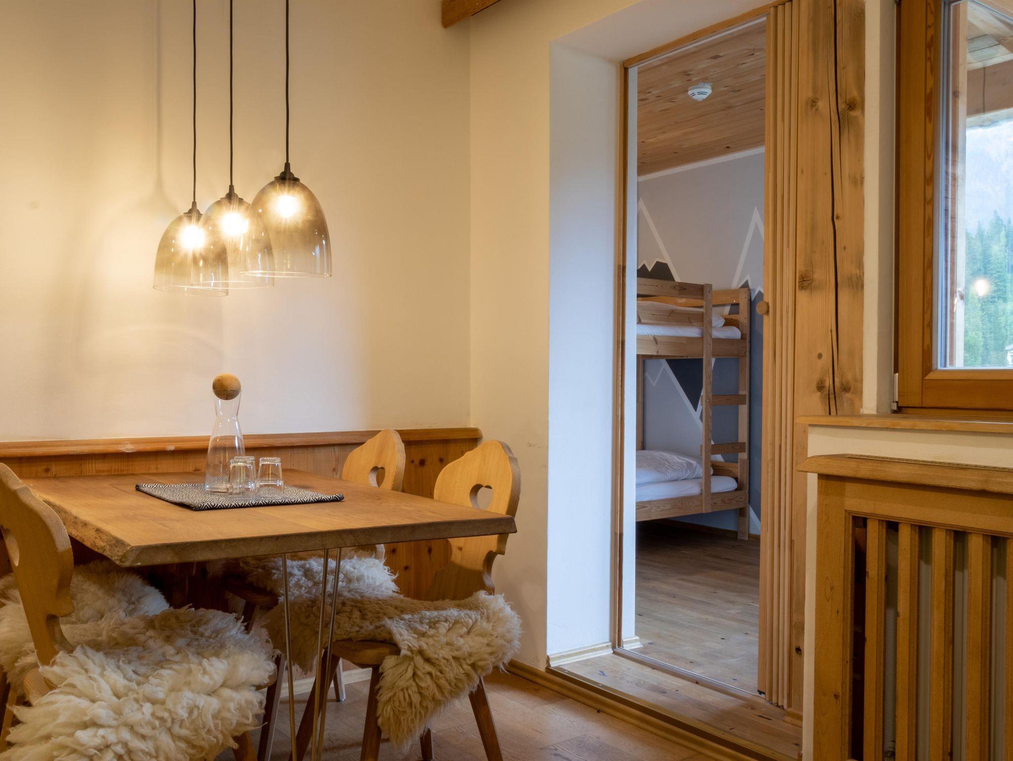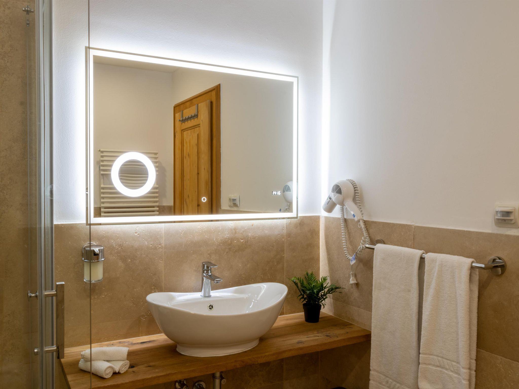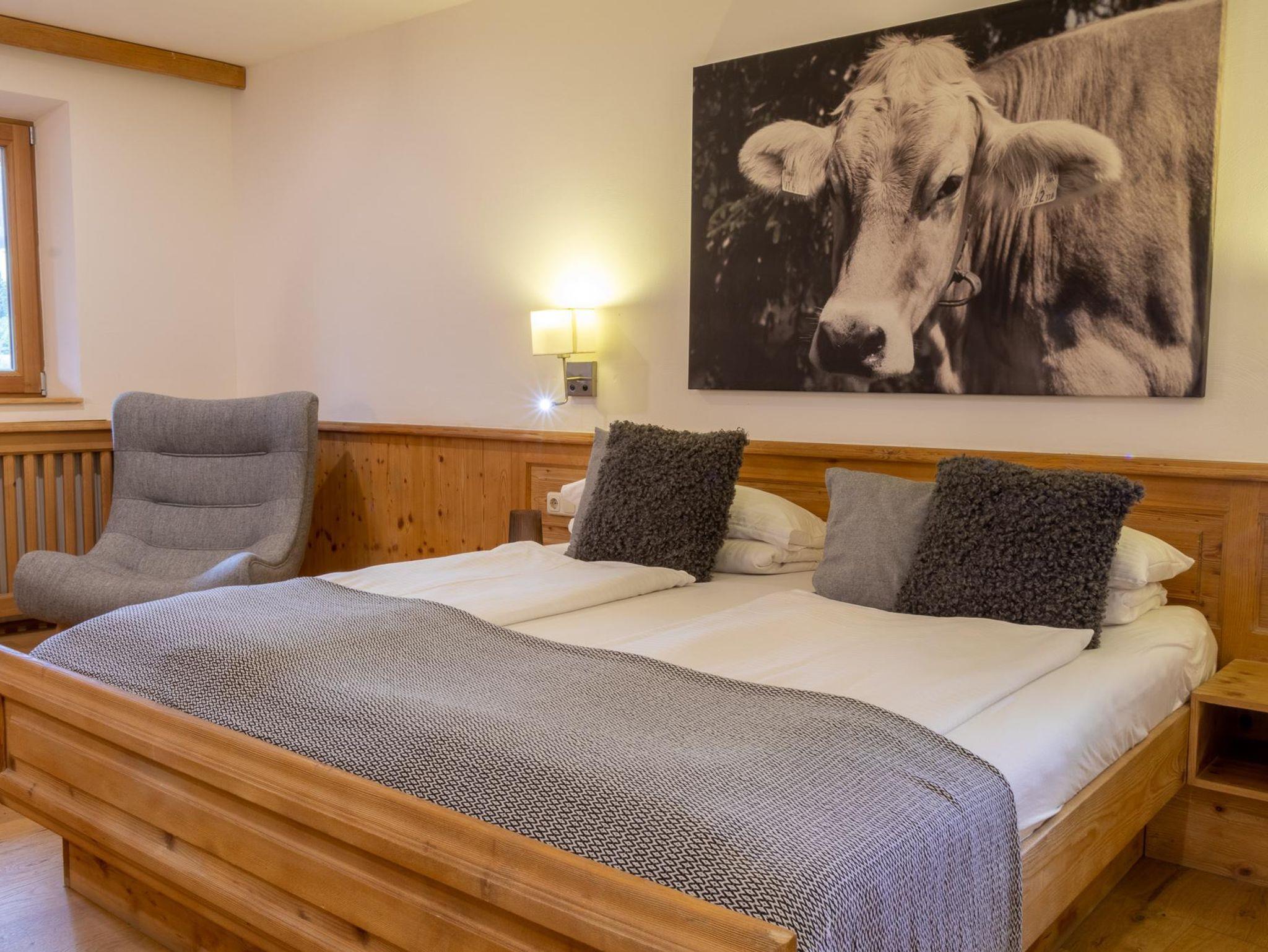 Die Family Suite bietet auf 36 m² Platz für bis zu 3 Personen und vereint Komfort mit einem naturnahen Ambiente – ideal für Familien. Der moderne Wohn- und Schlafbereich verfügt über ein bequemes Doppelbett, einen Essbereich im hellen Erker und einen gemütlichen, abgetrennten Bereich mit Einzelbett. Eine voll ausgestattete Küche sowie ein modernes Bad mit Dusche sorgen für zusätzlichen Wohlfühlfaktor. Der sonnige Südbalkon eröffnet einen traumhaften Blick auf die Berge. Bequem über den Aufzug erreichbar. Das Apartment befindet sich im 3. Stock in ruhiger Lage am Ende des Flurs und ist bequem über einen Aufzug zugänglich.