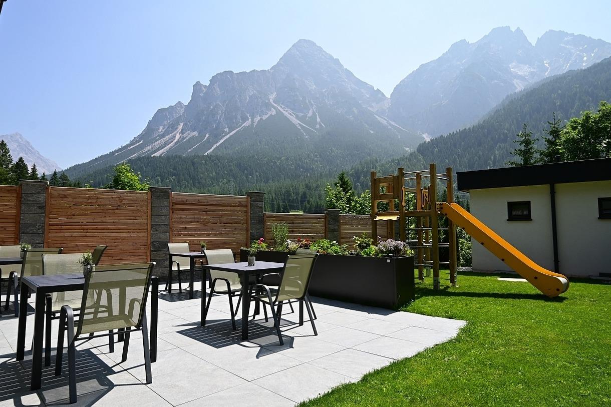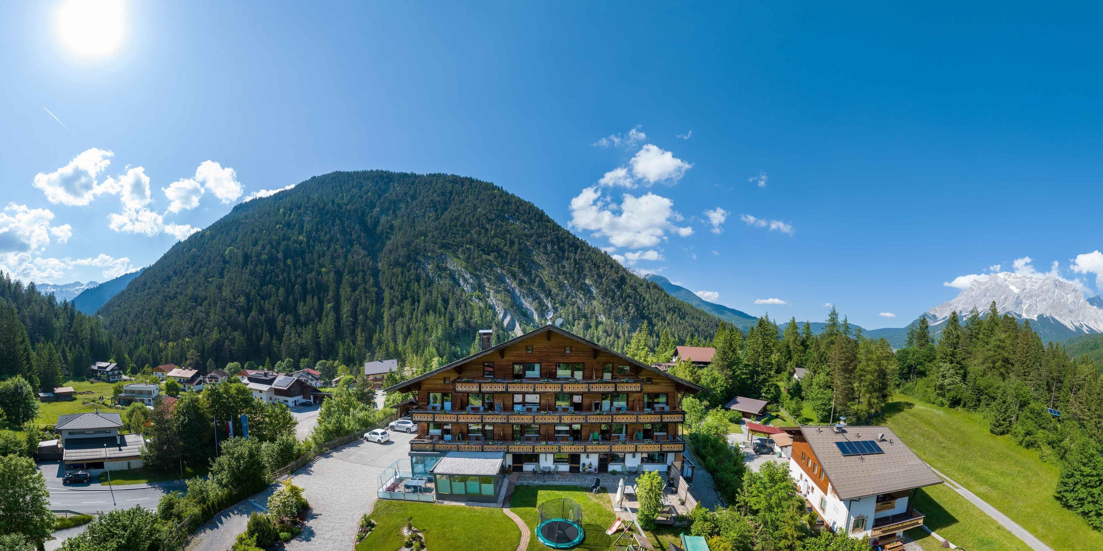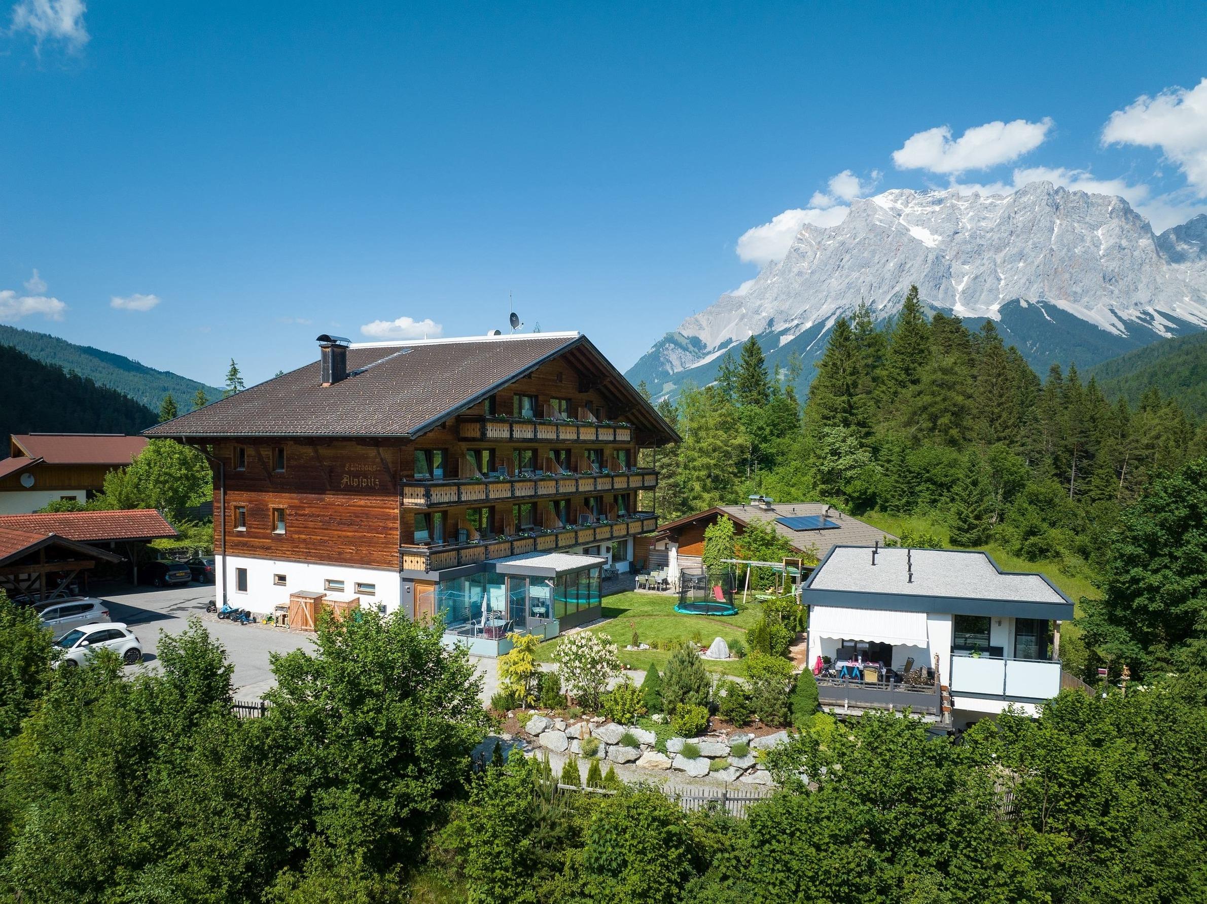 Unsere Familienpension bietet Ihnen gemütliche Apartments und Doppelzimmer mit Frühstück, einen modernen Wellnessbereich sowie grandiosen Ausblick auf die Zugspitze und unsere Bergwelt.