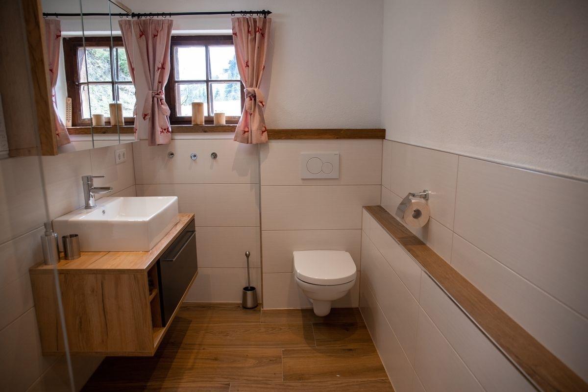 ? 1 Badezimmer mit Dusche, WC, Waschbecken und Fußbodenheizung