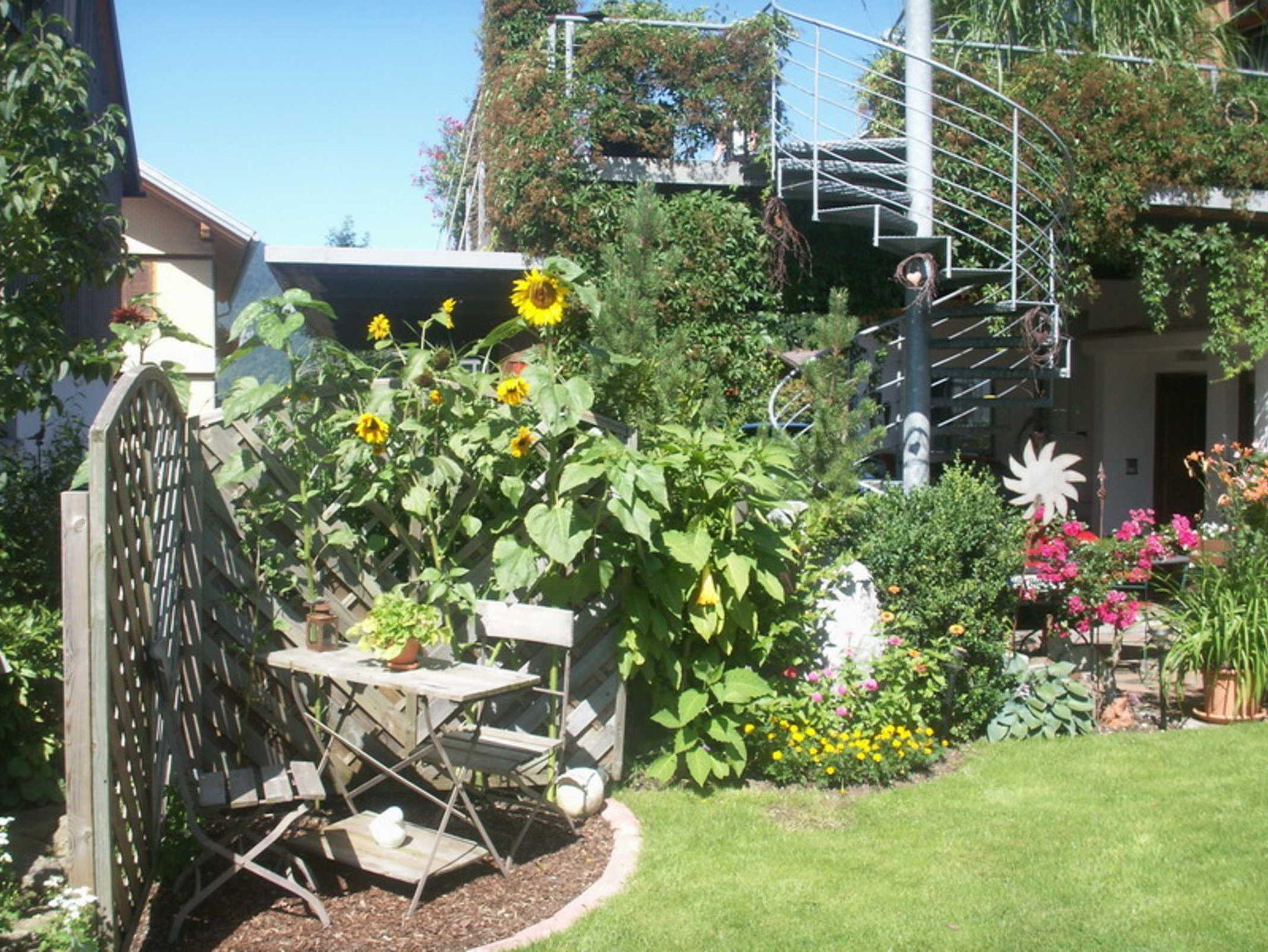 Die ruhige Lage unseres Hauses - mit Blick zum Hirschberg und zur Kanisfluh - ist in Zentrumsnähe und ohne Durchzugsverkehr. Für Ihr Auto steht ein Carport zur Verfügung. In unserem Garten mit sommerlichem Flair steht eine Sitzecke für Sie bereit.