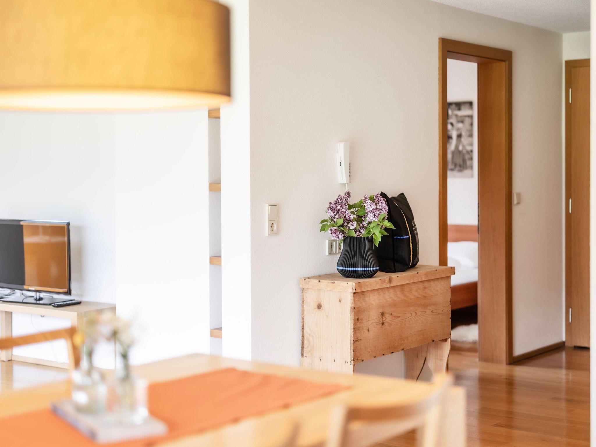 Wohnzimmer mit Couch und Essbereich - Küchenzeile mit Kühlschrank, Elektroherd, Geschirrspüler und Backrohr - 2 Schlafzimmer mit Doppelbetten - Badezimmer mit Dusche und Badewanne - Separates WC - Terrasse - TV - Kostenloser WLAN Zugang - Bettwäsche frisch für Sie bezogen - Handtücher - Geschirrtücher - komplettes Geschirr und Gläser sind vorhanden - Waschmaschine - Trockner - Fahrradabstellplatz - Schiaufbewahrungsraum - Liegestühle - pro Ferienwohnung ist ein Parkplatz vorhanden - Benützung von hauseigener Sauna, Schwimmbad und Whirlpool - Haustiere nicht erlaubt – Nichtraucherwohnung