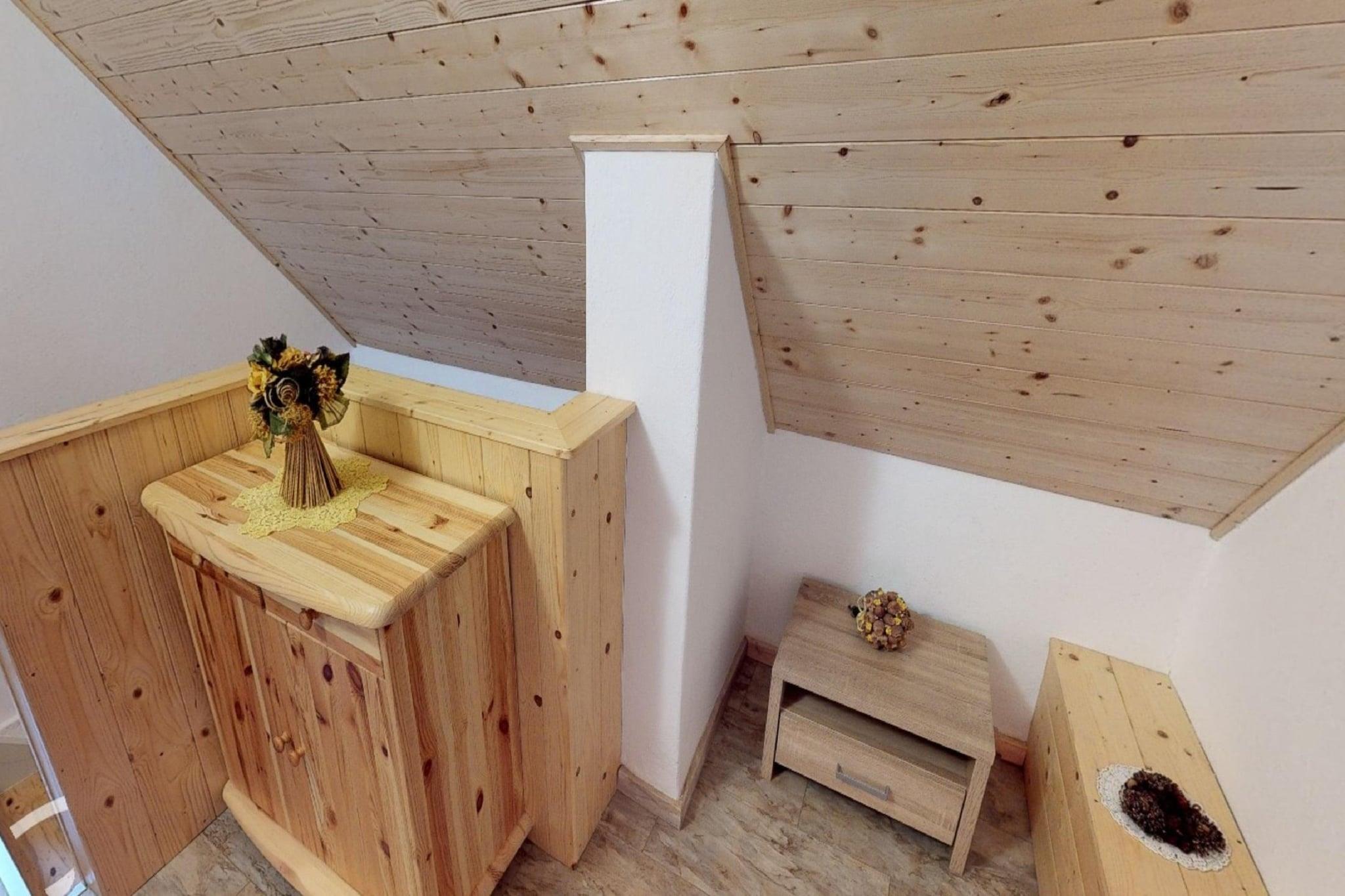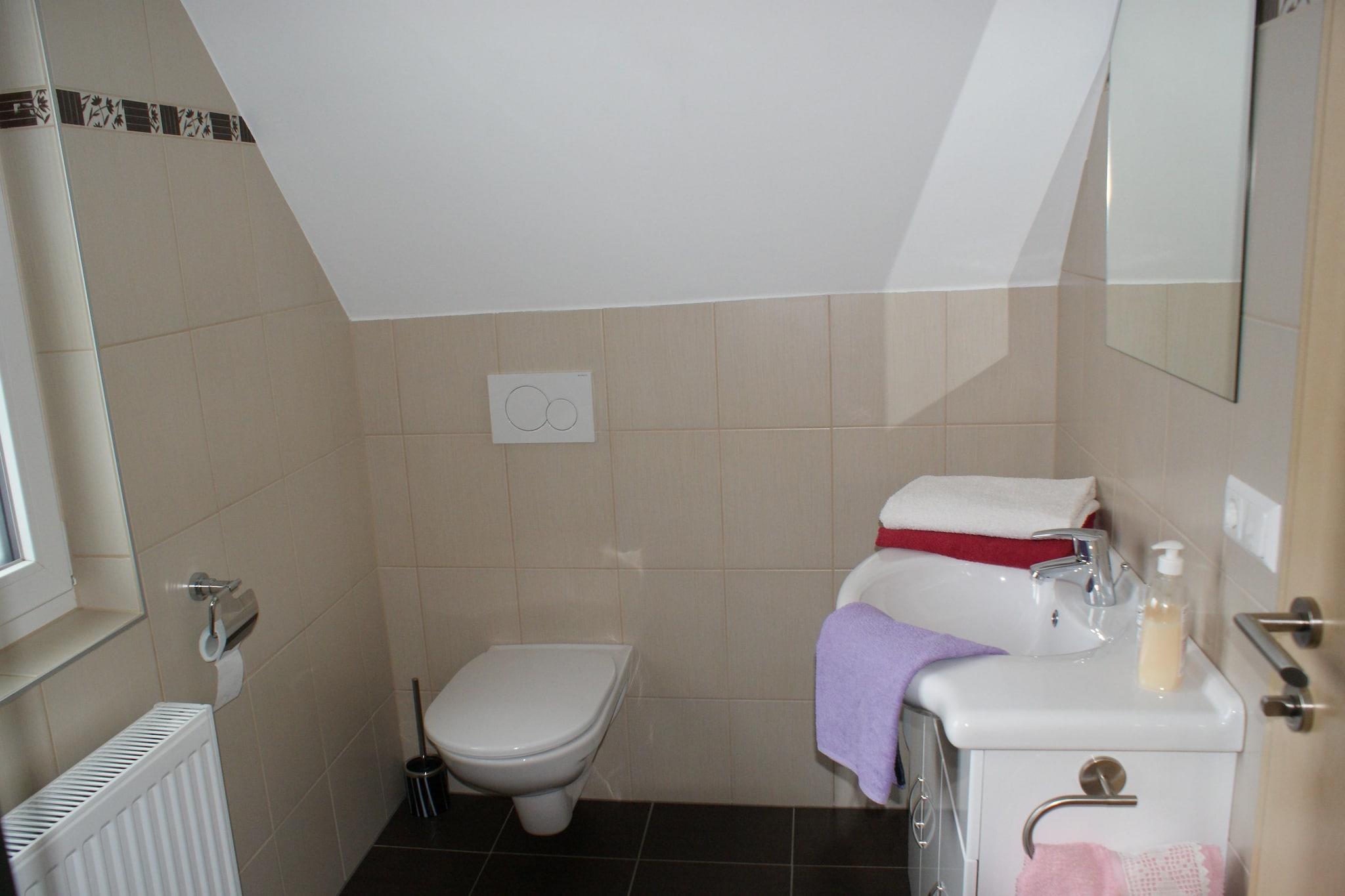 Ground floor: (Entrance(seating area), Kitchen(electric kettle, cooker, hood, coffee machine, oven, microwave, dishwasher, fridge-freezer), Living/bed room(double sofa bed, double sofa bed, TV), bedroom(single bed, double bed), bathroom(bath tub, washbasin, toilet)) On the 1st floor: (bedroom(double bed), bedroom(single sofa bed, double bed), bathroom(shower, washbasin, toilet)) balcony or terrace, garden, BBQ, parking