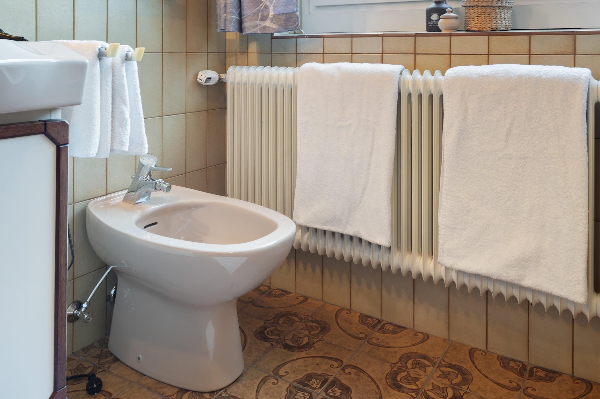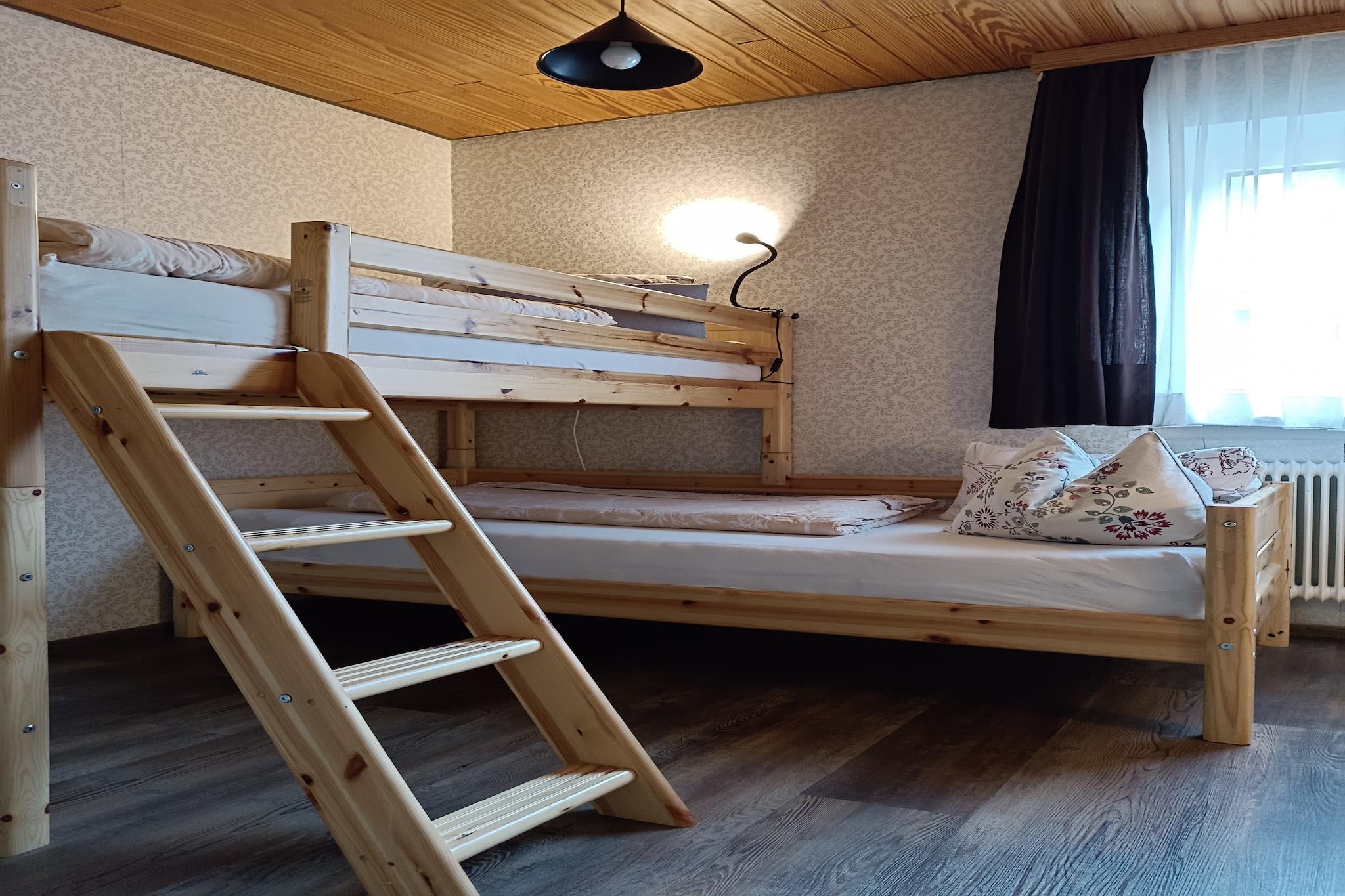 On the 1st floor: (Living room(double sofa bed, TV(cable, flatscreen), balcony), Kitchen(dining table, electric kettle, toaster, cooker(4 ring stoves, ceramic), hood, coffee machine(pads), oven, dishwasher, fridge(+ freezer), balcony, Juicer), bedroom(double bed(180 x 200 cm)), bedroom(bunk bed), bathroom(bathtub with shower, washbasin, washbasin, toilet, bidet, hairdryer)) heating(oil), garden furniture, parking, children's bed, insect screens