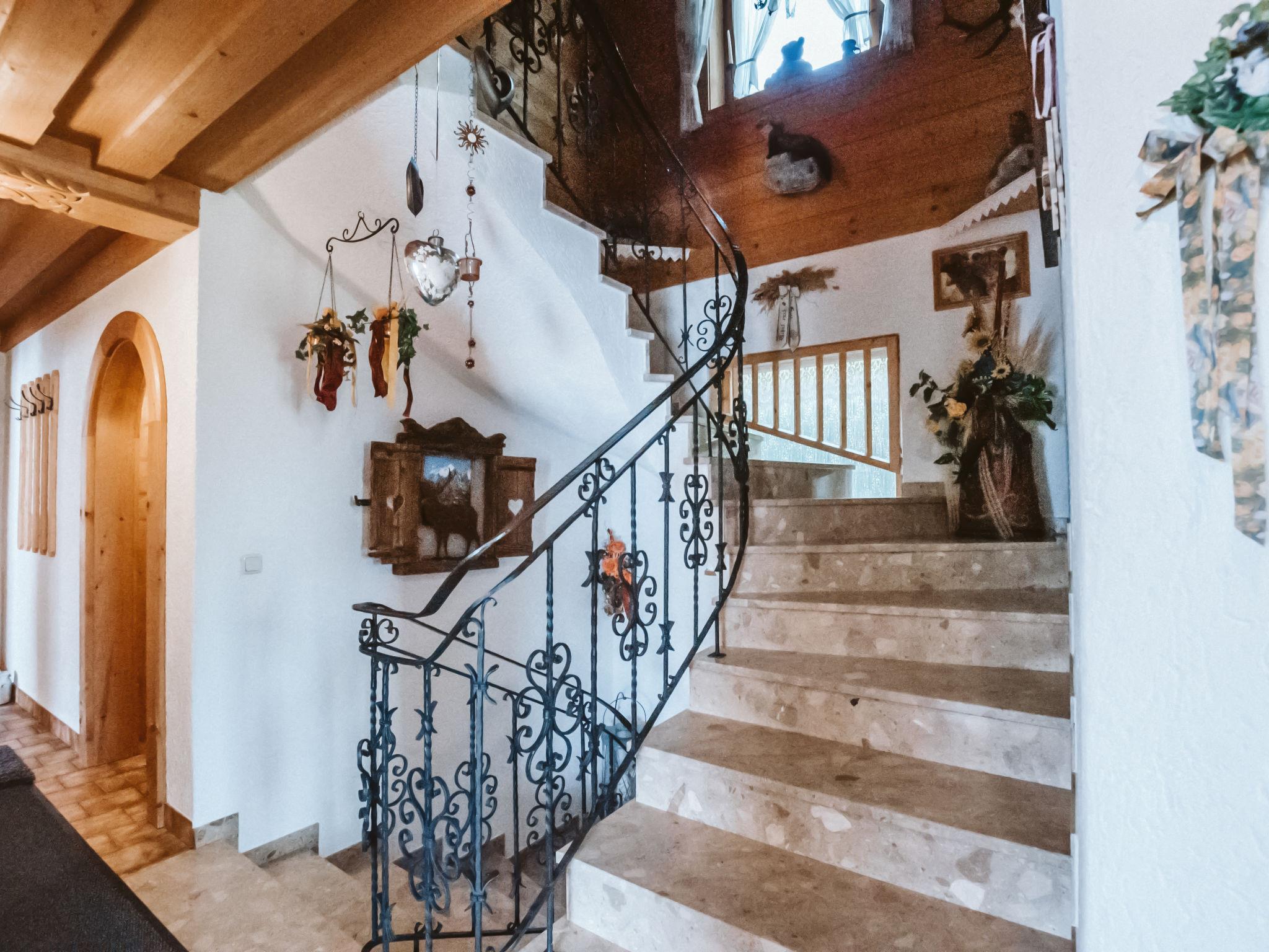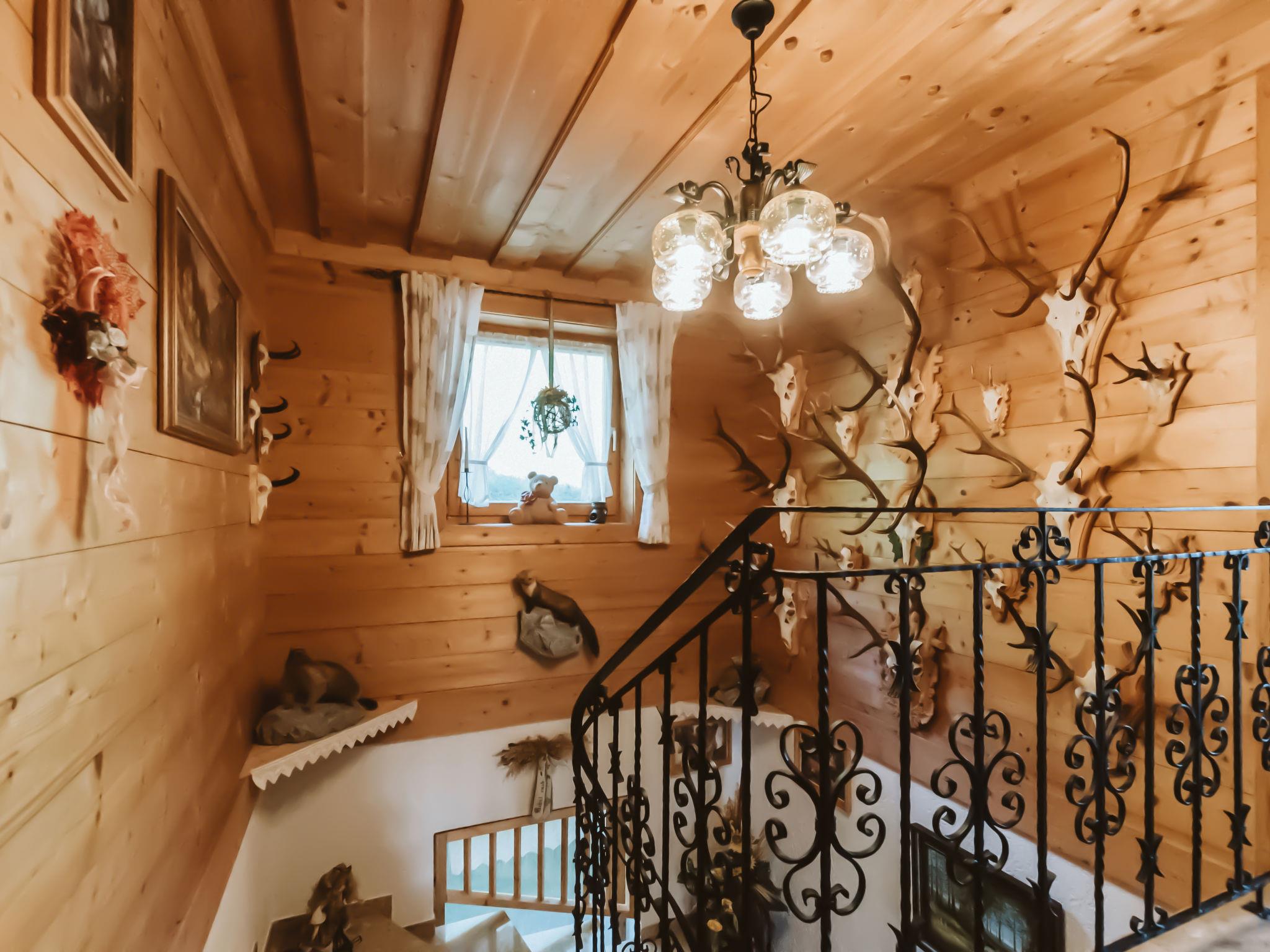 "Wiedhölzl", 9-room house 260 m2 on 3 levels. Rustic and cosy furnishings: living room with satellite TV and tiled stove. Exit to the balcony. 1 room with 1 double bed. Kitchen (oven, dishwasher, 4 ceramic glass hob hotplates, microwave, electric coffee machine) with dining nook. Bath/shower, sep. WC. On the lower ground floor: 3 rooms, each room with 1 double bed. Shower/WC. Upper floor: 3 rooms, each room with 1 double bed. Exit to the balcony. Kitchen (oven, 4 ceramic glass hob hotplates, kettle, electric coffee machine) with dining nook. Exit to the balcony. Bath/shower, shower/WC, sep. WC. Heating. Panoramic view. Facilities: Internet (WiFi, free). Please note: non-smokers only, non-smoking house. No internal connecting door between the separated properties. 50601-000413-2020