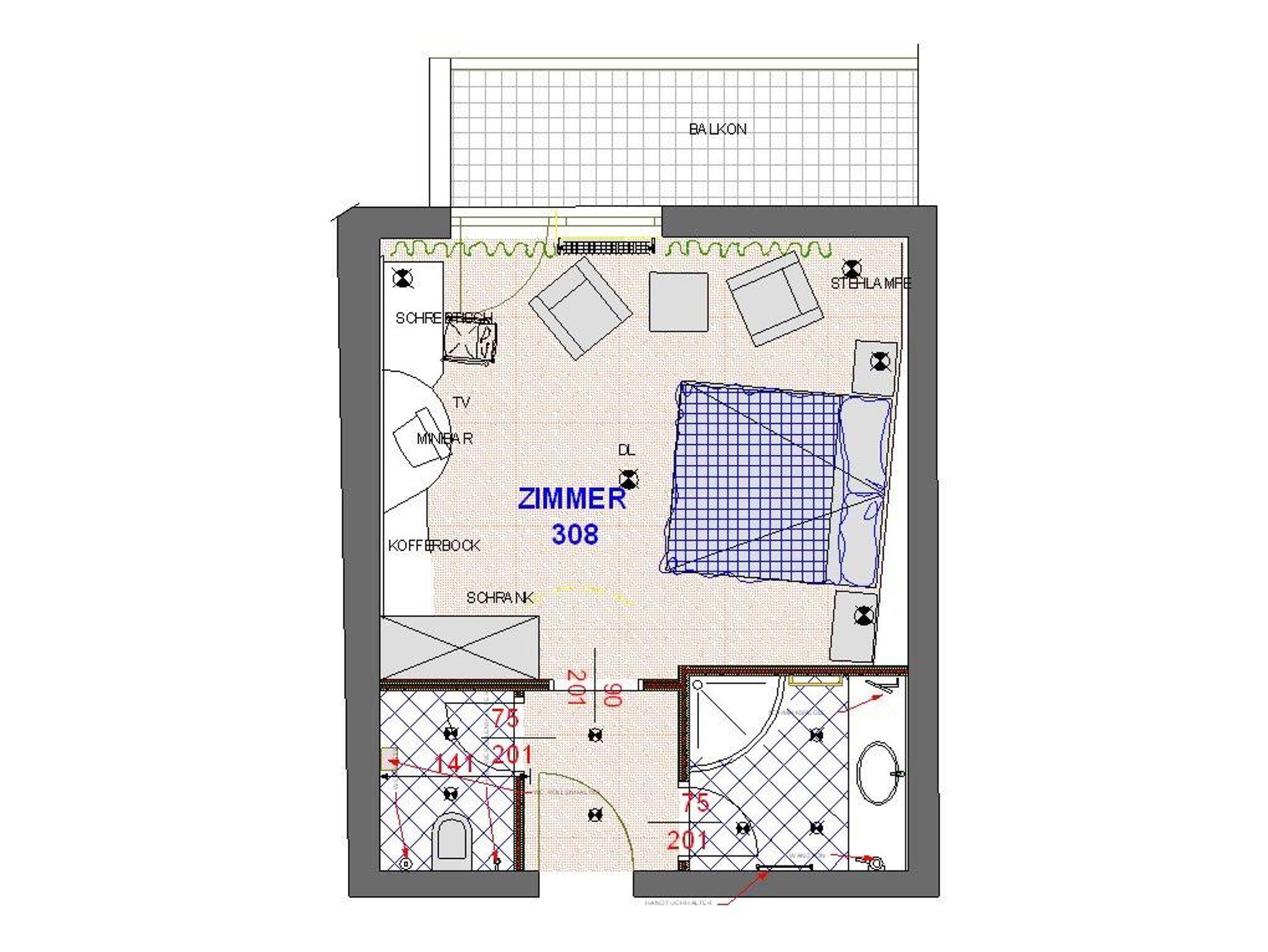 Doppelstudio mit Dusche, WC getrennt, Radio, Sat-TV, Safe, Balkon