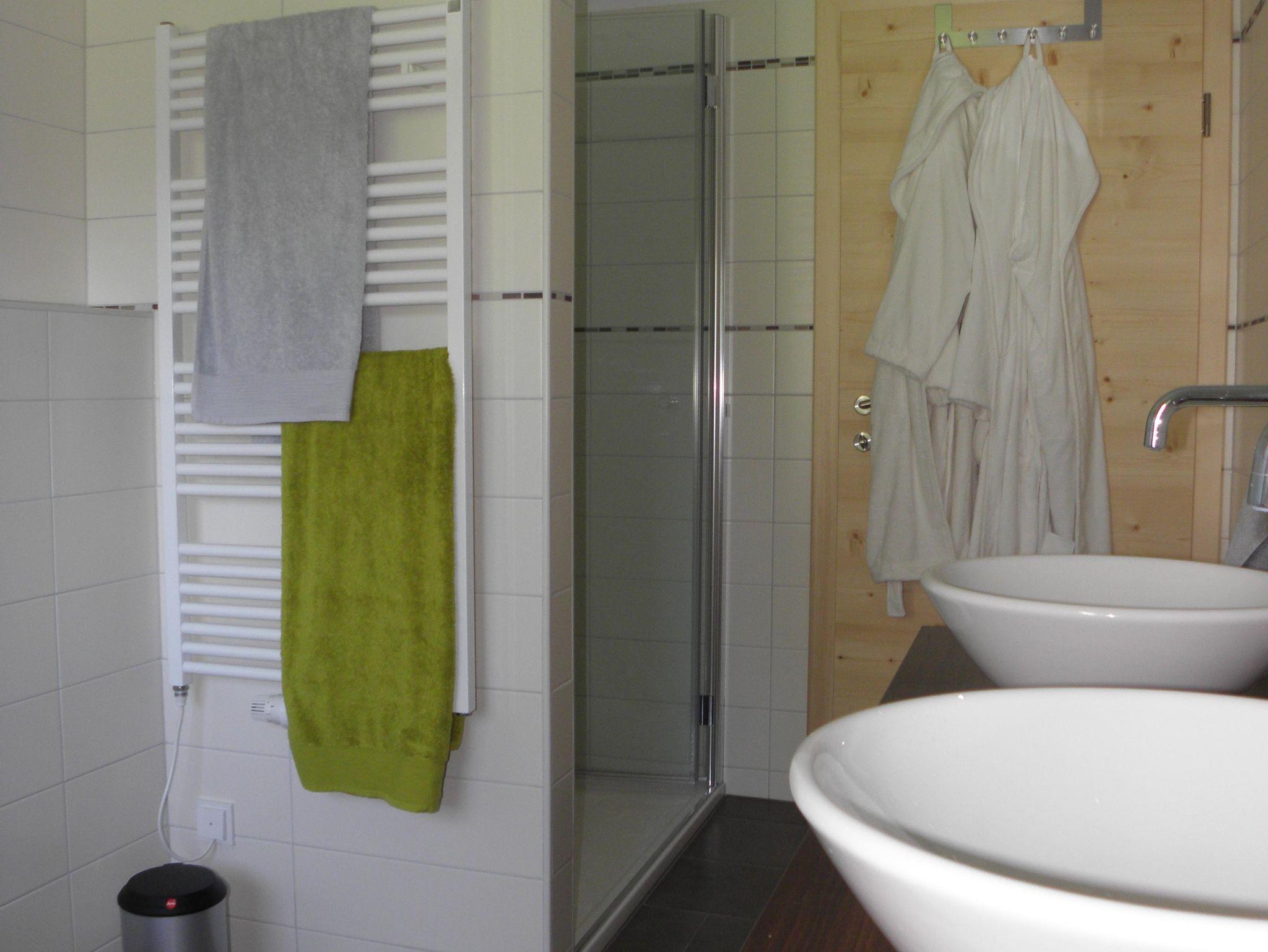 Das nagelneue Appartment Smaragd ist geräumig (158 m² für maximal 8 Erwachsenen) und sehr komfortabel eingerichtet; modern mit alpenländischer Touch. Die großen Fenster und der geräumige Balkon bieten einen wunderschönen Ausblick über den Pinzgau und der Hohe Tauern. Im geschmackvollen privaten Wellnessraum mit Whirlpoolanlage, einer Dampfsauna mit Liegebett und Sternenhimmel, einer Infrarotkabine können Sie die täglichen Sorgen hinter sich lassen. In nur 5 Minuten erreicht man die Talstation der Smaragdbahn (Wildkogelgebiet) und in 10 Minuten die Panoramabahn (Kitzbüheler Skigebiet). Wenn gewünscht, können Sie das Appartement Smaragd und das Appartment Kristall zusammen reservieren wie ein Chalet für 14 Personen. Obengeschoss: Vorraum mit Garderobe 1 Schlafzimmer mit 1 Doppelbett mit Balkon und Badezimmer mit Dusche, 2 Waschtische, Toilette Geschmackvoller Wellnessraum mit Whirlpoolanlage, Dampfsauna, Infrarotkabine, 2 Regenduschen, Liegen und Balkon Zwischengeschoss: 1 Schlafzimmer mit 1 Doppelbett und Balkon 1 Schlafzimmer mit 2 Einzelbetten 1 Schlafzimmer mit Stockbett Großes Badezimmer mit Bad, Dusche, 2 Waschtische und Toilette, Wasserhähne mit Thermostat und Badetuchtrockner Separate Toilette Untergeschoss: Wohnzimmer mit Küche (48 m²), Kaminofen. Zutritt zum großen Balkon auf Süd, Süd-West. Luxuriöse Küche komplett ausgestattet mit u.a., Backofen, Mikrowelle, Kühlschrank, Geschirrspüler, Ceranfeld, Induktion Wok, Kaffeemaschine und Nespresso Kaffeeautomat. Außerdem: Fußbodenheizung in das ganze Appartment, Wifi, Sateliten-TV, Blu-Ray Disc Spieler, Audiogerät für iPod und MP3, Benützung der Waschmaschine und Waschtrockner, Carport für 2 Auto’s, Skiraum mit Skischuhtrockner, Gartenmöbel, Kinderbett, Kinderhochstuhl, Nichtraucherhaus! Keine Haustieren erlaubt!