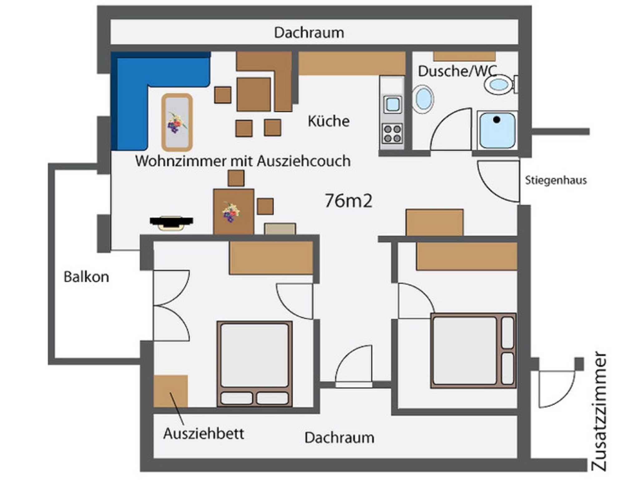 • Großzügiger Wohnbereich: Das Herzstück der Wohnung lädt zu gemeinsamen Spieleabenden oder entspannten Stunden nach einer Wanderung ein.