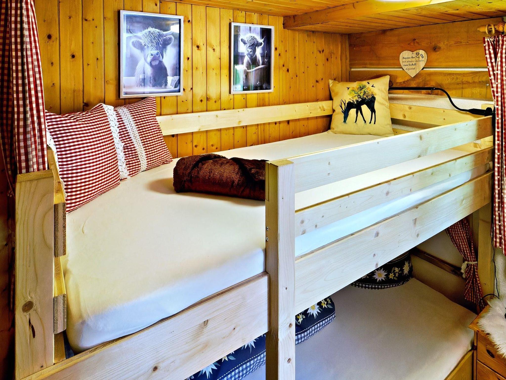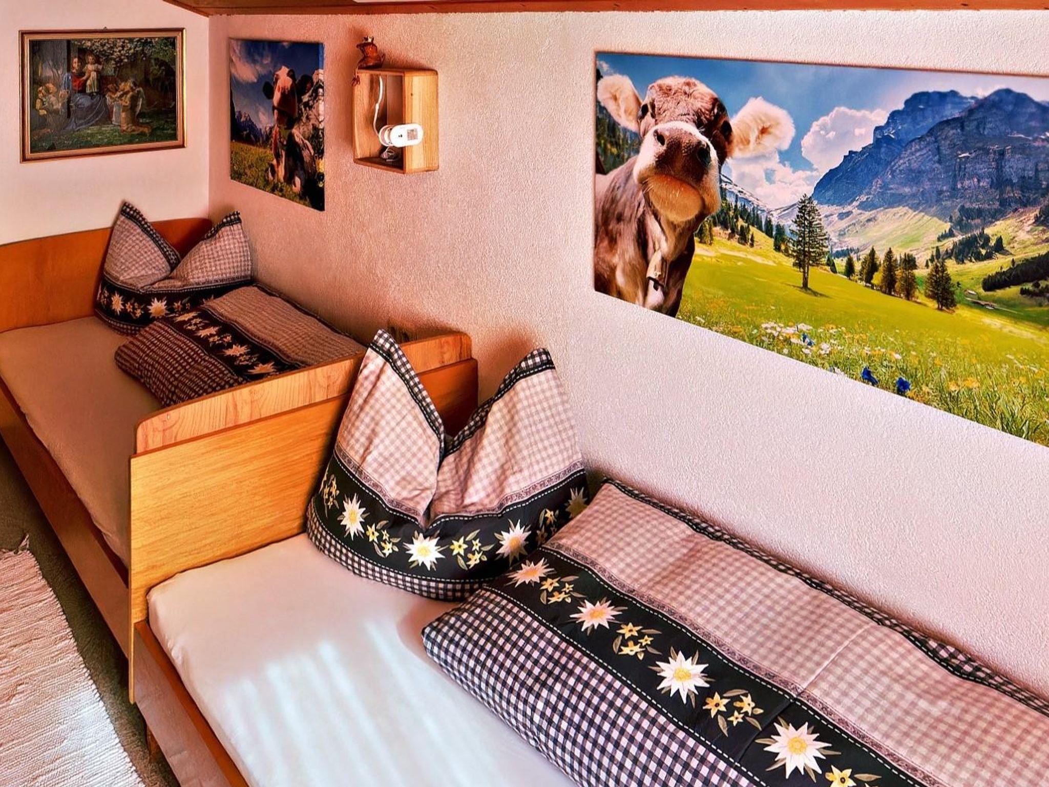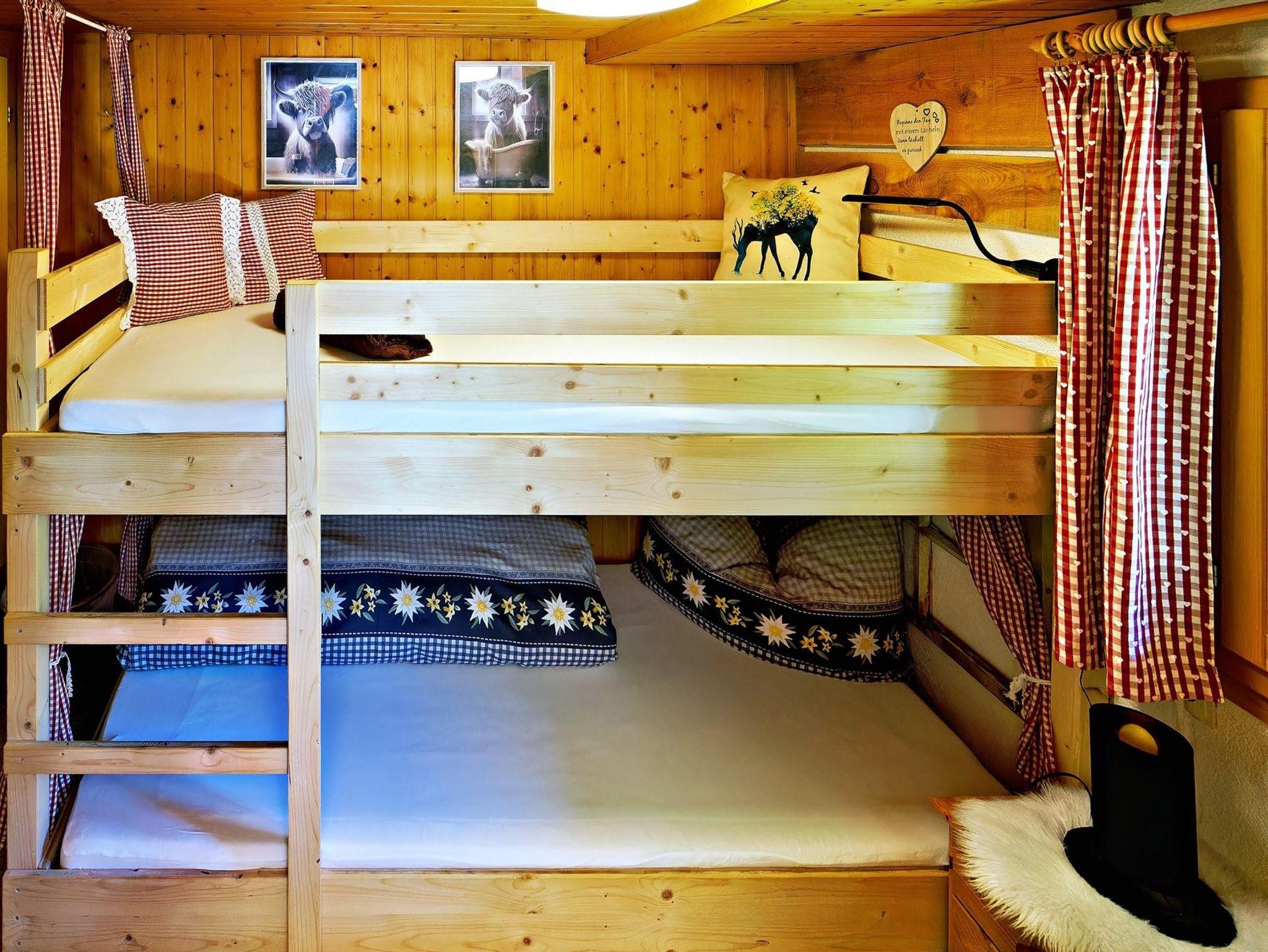 Aufteilung: 1 Doppelzimmer , 1 Stockbettzimmer, 1 Zimmer mit 1 Stockbett und 2 Einzelbetten, Stube, 2 Bäder/WC und Küche.